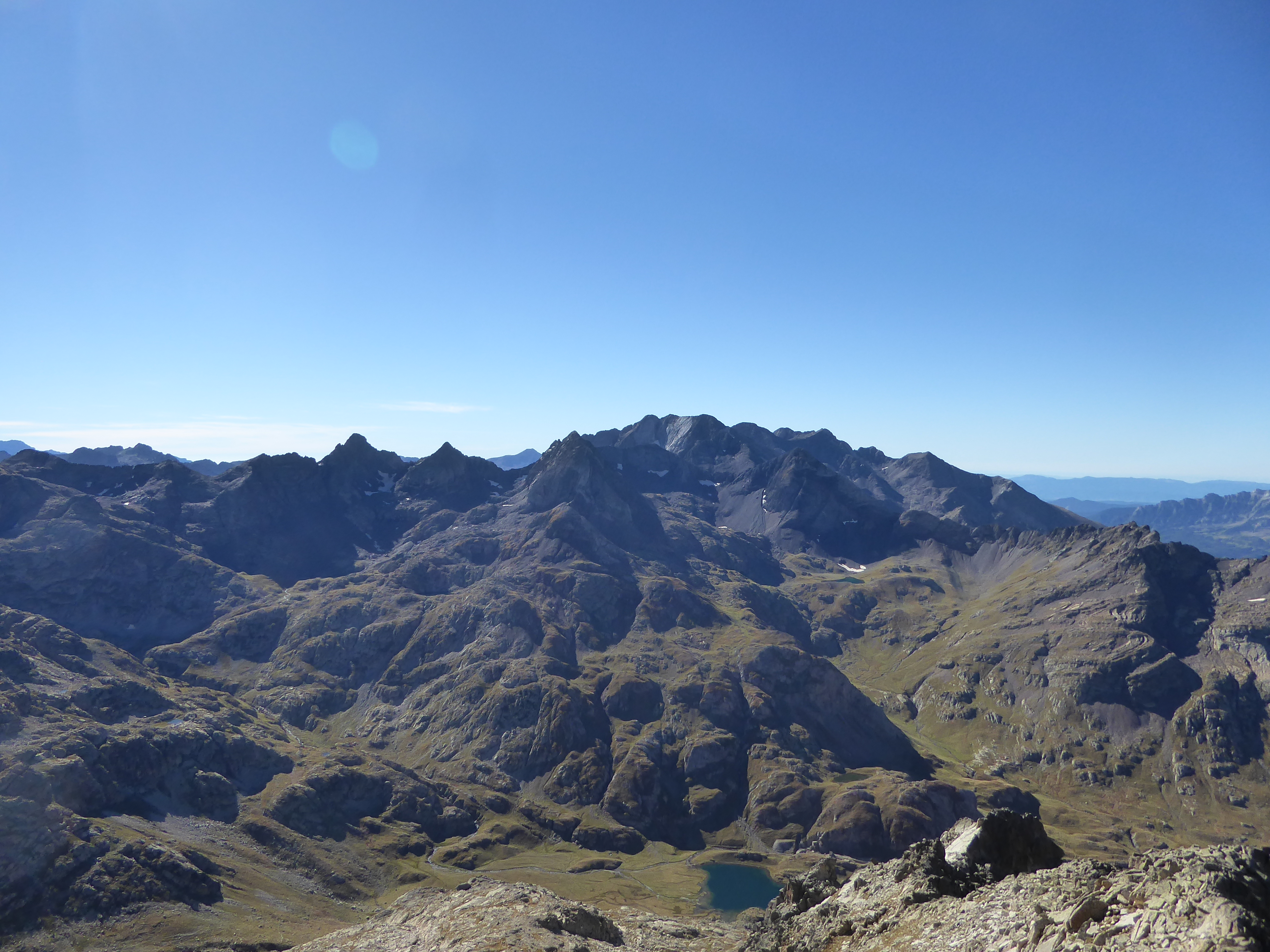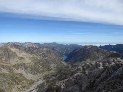 Arrivée au sommet du Gavizo Cristail (2890 m) : très beau panorama sur les sommets des Hautes-Pyrénées et sur le massif du Balaïtous ... l'Embalse de Respomuso en contrebas côté espagnol !