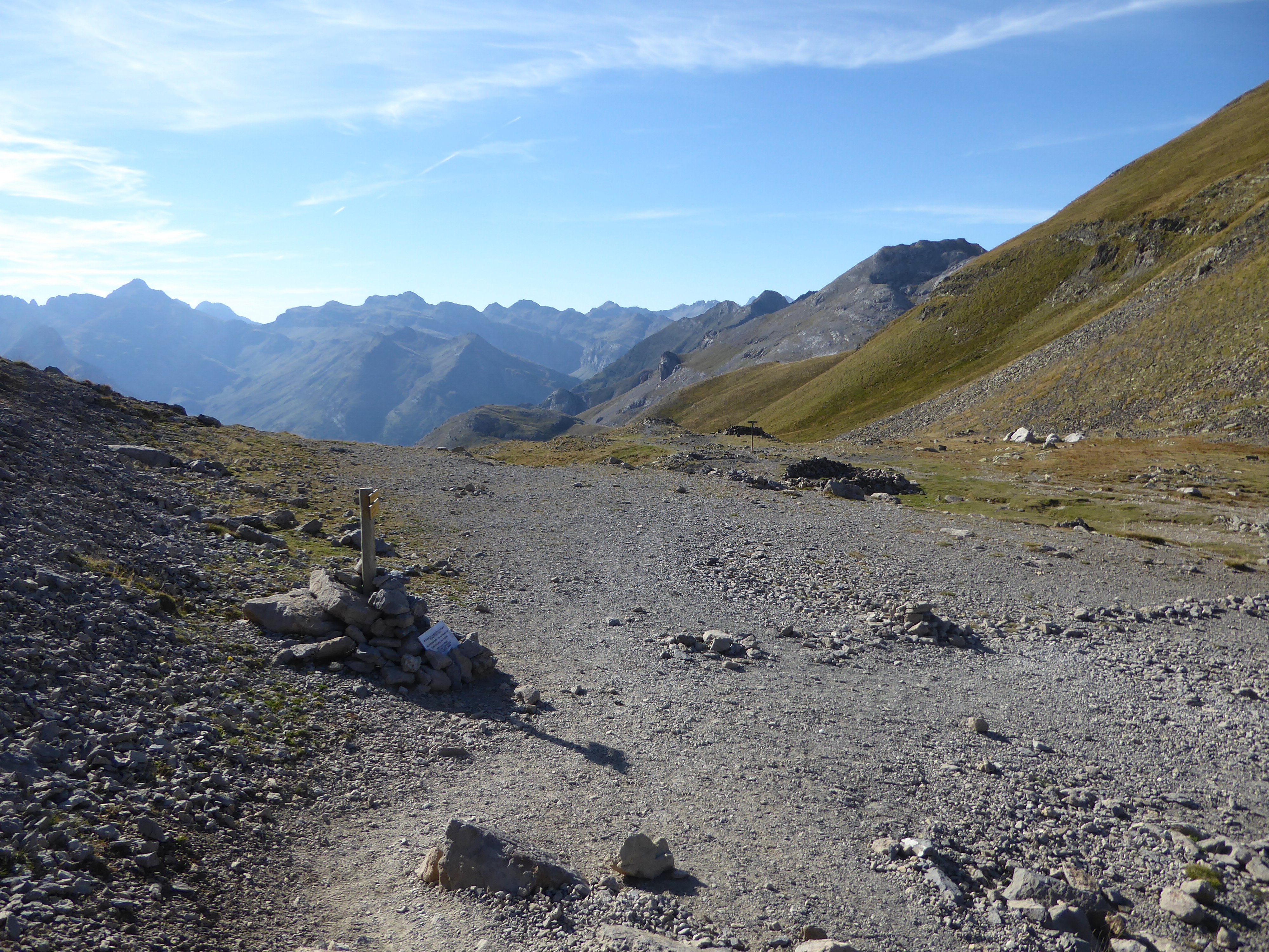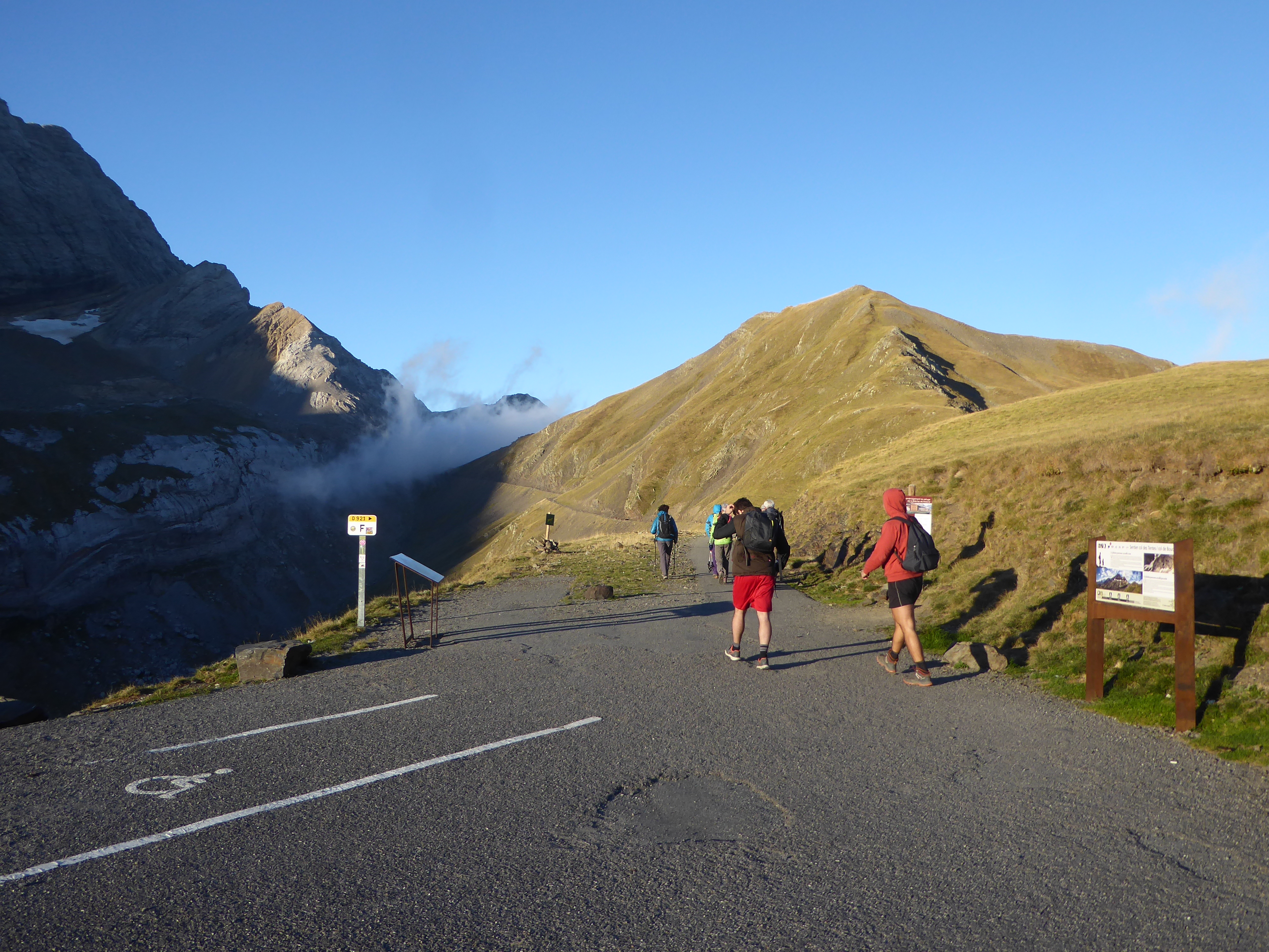 Départ Col des Tentes (2207 m) : suivre la piste goudronnée partant tout droit direction Port de Boucharo, aucun balisage