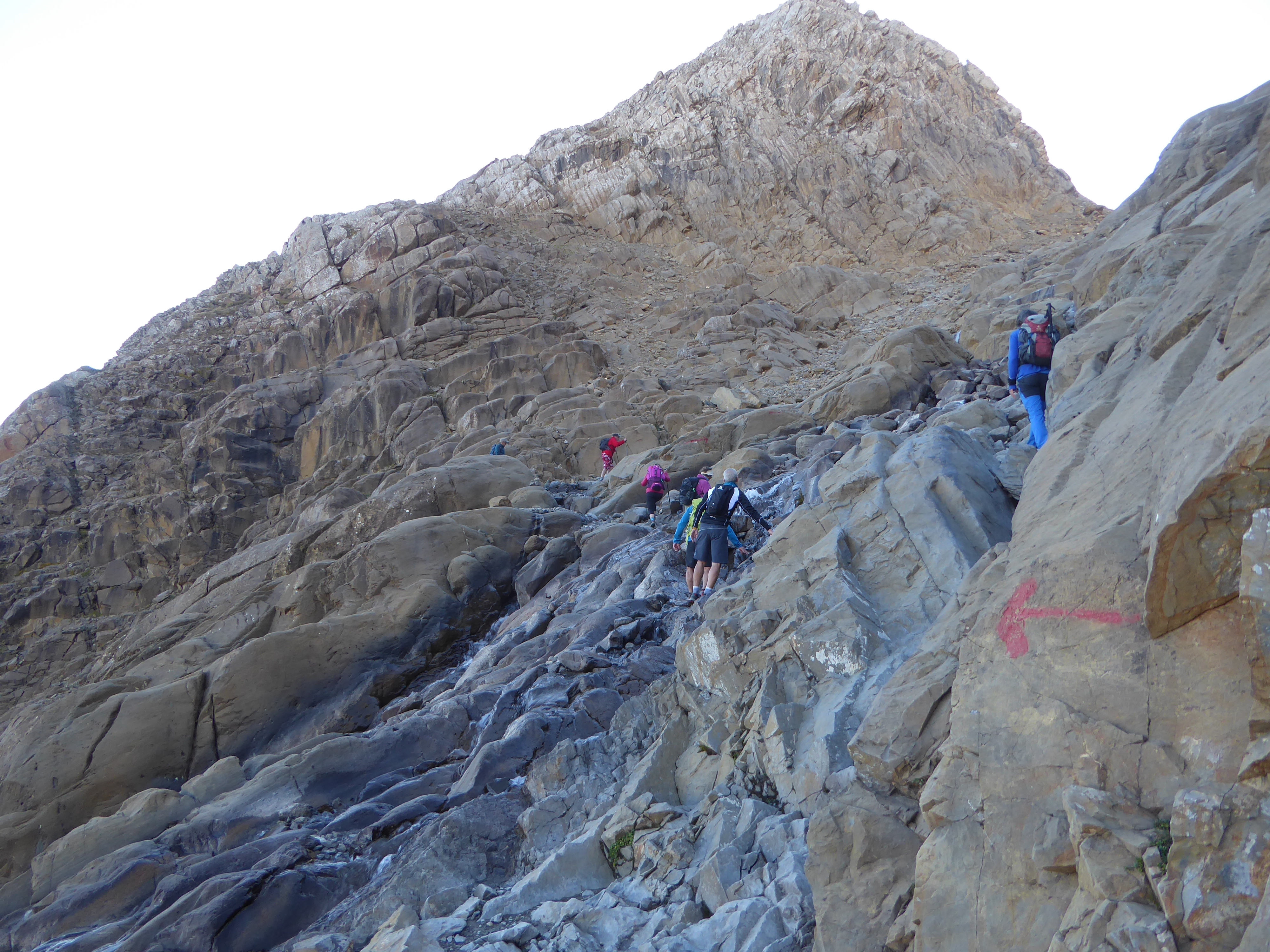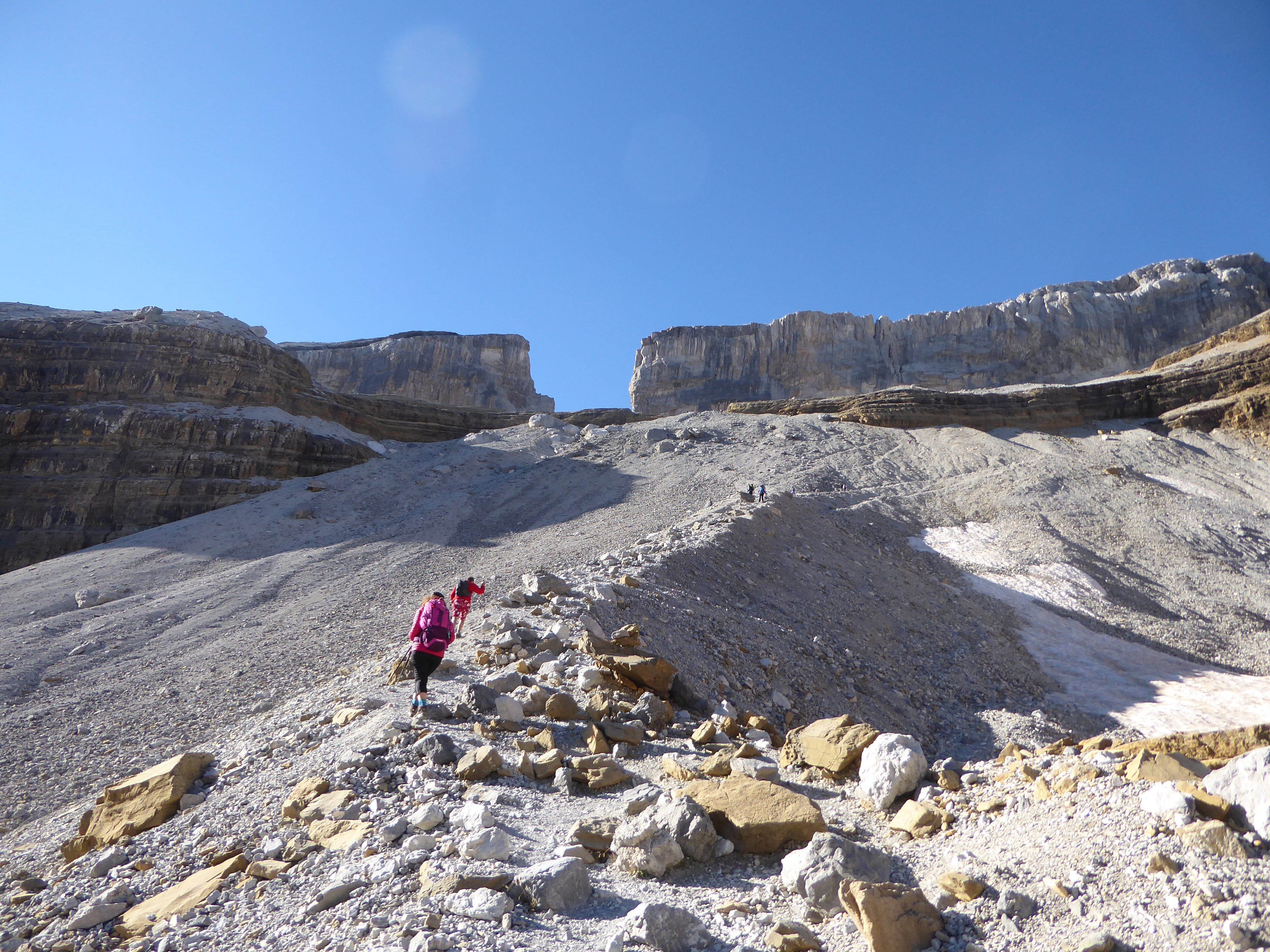 La raide montée dans le pierrier juste après le Refuge des Sarradets et la Brèche de Roland qui se dévoile !