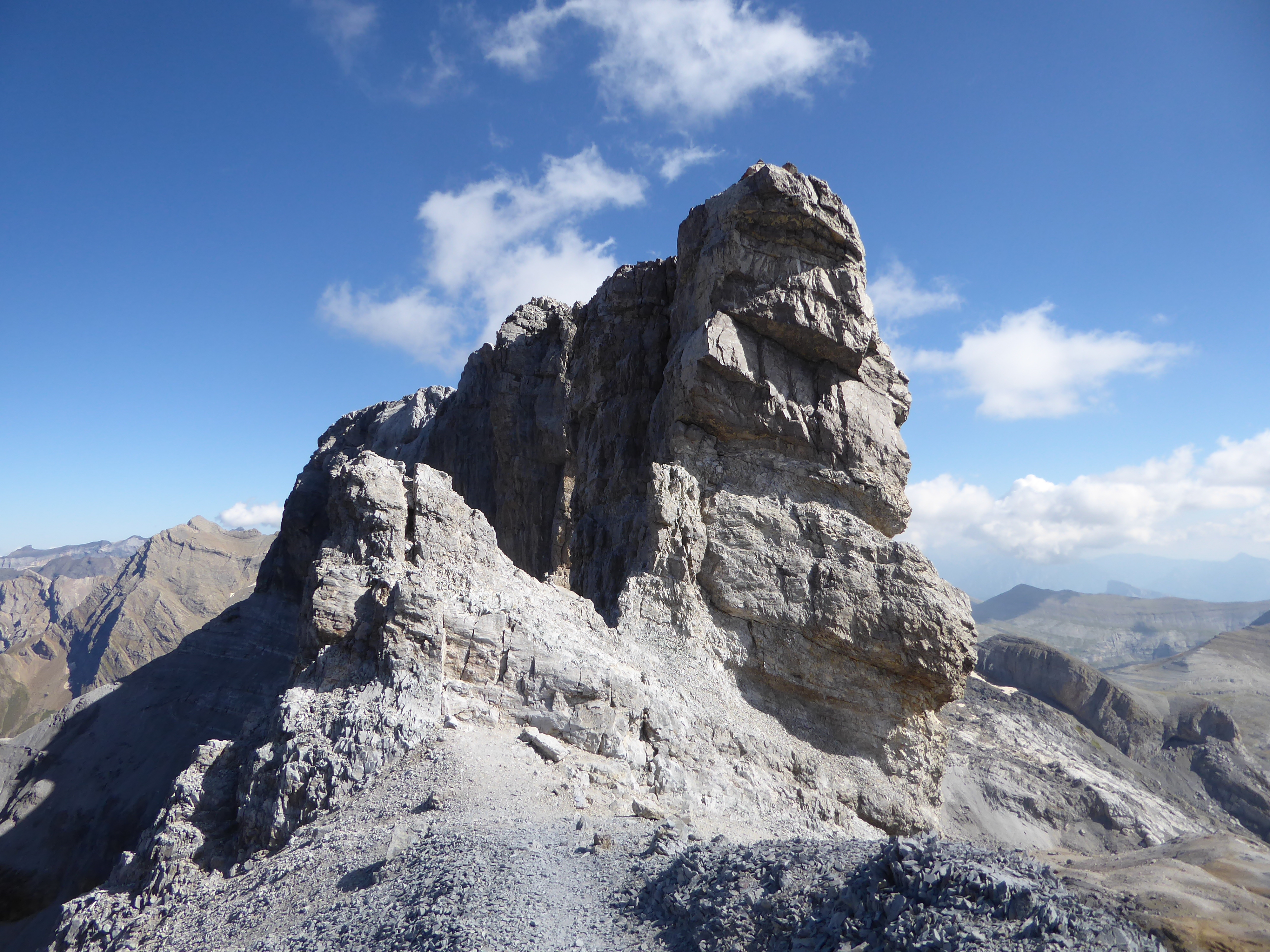 Vue sur le Doigt (fausse Brèche de Roland) et la crête du Taillon se prolongeant sur la droite