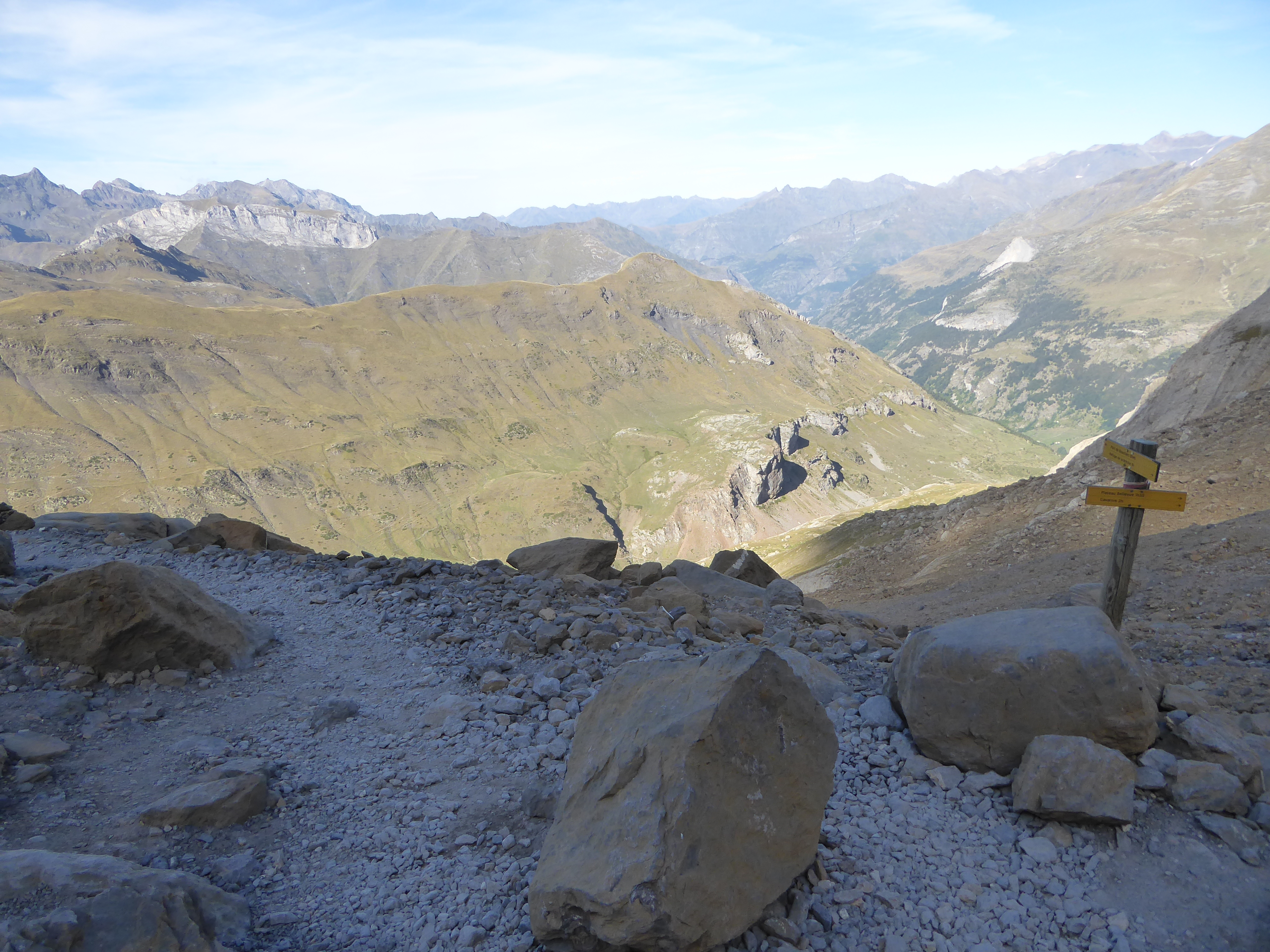 Port de Boucharo (2271 m) : suivre le large chemin partant sur la droite direction Col des Tentes