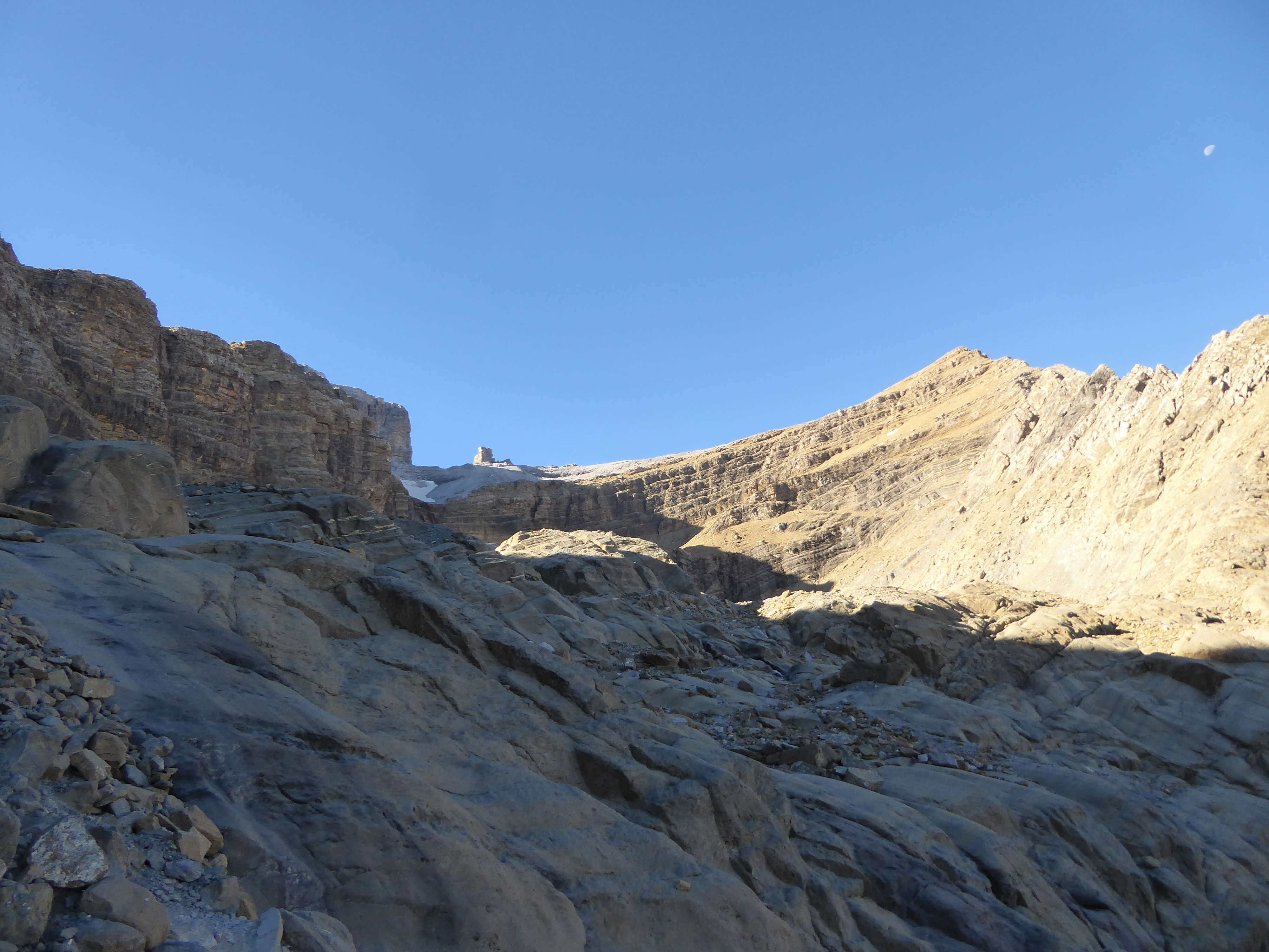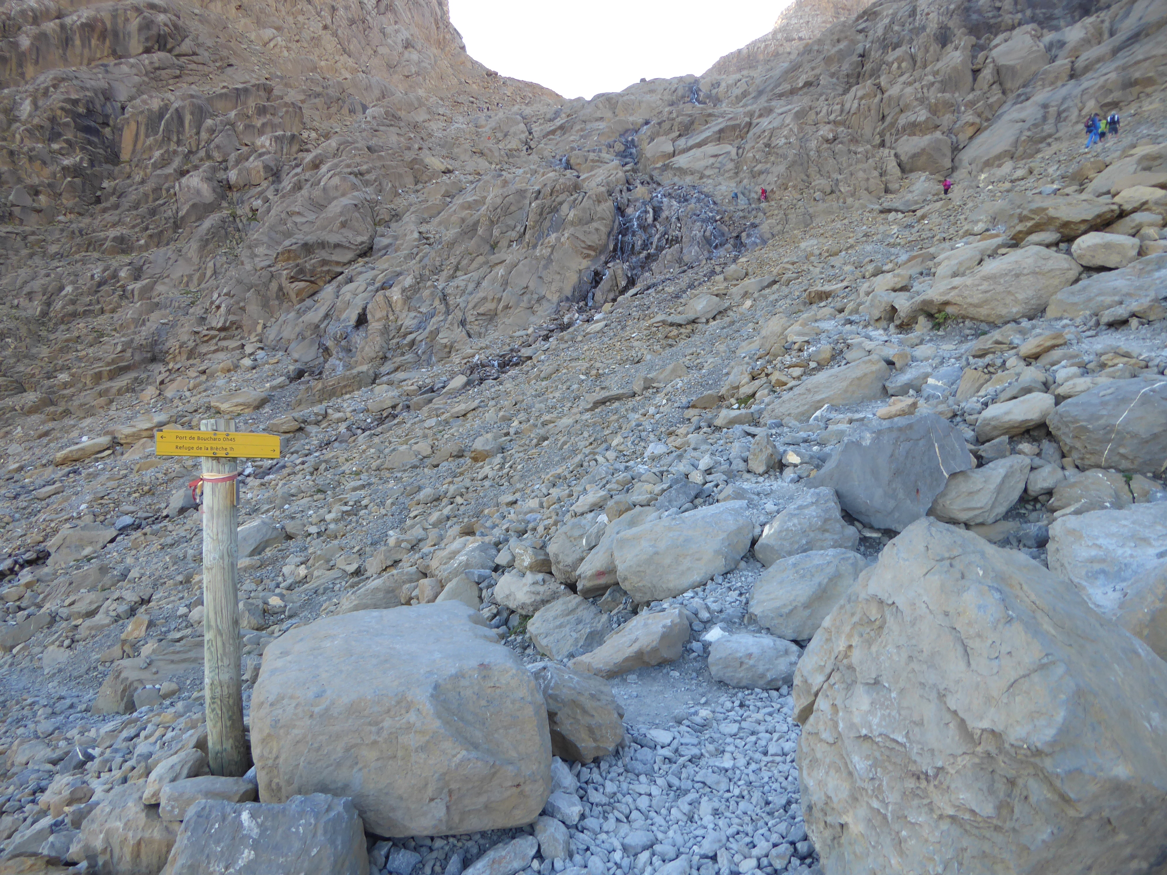 Ruisseau du Taillon (2459 m) : prudence lors de la traversée du cours d'eau ; les rochers peuvent être glissants voire verglacés suivant la saison ... le mieux est de contourner dans un premier temps sur la droite afin de trouver un passage où le lit du torrent est le moins large possible direction Refuge de la Brèche