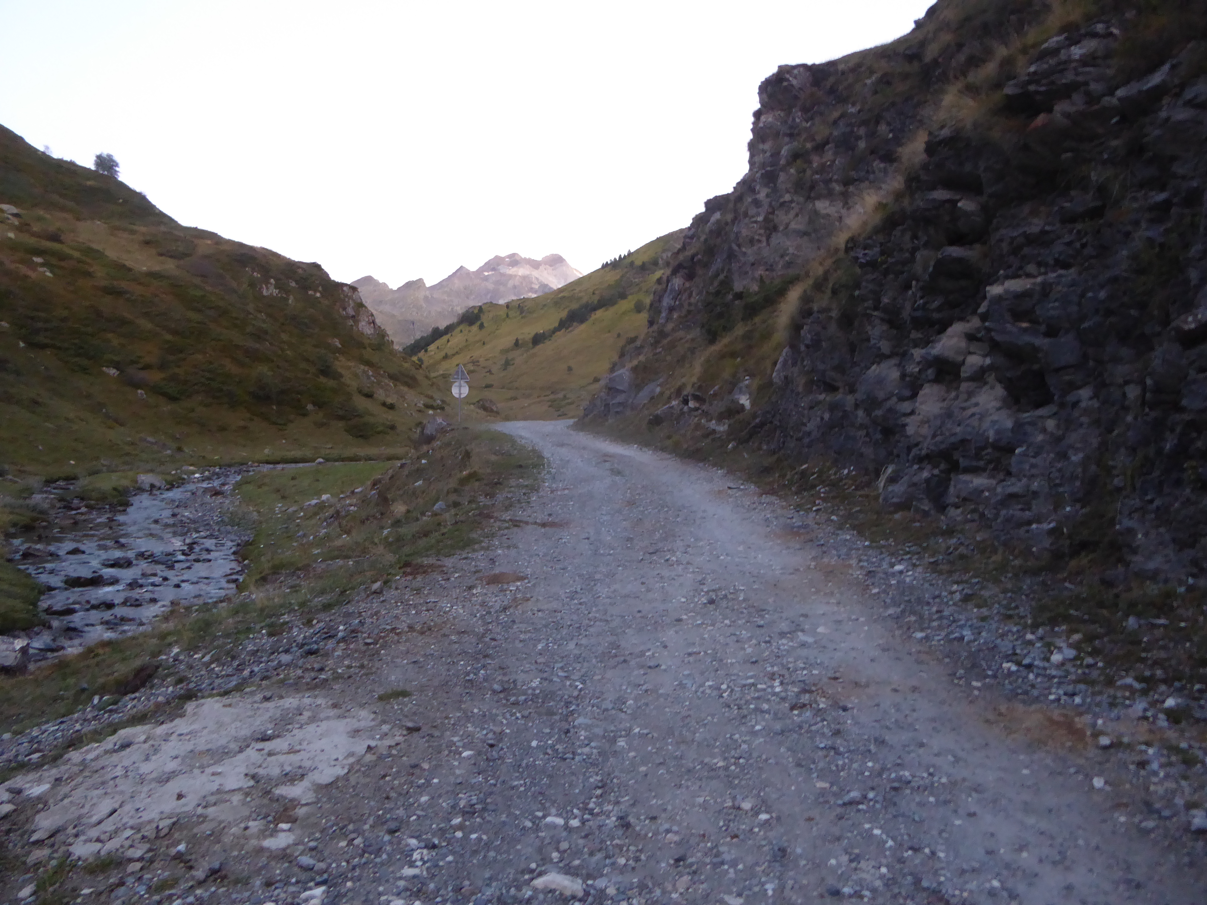 Départ Pont d'Artigouli (1651 m) : suivre la large piste partant tout droit direction Barrage d'Oussoue, aucun balisage