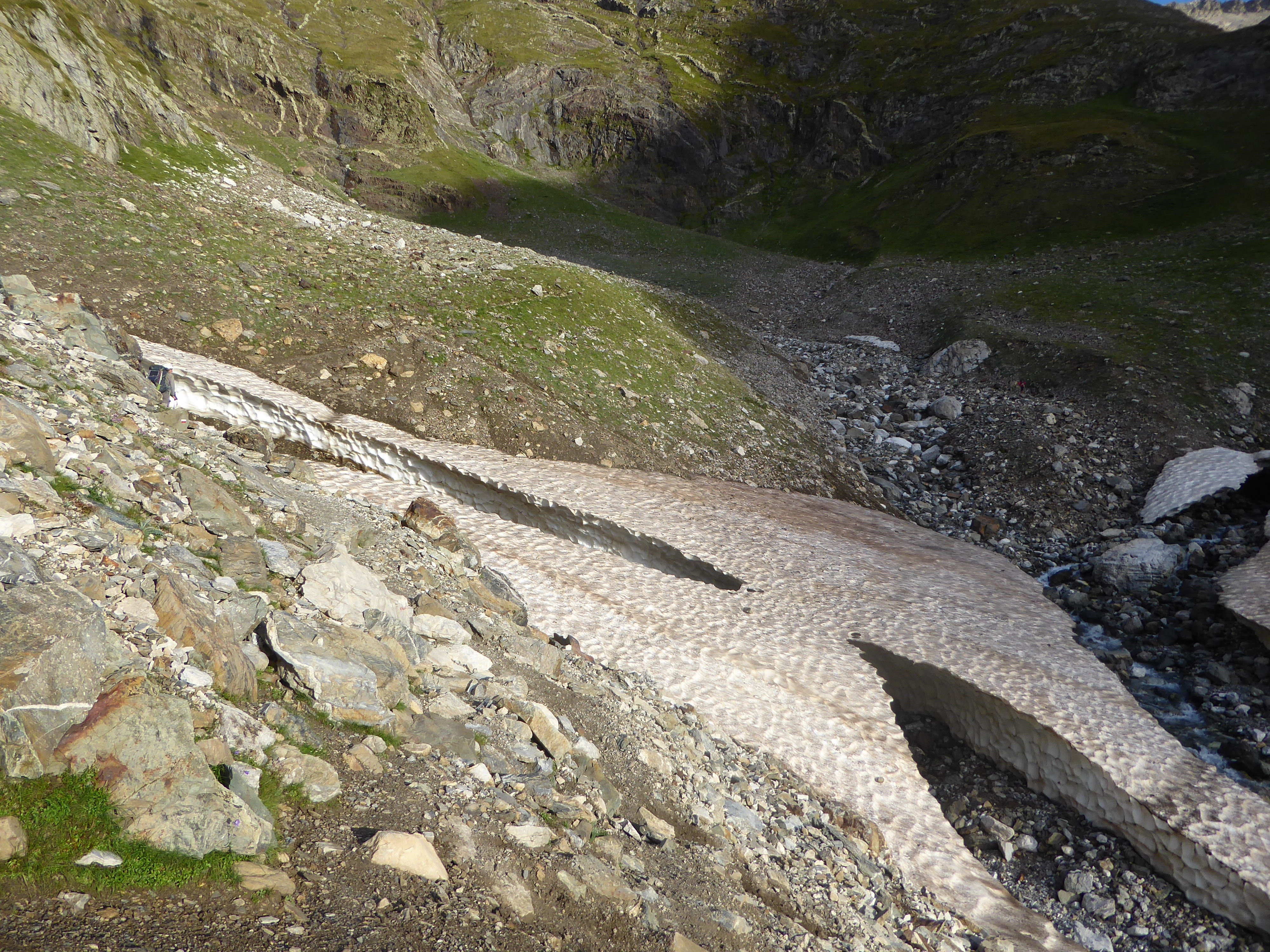 Des ponts de neige subsistent encore sur le sentier en cette fin d'été ... et qui ne demandent qu'à s'effondrer !