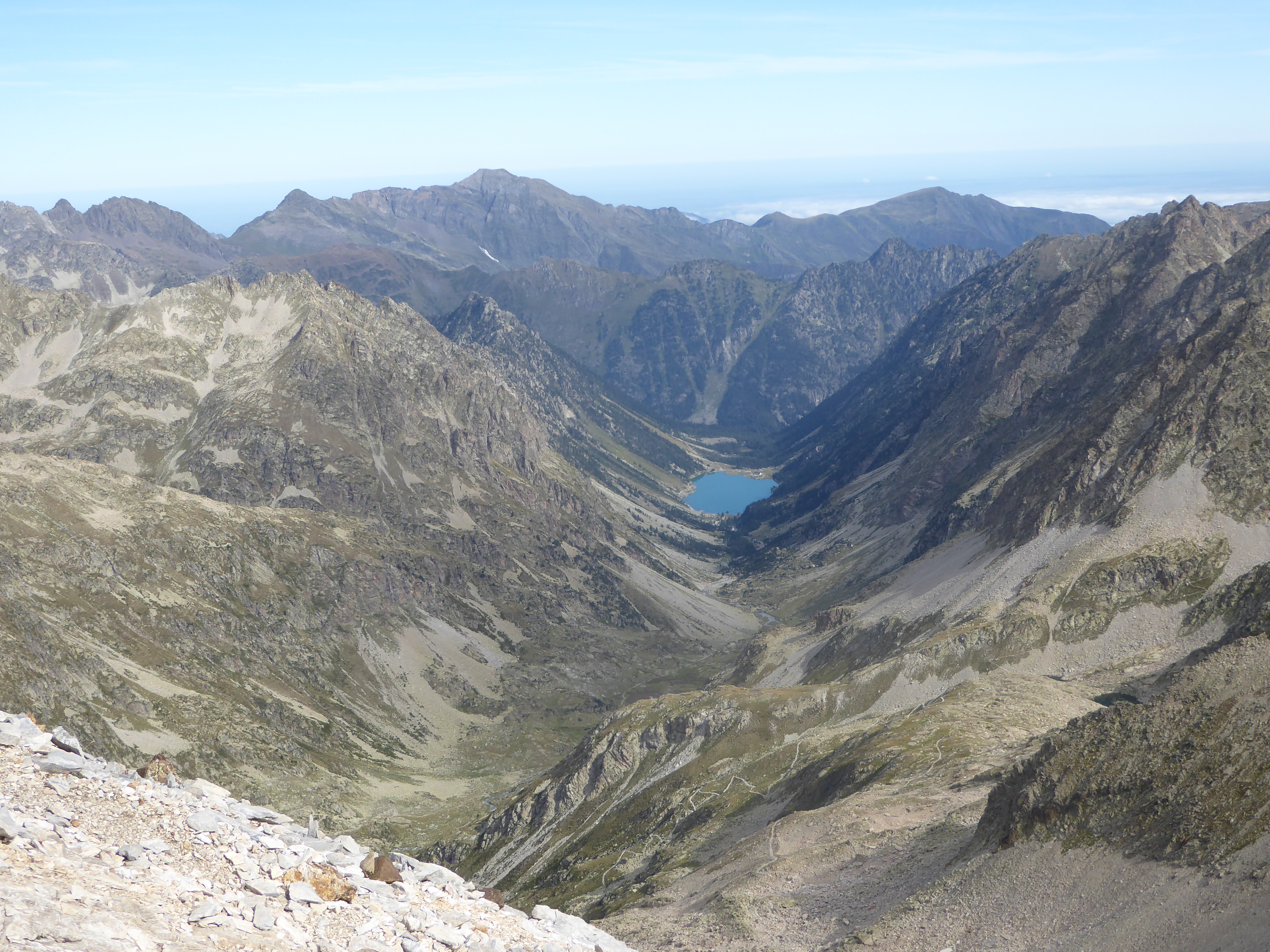Redescendre du sommet par le même chemin que celui de l'aller direction Hourquette d'Oussoue