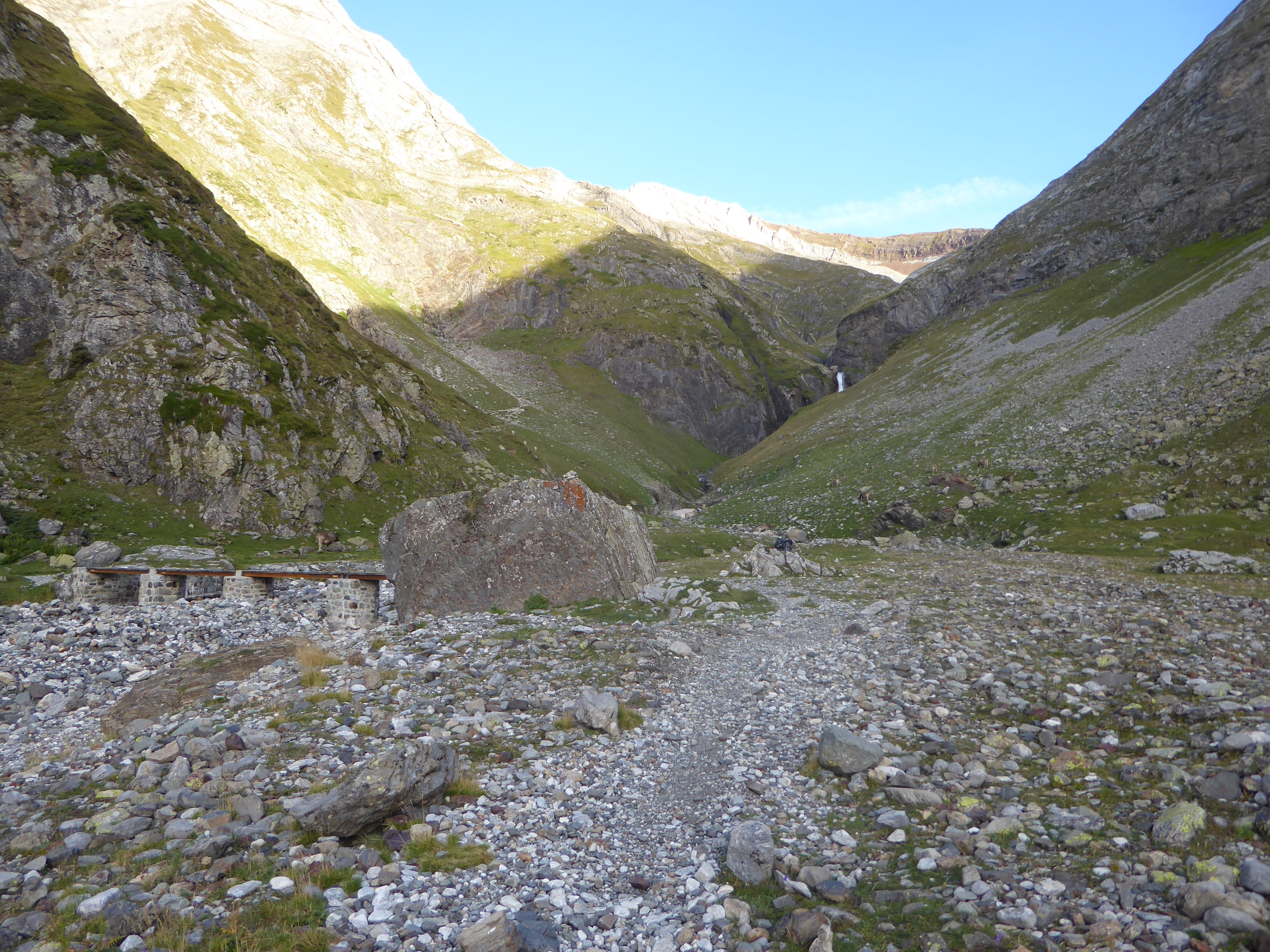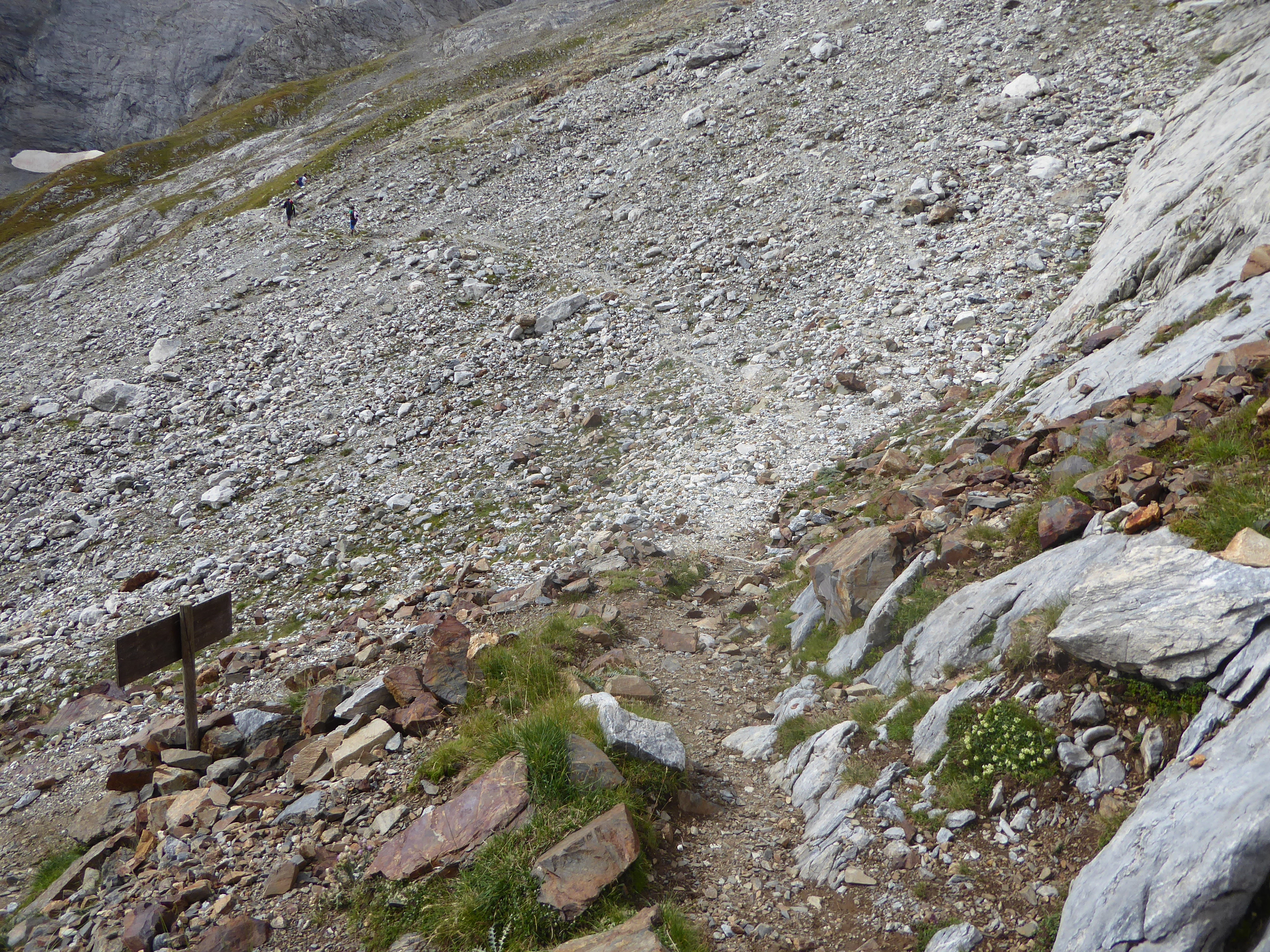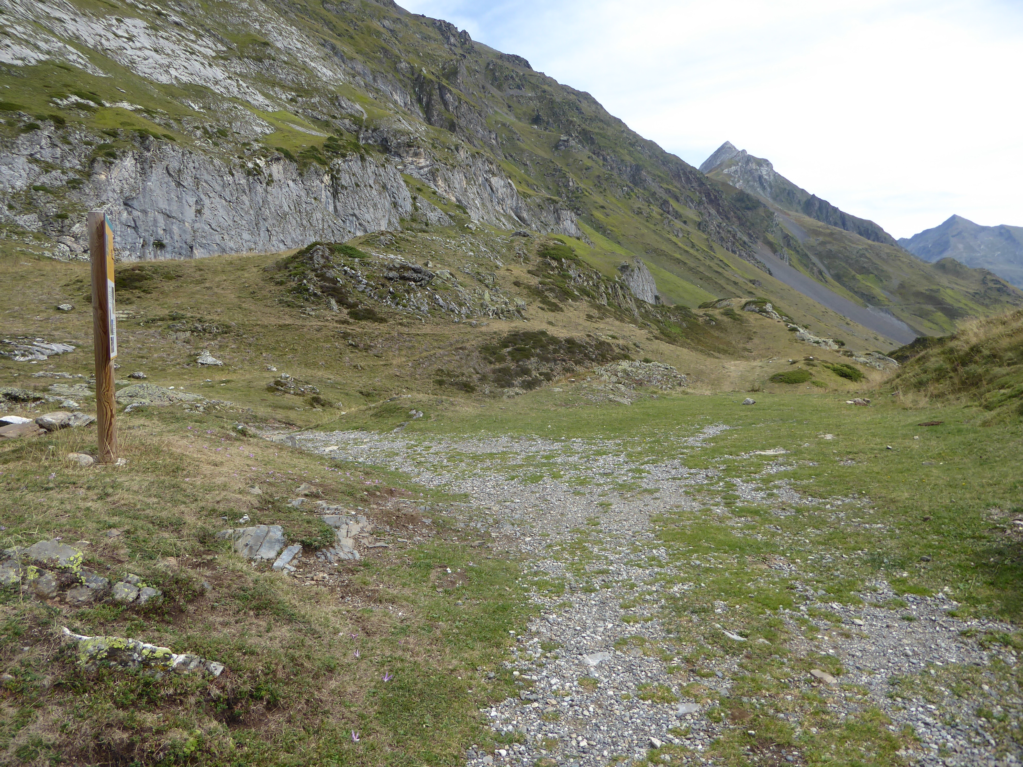 Refuge de Baysselance (2651 m) : suivre le chemin partant tout droit direction Hourquette d'Oussoue, balisé en rouge et blanc