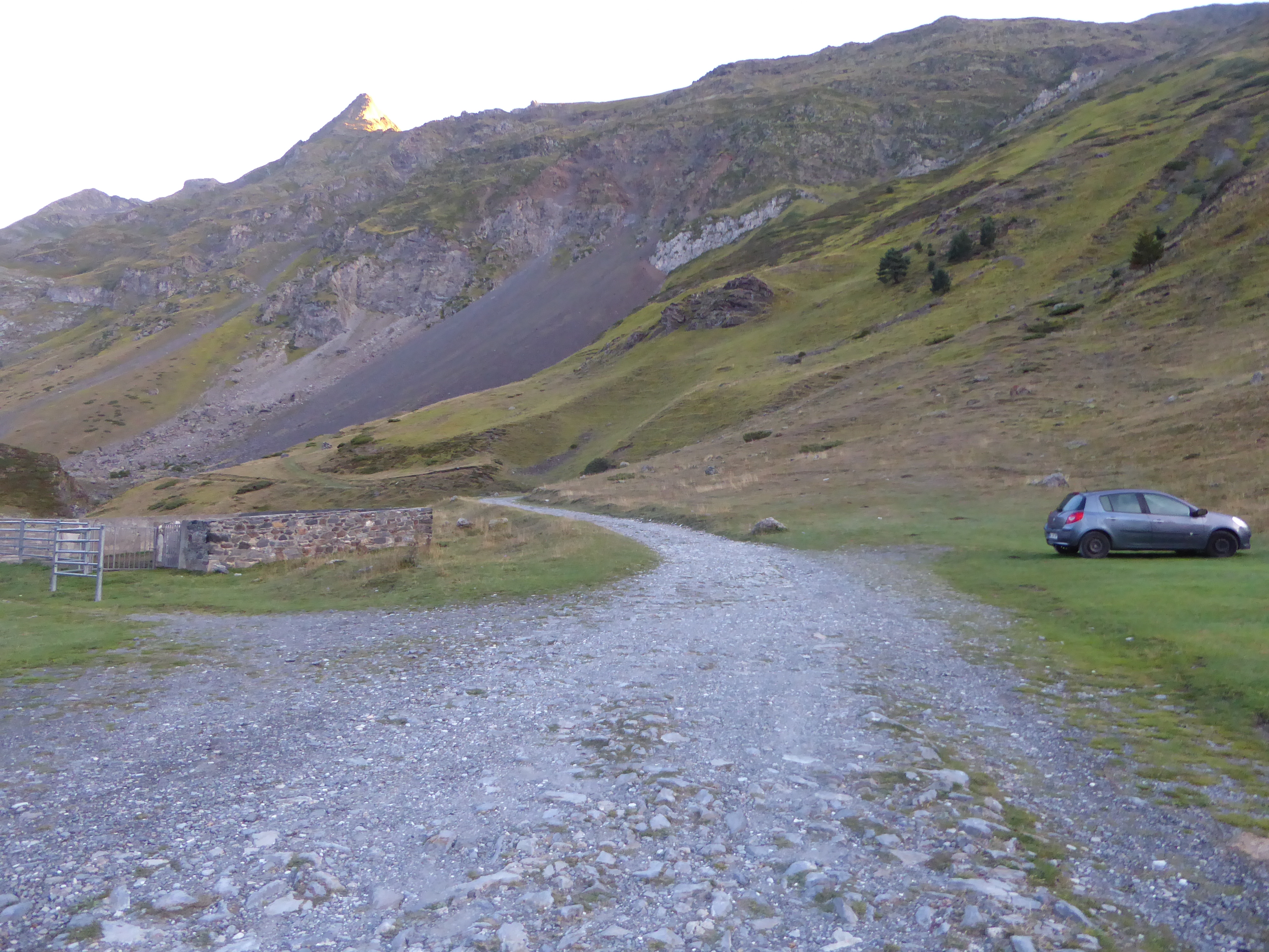 Depuis Pau, prendre direction Tarbes / Lourdes / Toulouse (D817) à Soumoulou, continuer direction Lourdes / Pontacq (D940) puis à Lourdes, continuer direction Argelès-Gazost / Gavarnie / Cauterets (D821) puis à Argelès-Gazost, continuer direction Gavarnie / Luz-Saint-Sauveur / Pierrefitte-Nestalas (D913 / D921) puis à Gavarnie, continuer direction Station de ski de Gavarnie-Gèdre / Port de Boucharo / Barrage d'Oussoue (D128) puis définitivement Barrage d'Oussoue (D128) et se garer 200 mètres sur le bas côté de la piste après que le revêtement de la route ait perdu son caractère bitumé. Il est possible de poursuivre sur cette piste au moins jusqu'à la Cabane de Milhas (revêtement de bonne qualité sauf sur les 500 premiers mètres) ou encore jusqu'à la stèle (1734 m) ou le Barrage d'Oussoue pour les 4x4.