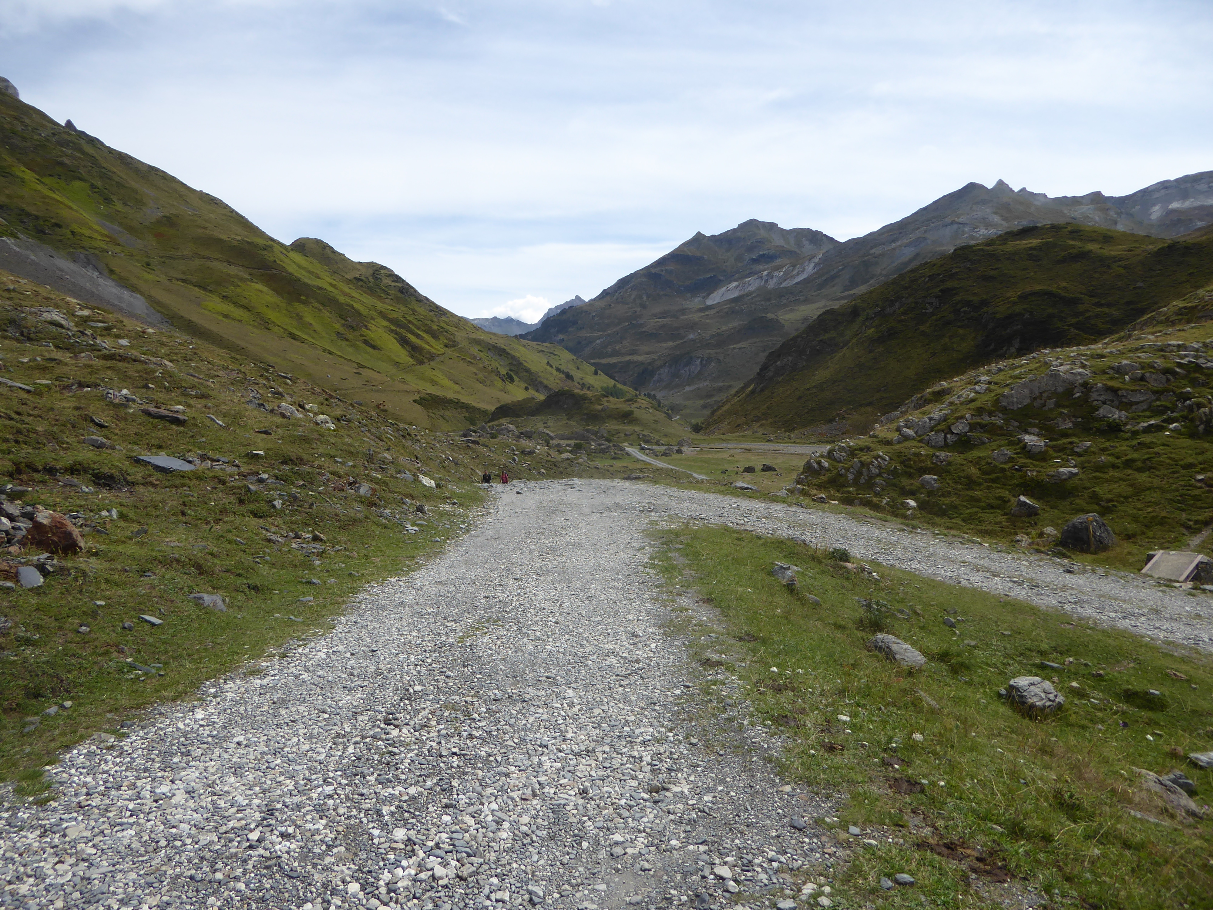 Hourquette d'Oussoue (2734 m) : suivre le chemin descendant sur la droite direction Barrage d'Oussoue, balisé en rouge et blanc dorénavant