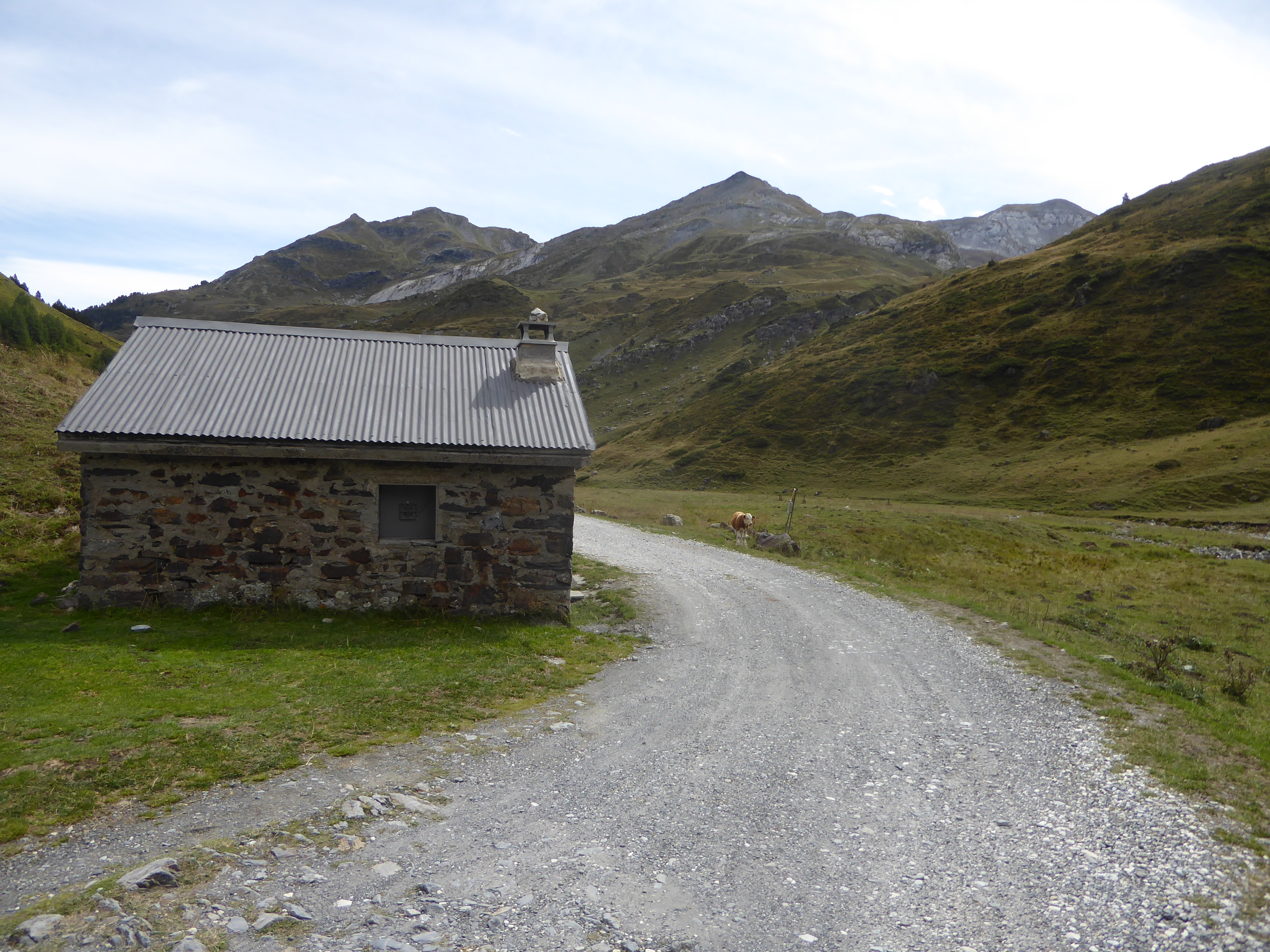 Cabane de Milhas (1680 m) : continuer à suivre la large piste partant tout droit direction Barrage d'Oussoue