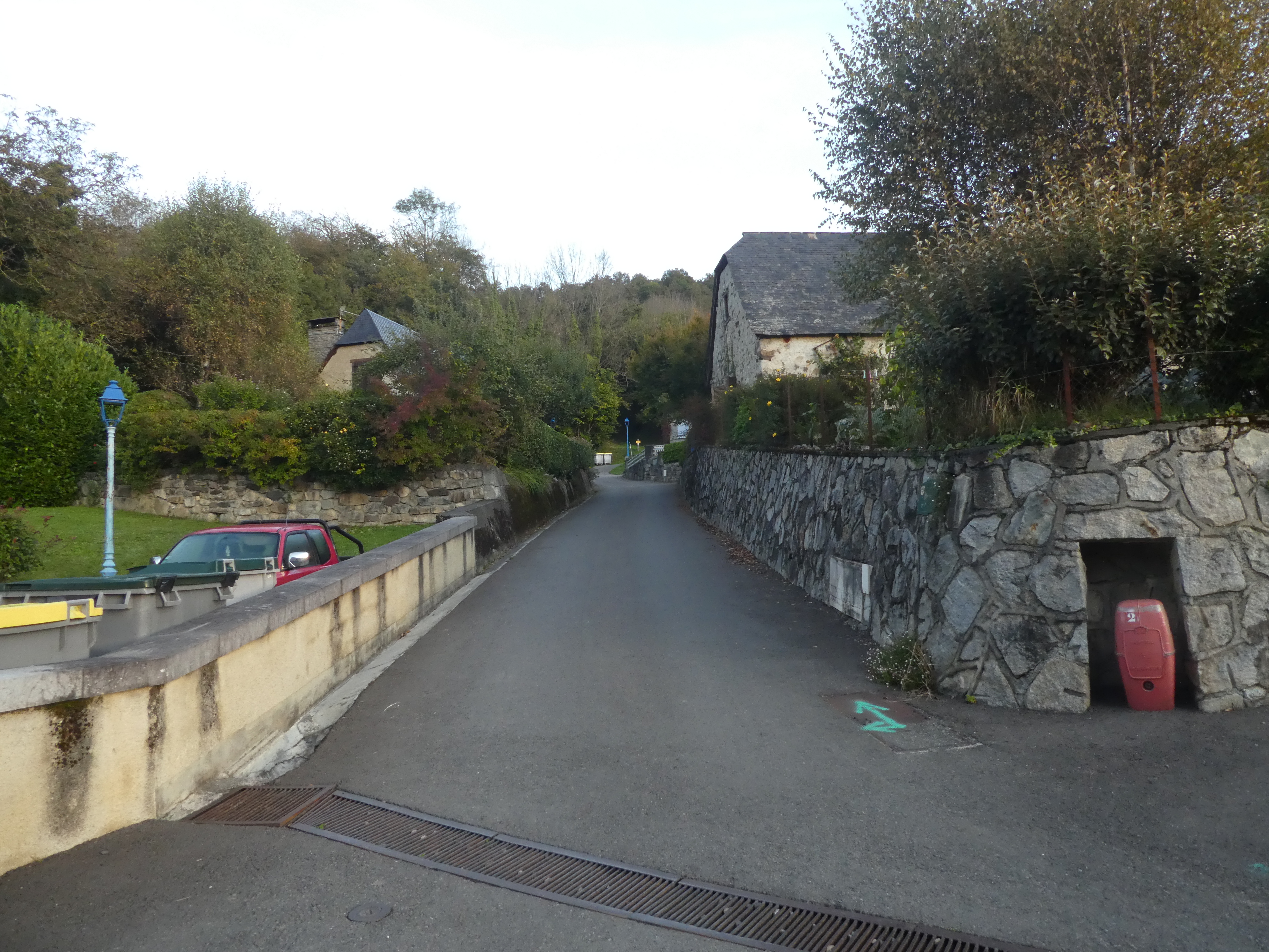 A cette intersection marquée par la présence d'un panneau directionnel (1100 mètres après le précédent croisement), suivre la rue descendant sur la droite vers la mairie direction Gaillagos, balisé sporadiquement en jaune (boucle bouclée)