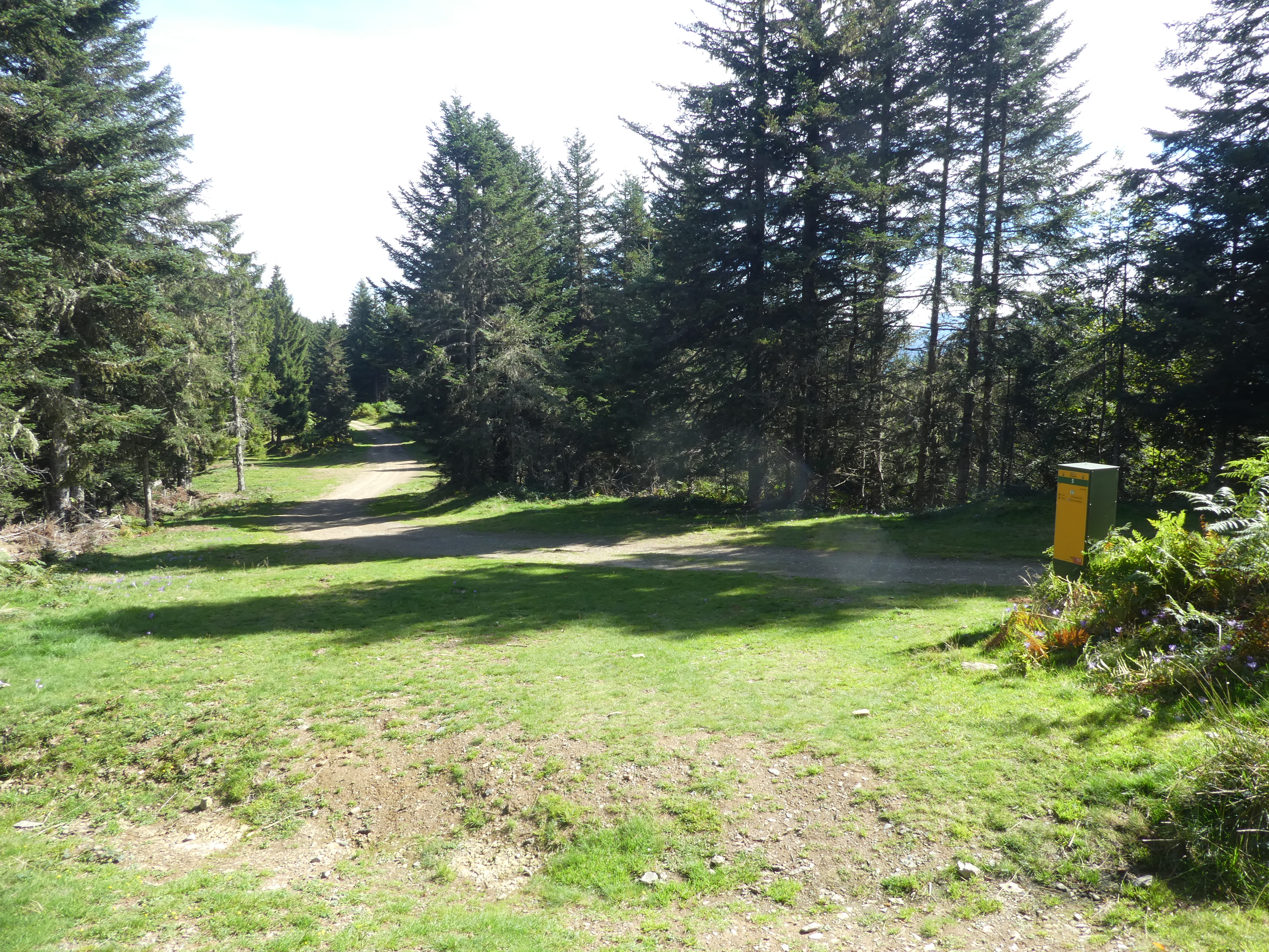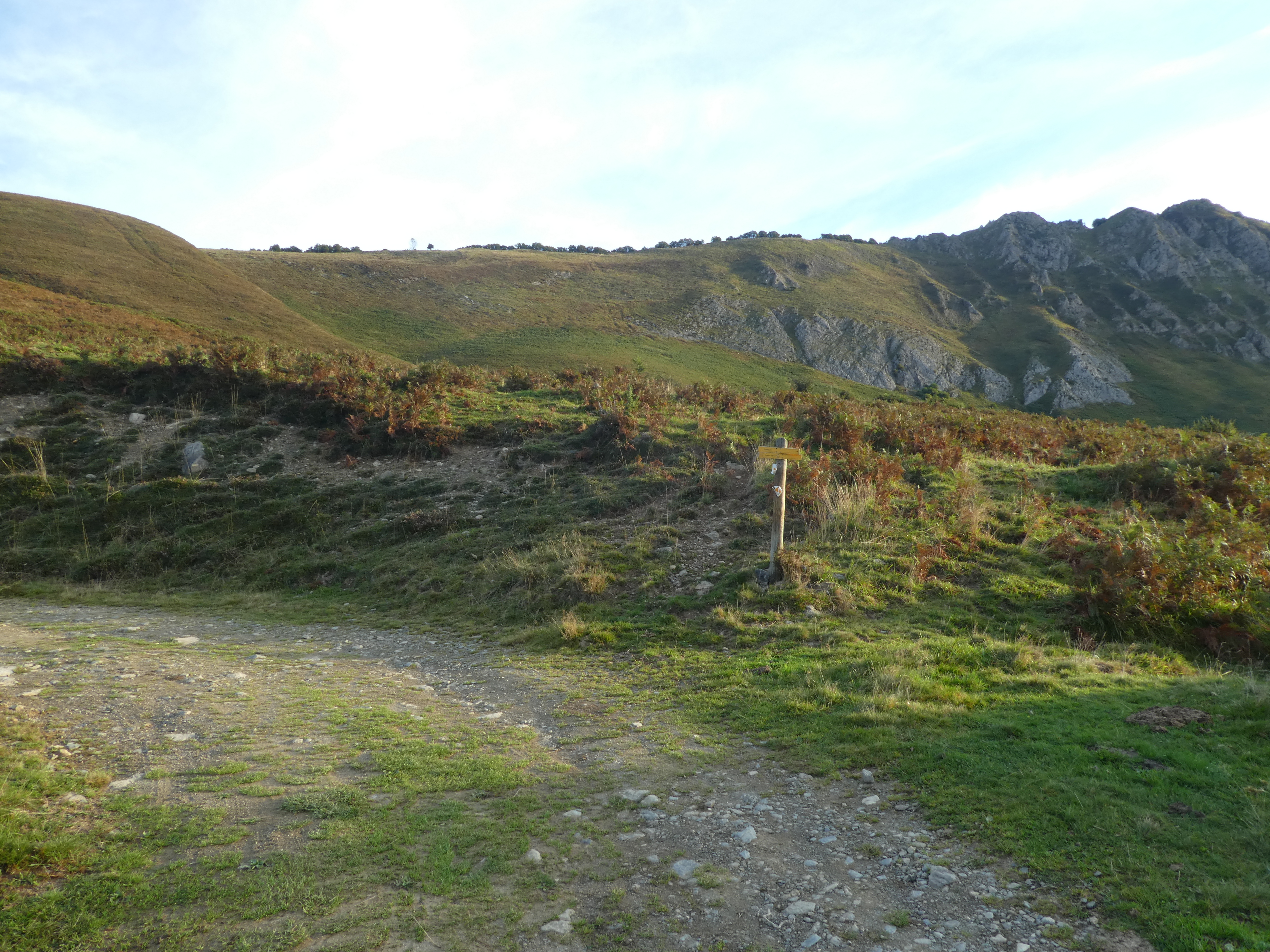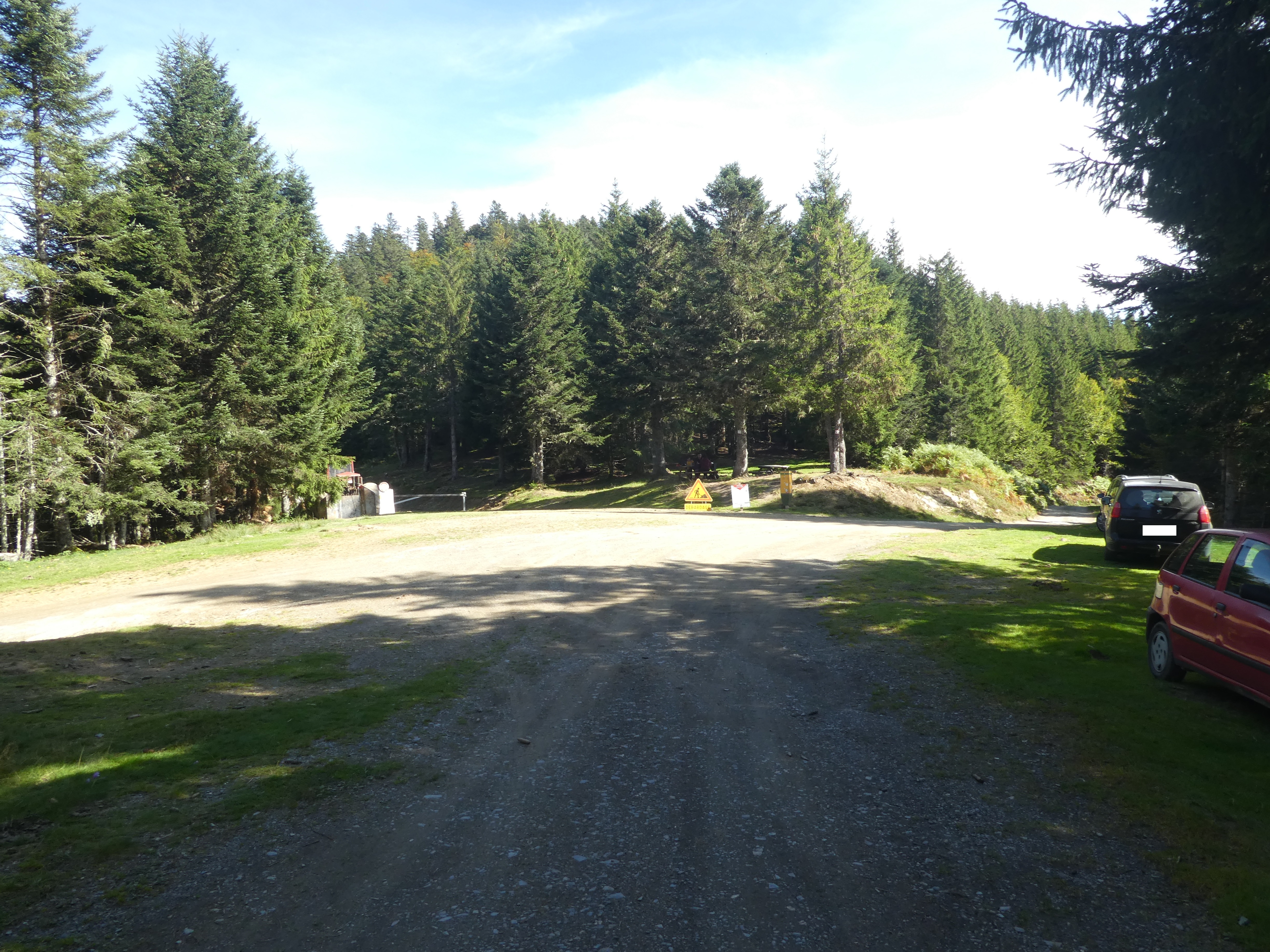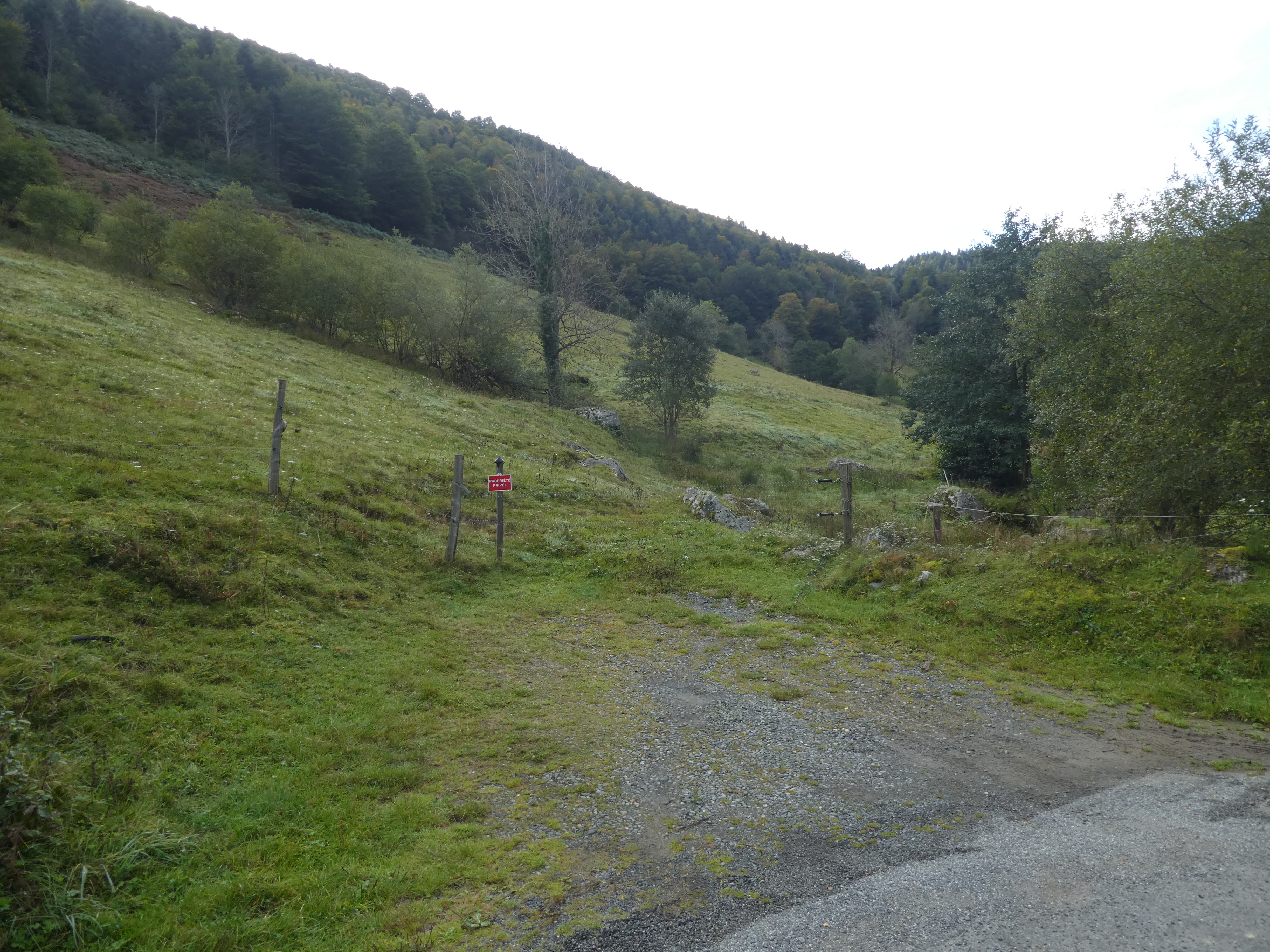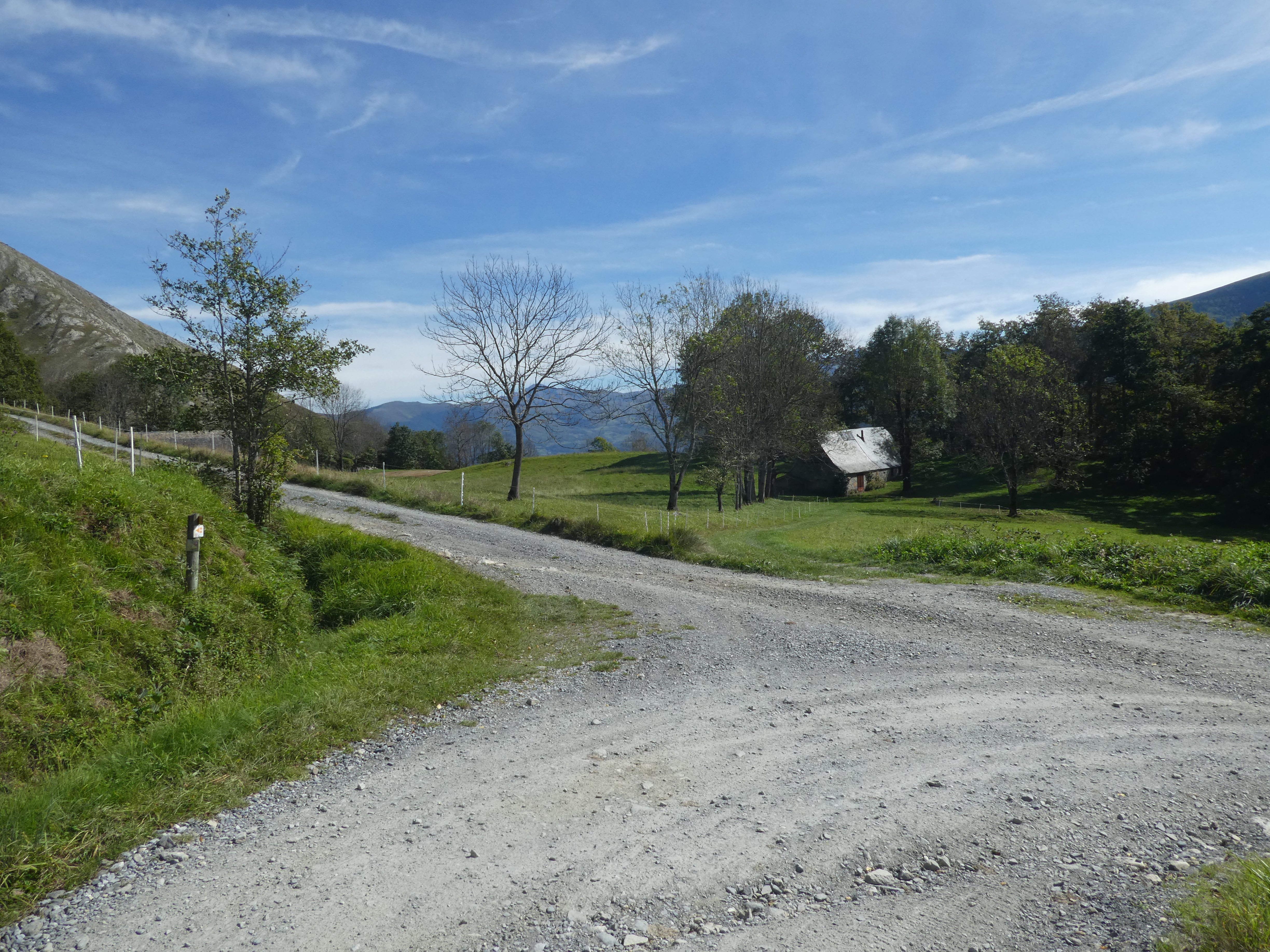 A ce croisement marqué par la présence d'un panneau directionnel (450 mètres après le Col de Couraduque), suivre le chemin partant sur la gauche et longeant le parking direction Aucun