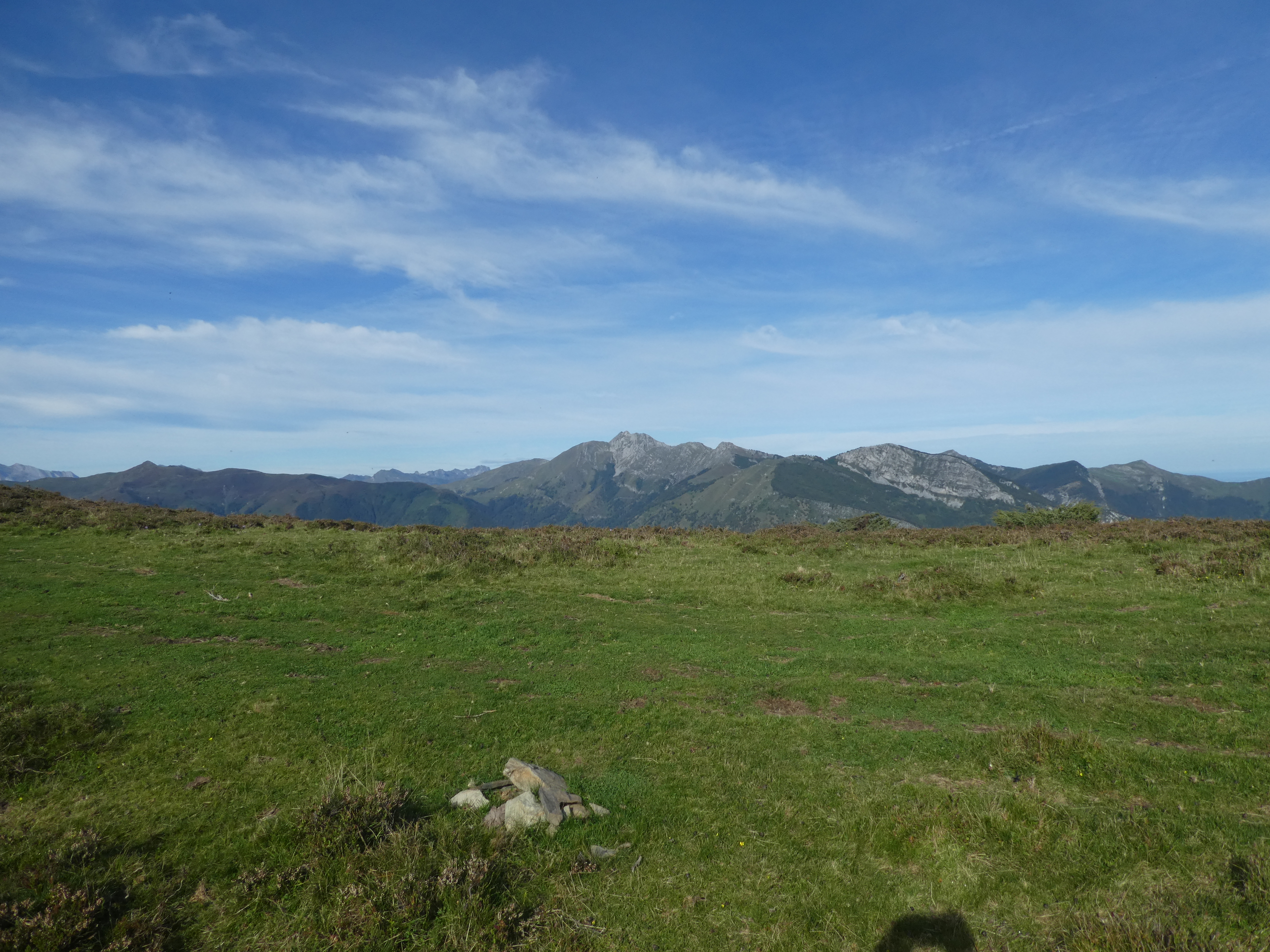 Arrivée au sommet du Pic de Bazès (1804 m) : panorama similaire à celui du Pic de Navaillo avec vue élargie en direction du Balaïtous, des sommets de la Vallée du Valentin et de la Basse Vallée d'Ossau