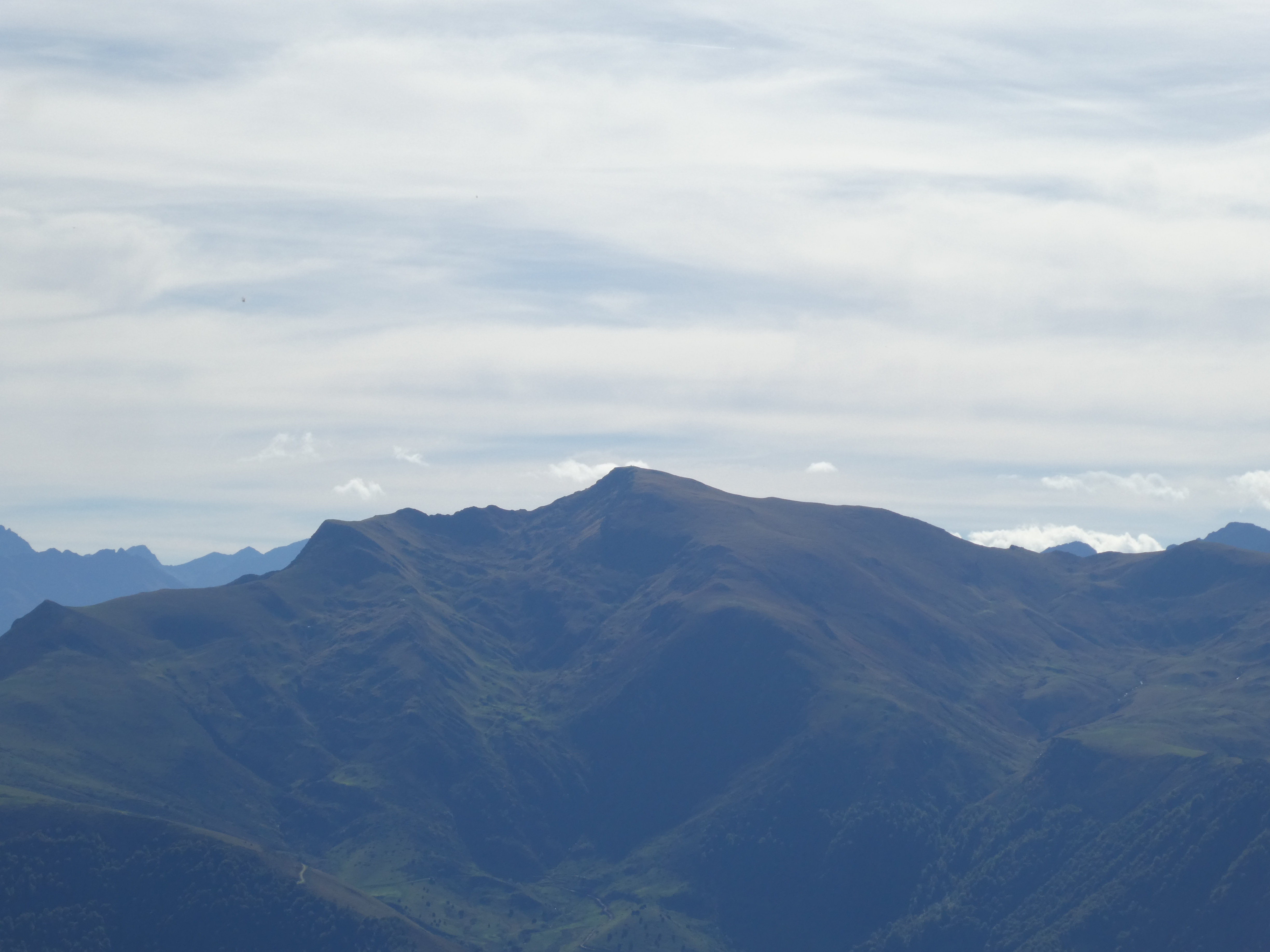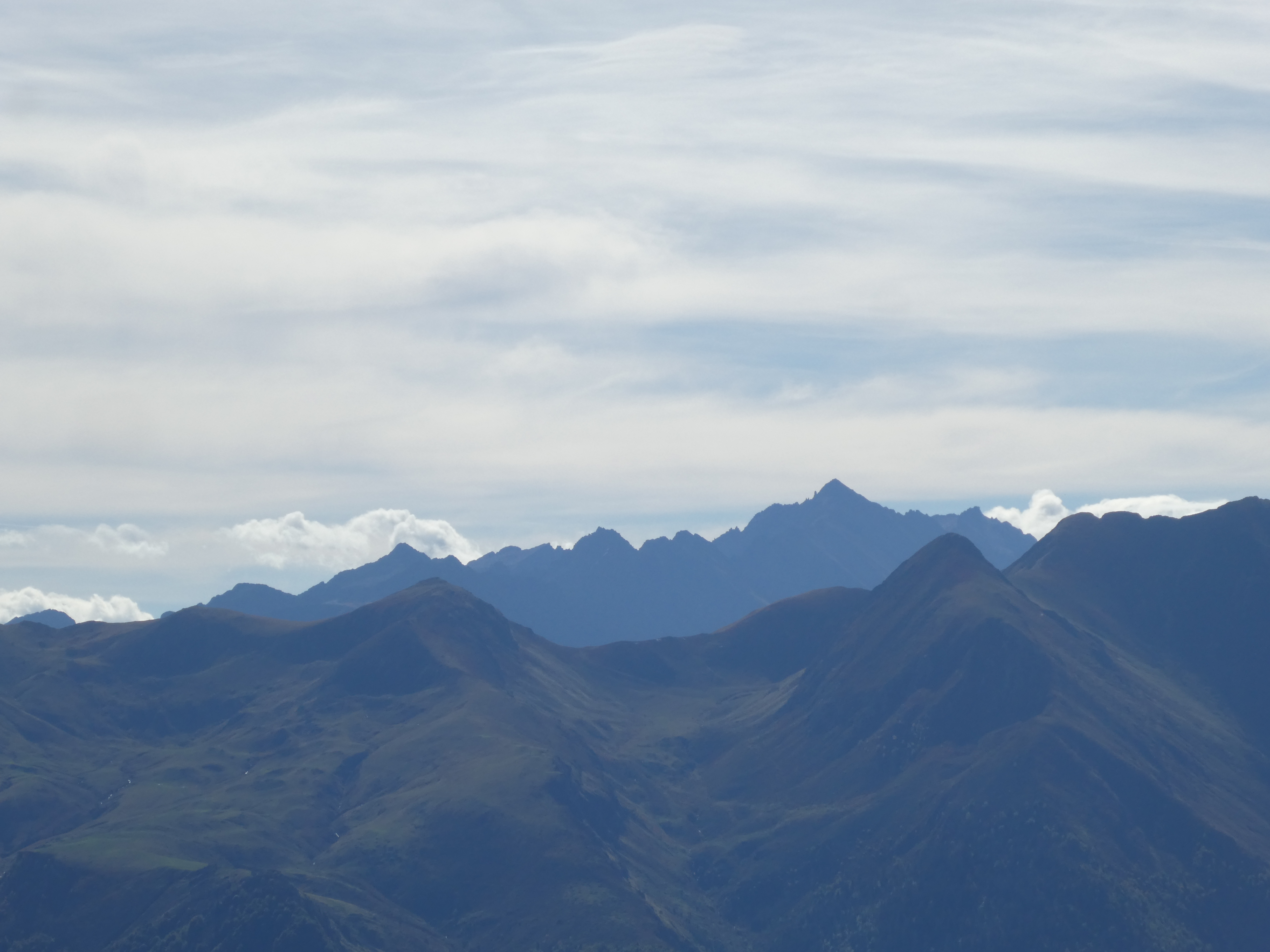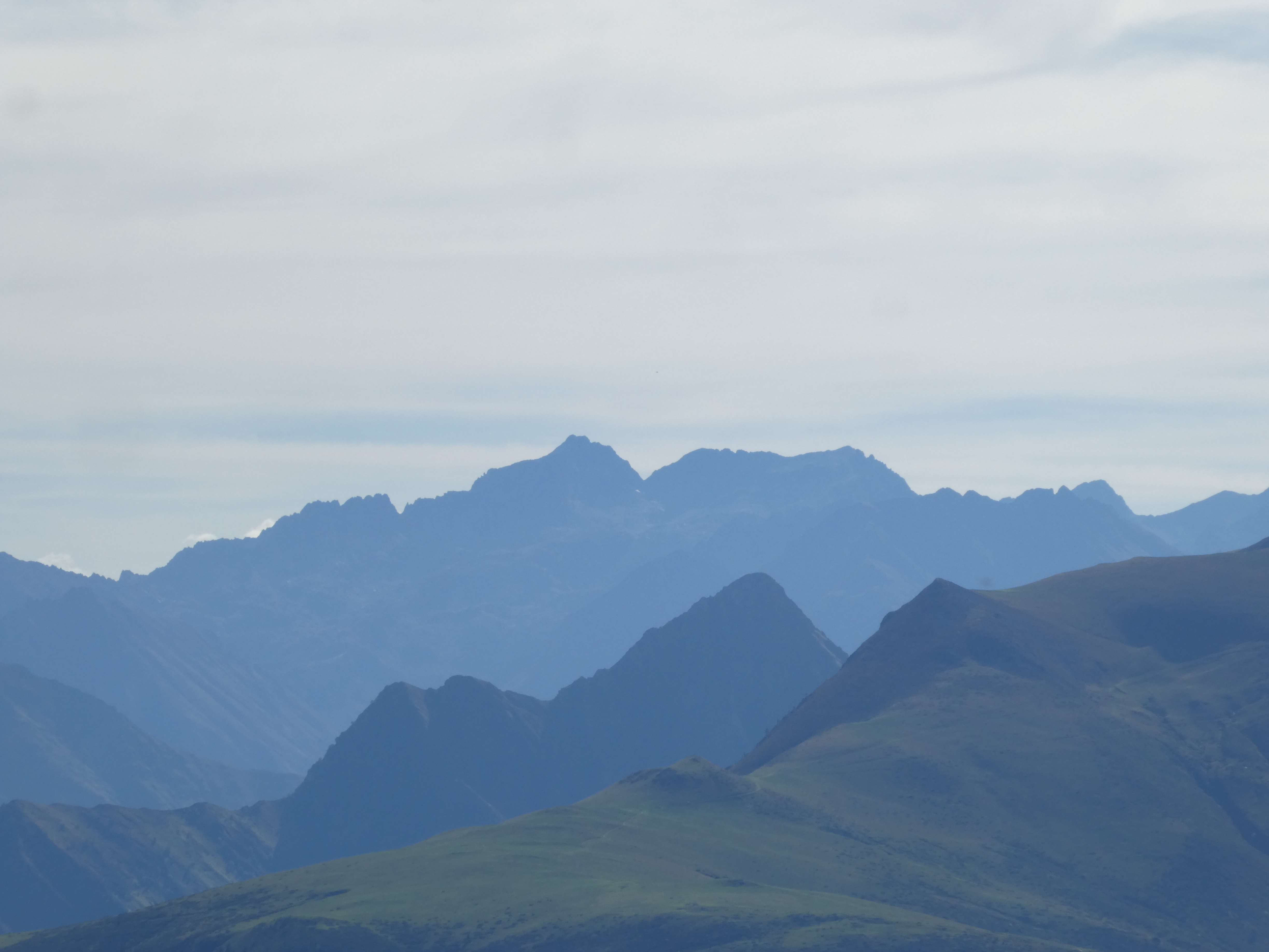 Vue au loin sur les sommets du Haut-Adour (Montaigu, Midi de Bigorre) et de la Réserve Naturelle du Néouvielle
