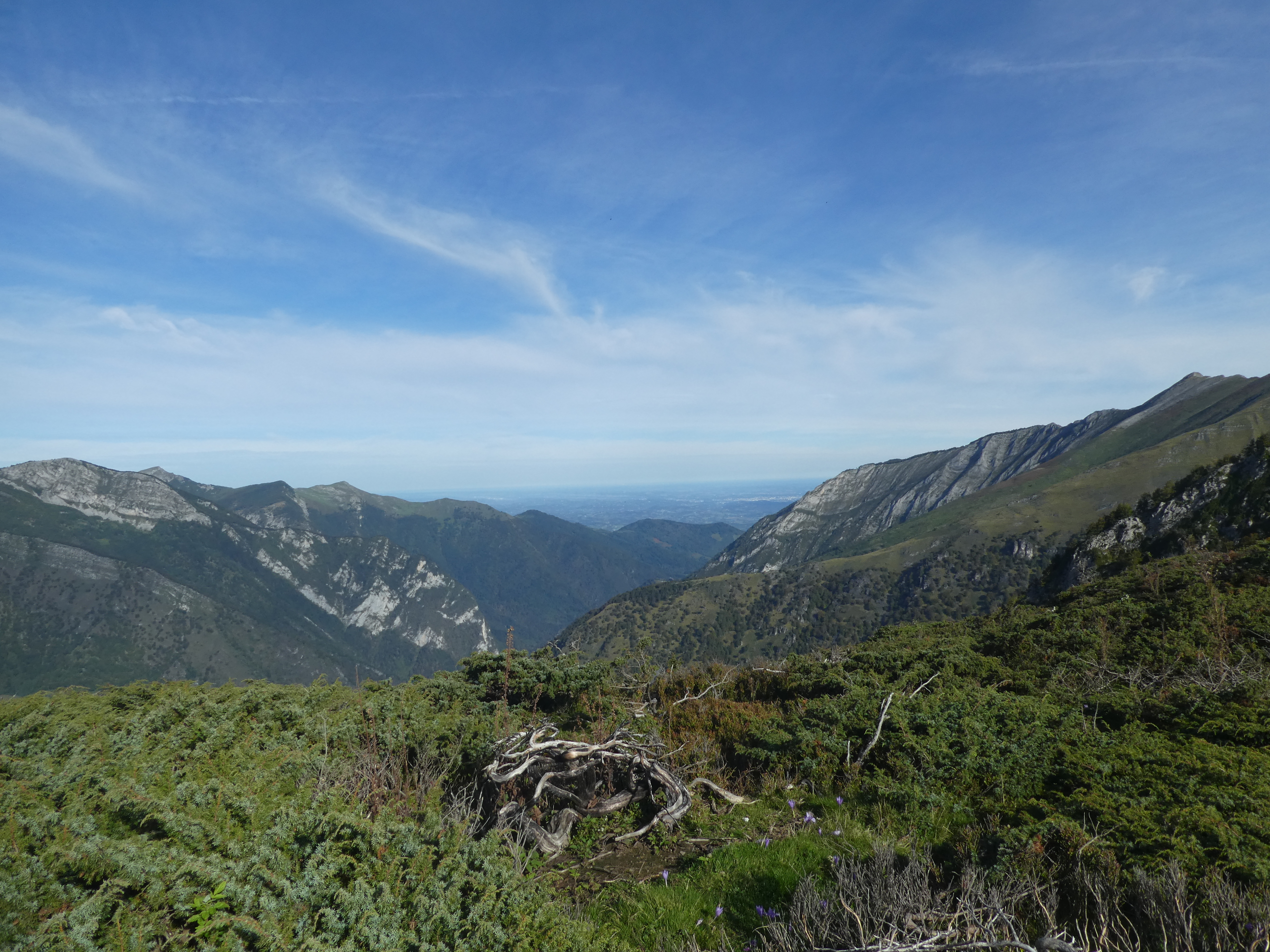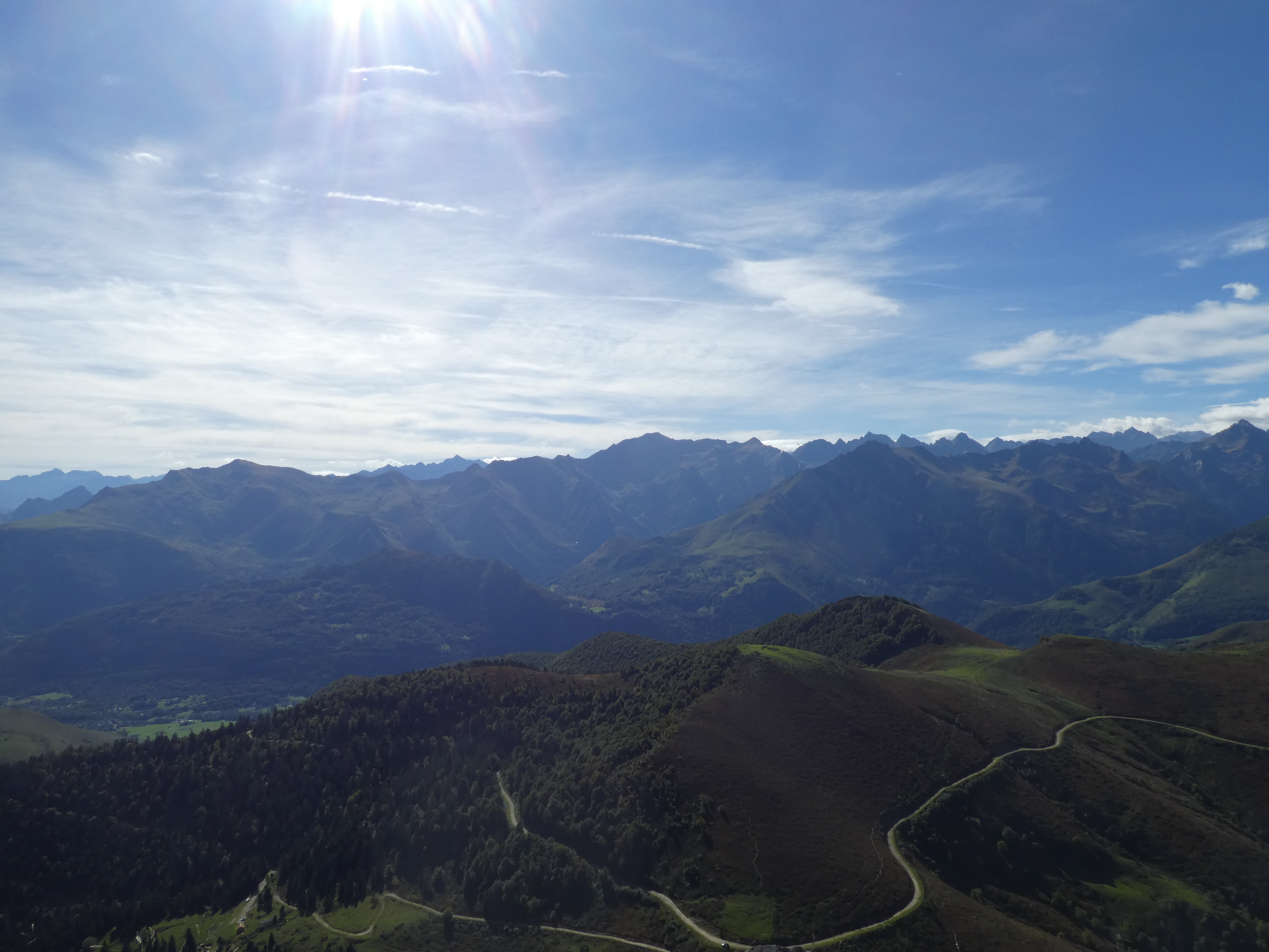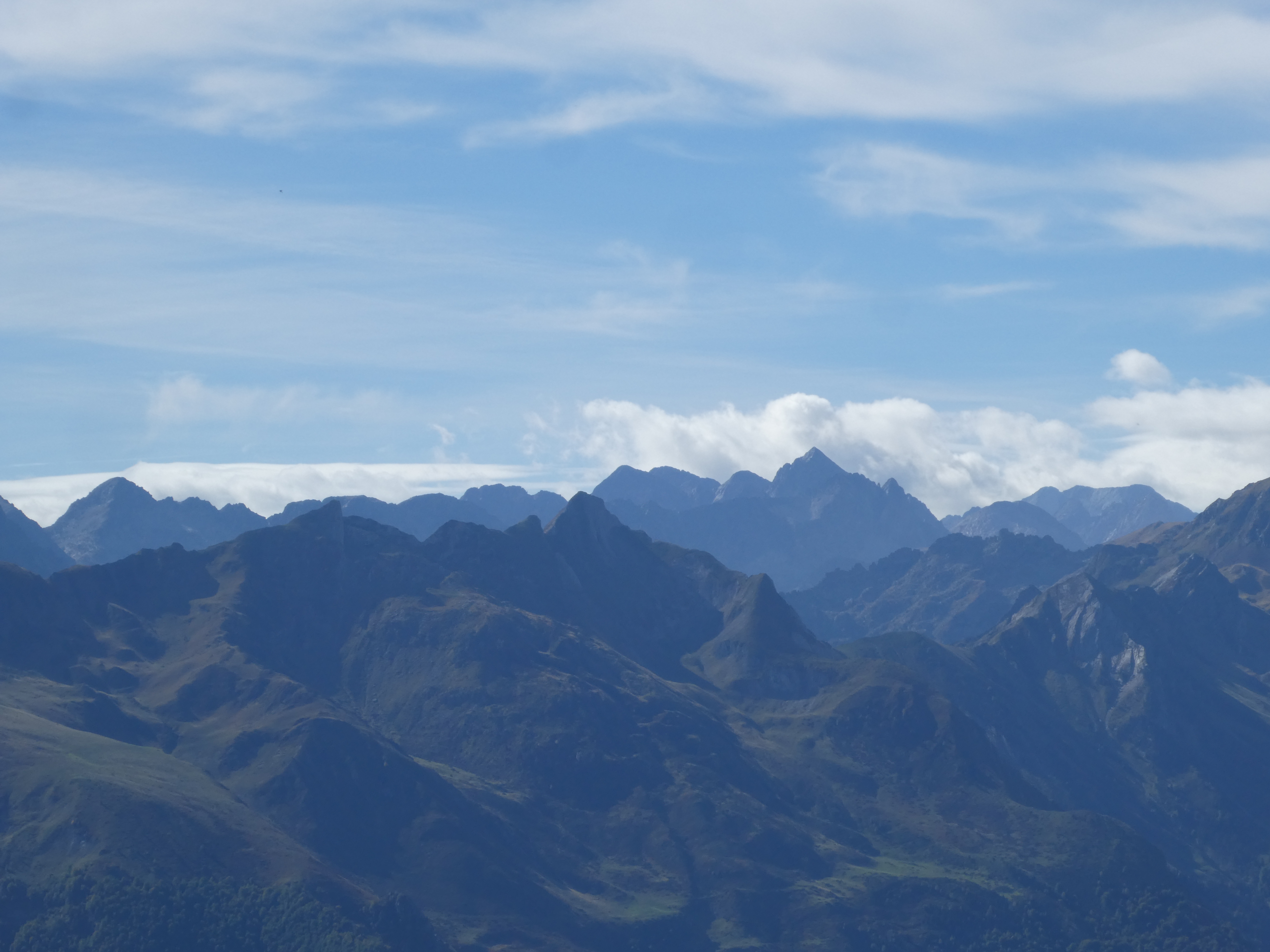 Vue au loin sur les sommets du Haut-Adour (Montaigu, Midi de Bigorre) et de la Réserve Naturelle du Néouvielle