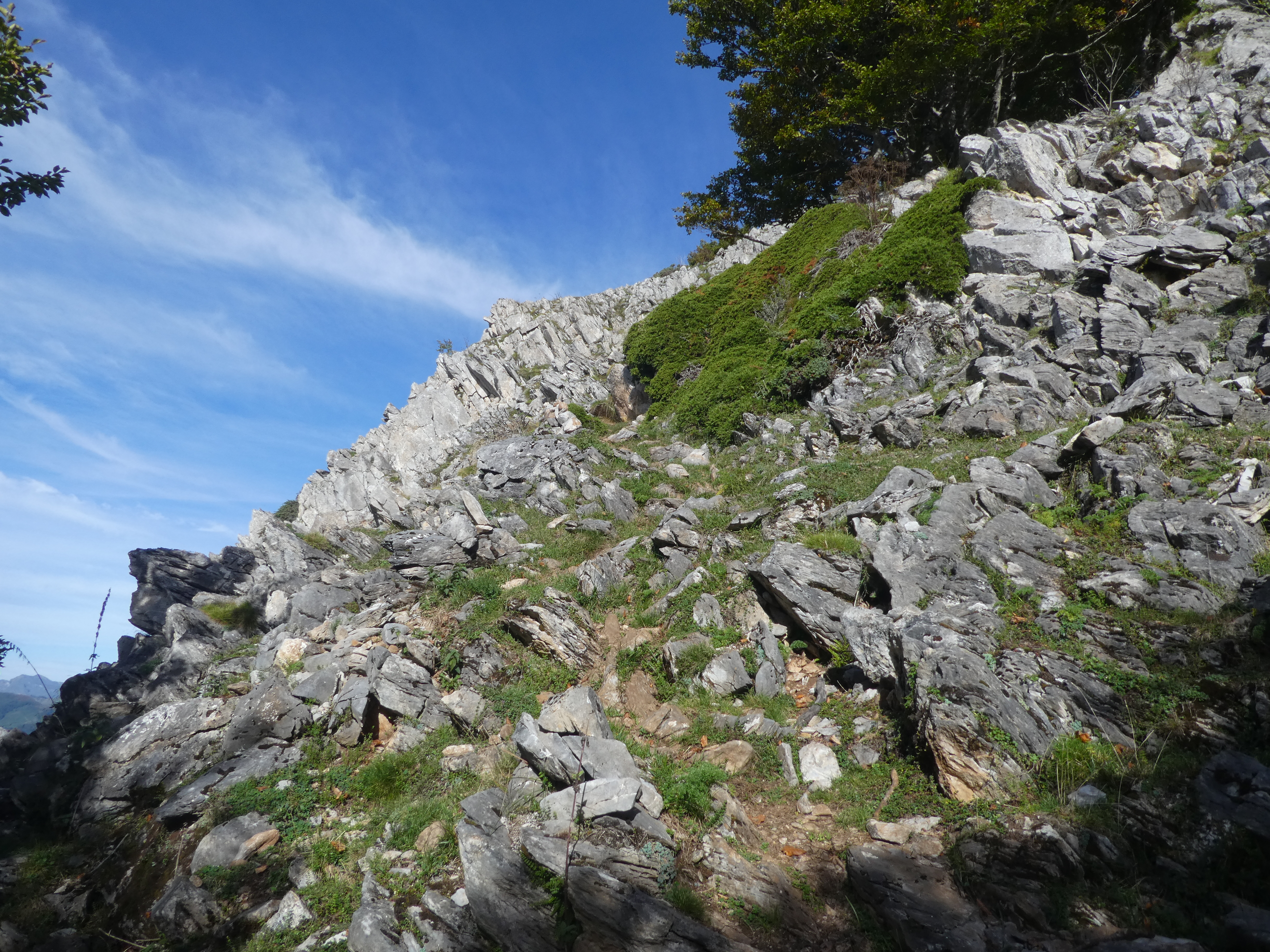 - Montée raide vers le Pic de Bazès avec partie terminale à travers de gros blocs stables (légèrement aérien)