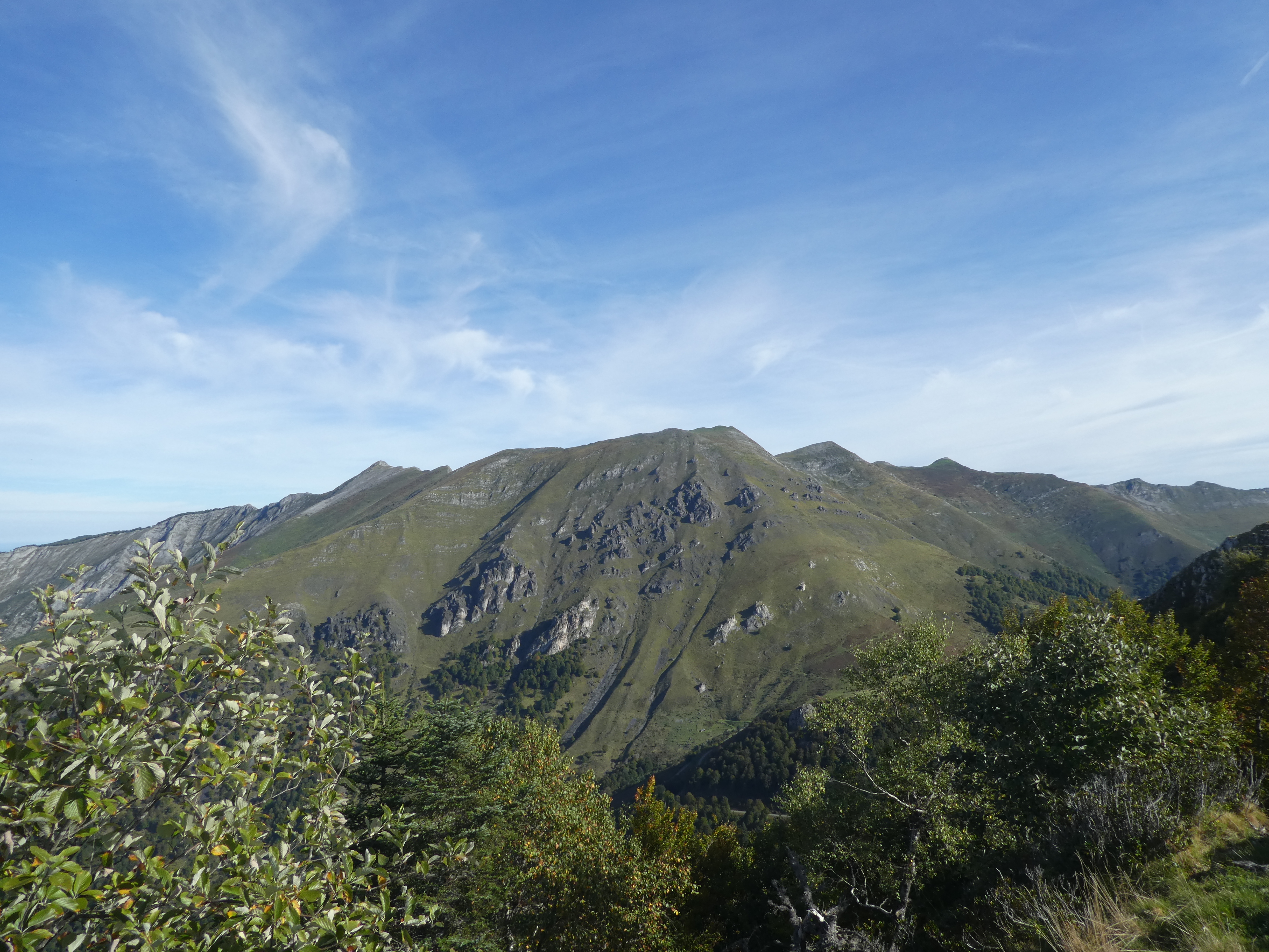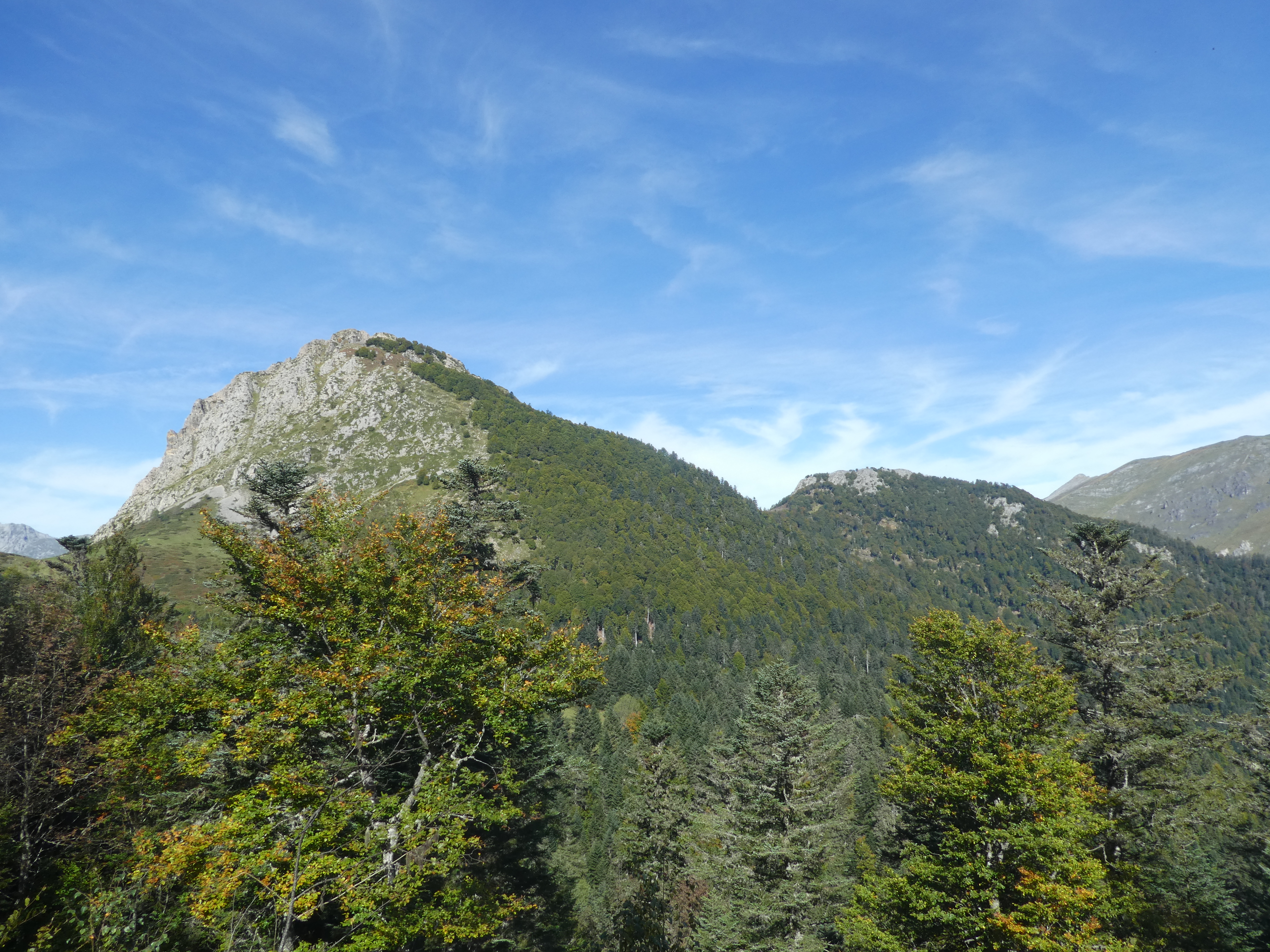 Belle vue sur les sommets béarnais avec le Soum de Grum à gauche, la Moulle de Jaüt au centre et le Pic du Merdanson à droite