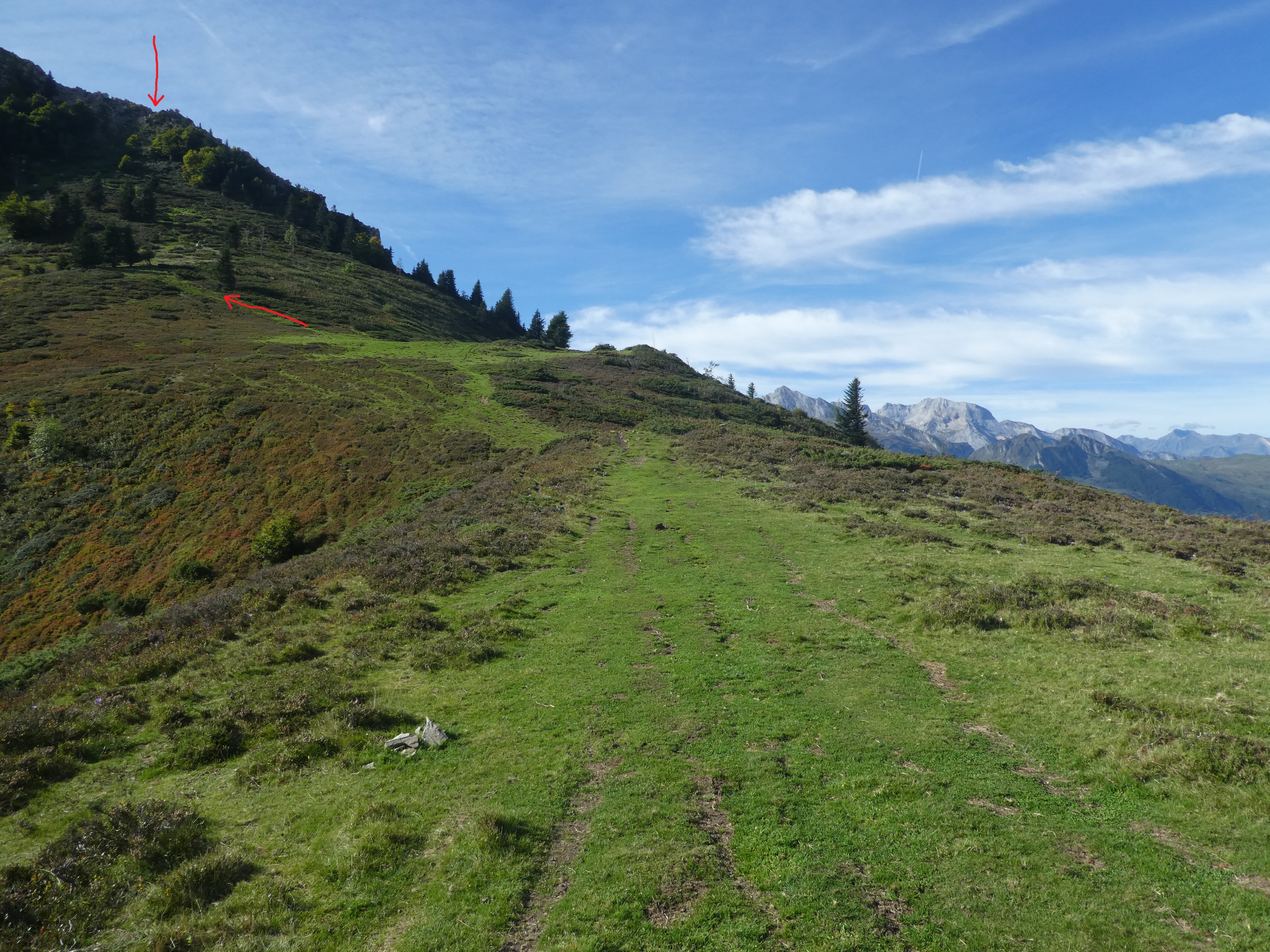 Col de la Serre (1458 m) : suivre le large chemin partant légèrement sur la droite direction Col de Couraduque