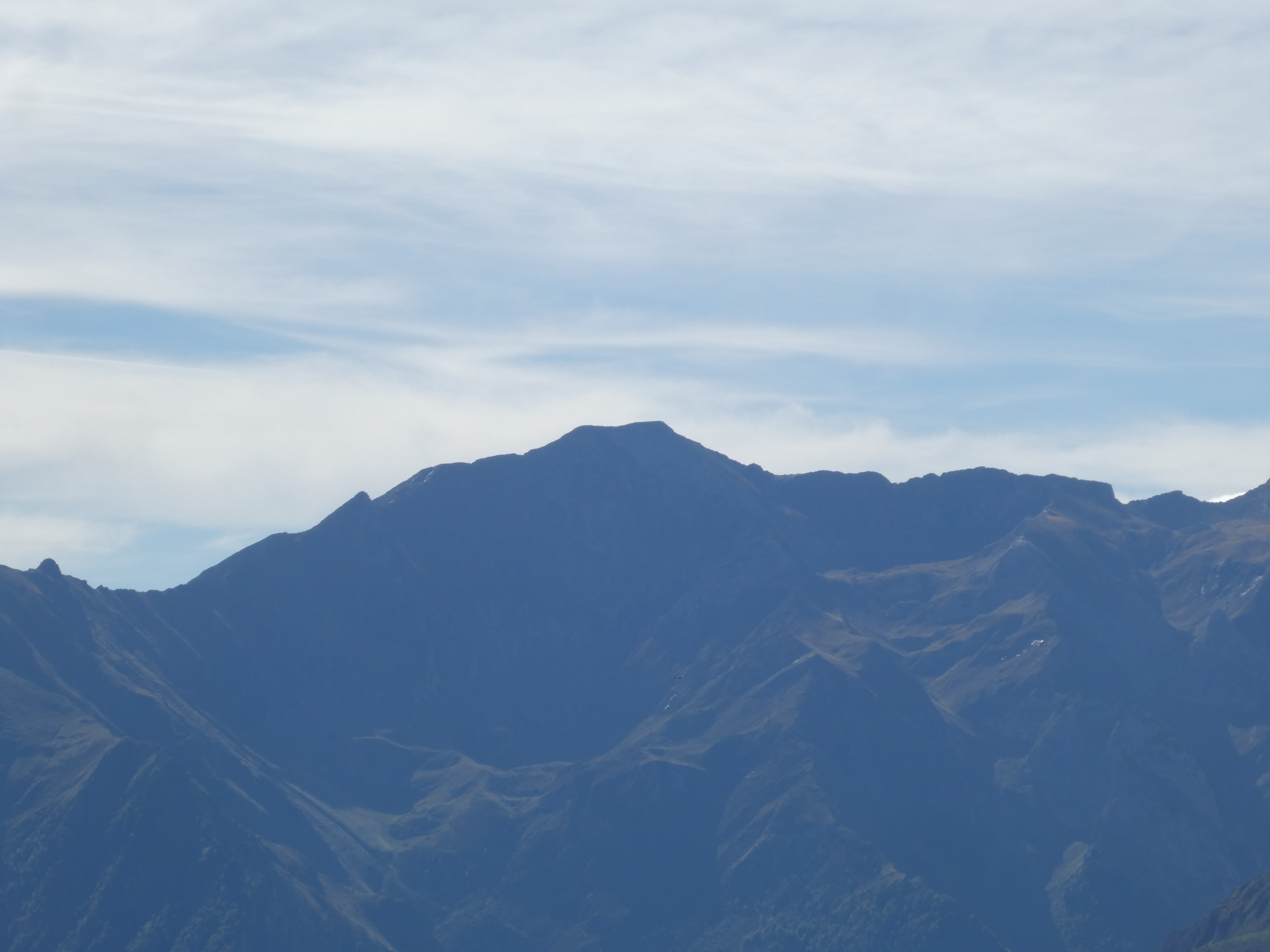 Zoom sur le Pic du Midi d'Arrens (2267 m) et le Balaïtous (3144 m) en arrière plan