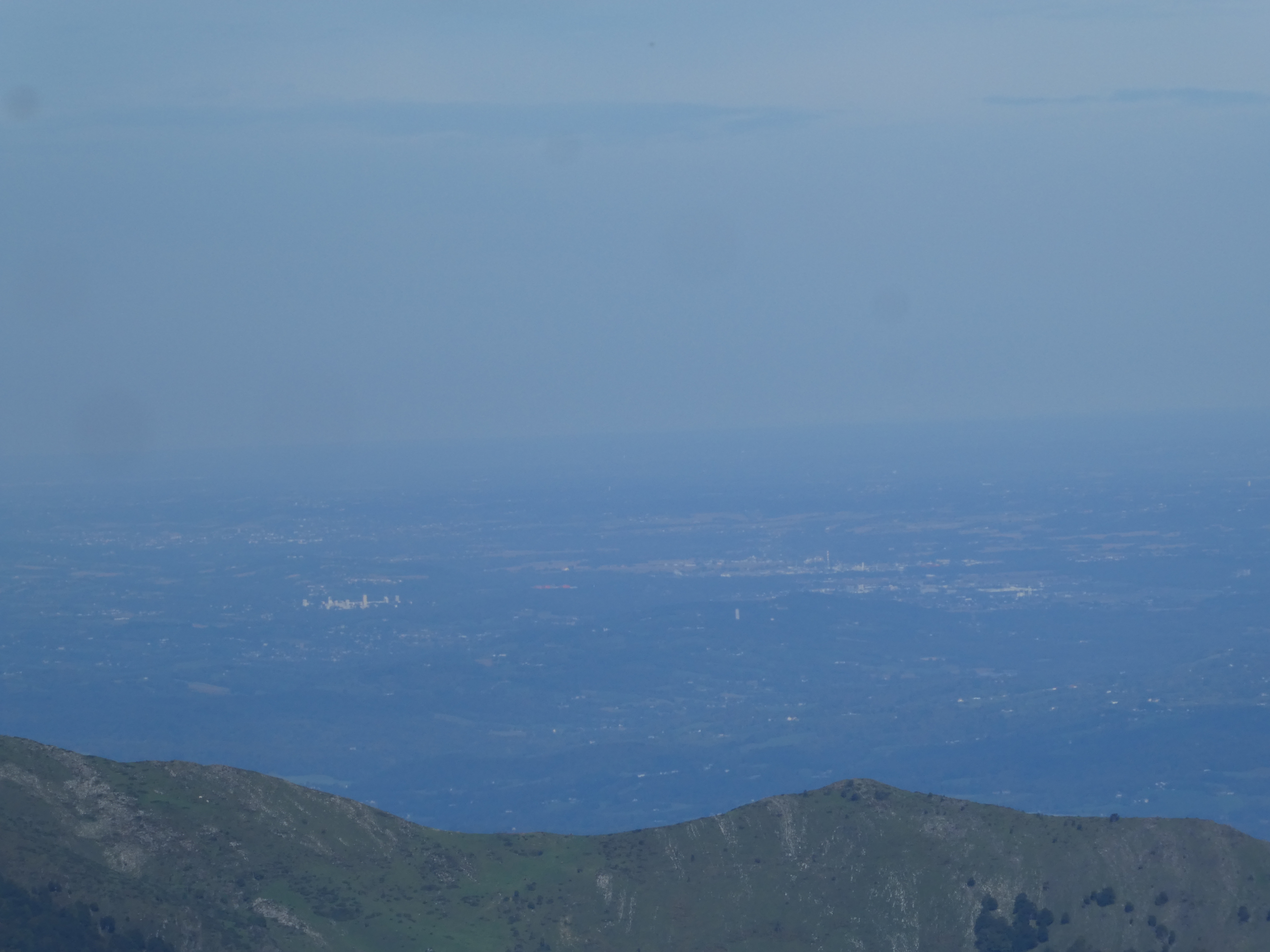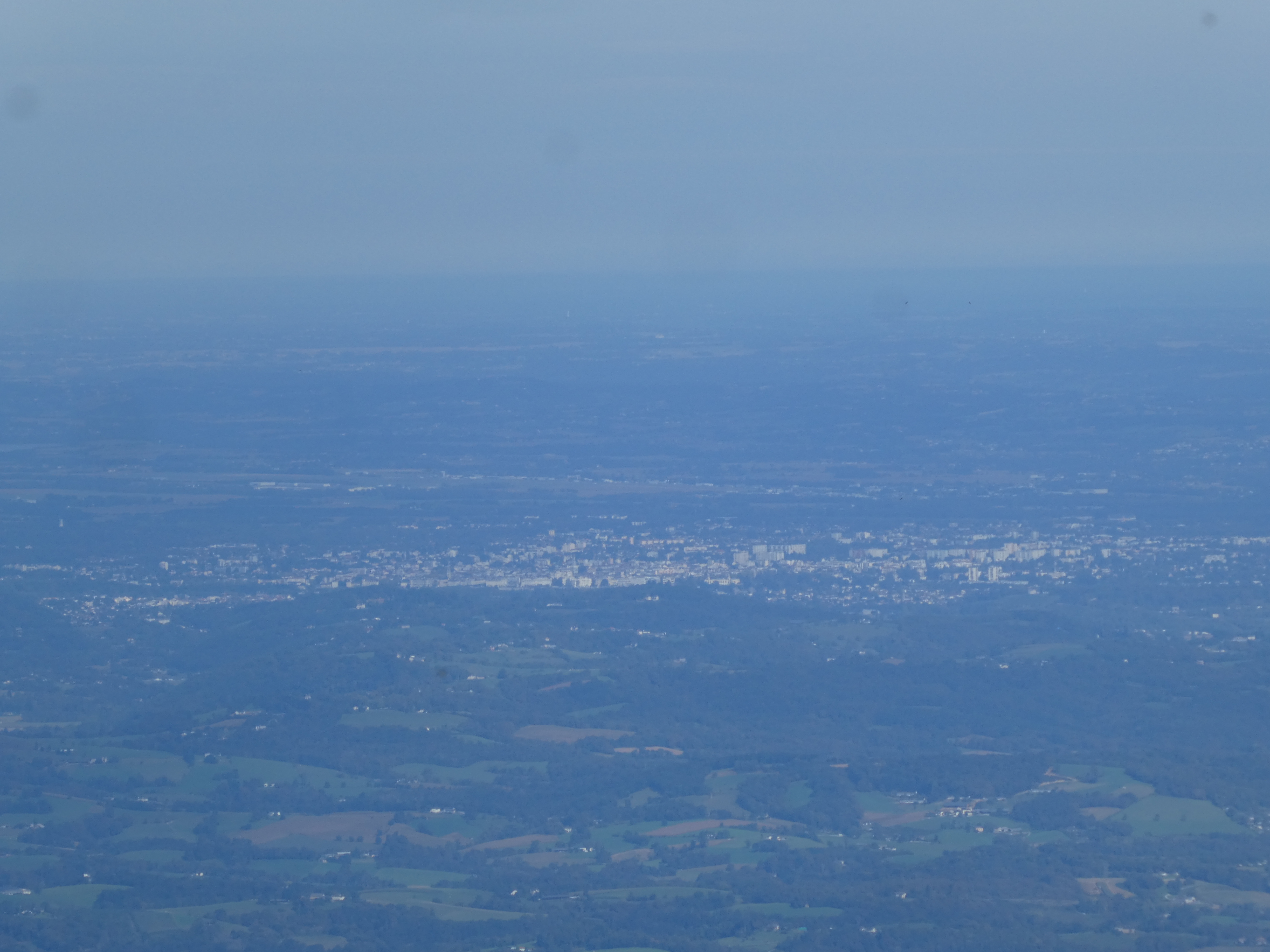 Zoom sur la ville de Pau, bien visible, distante de 35 kilomètres