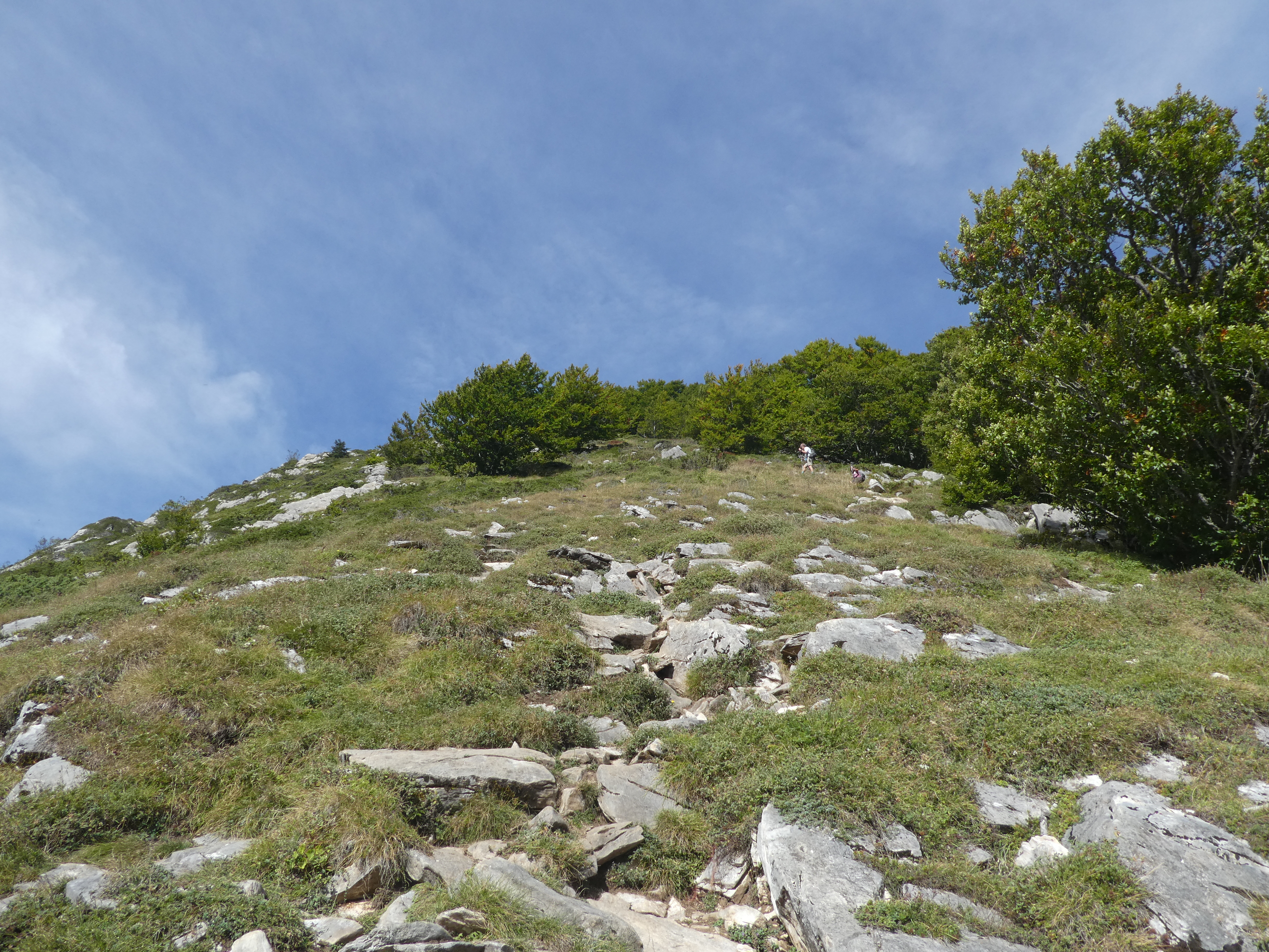 La première partie de la descente du Pic de Bazès est très raide (comme la montée d'ailleurs)