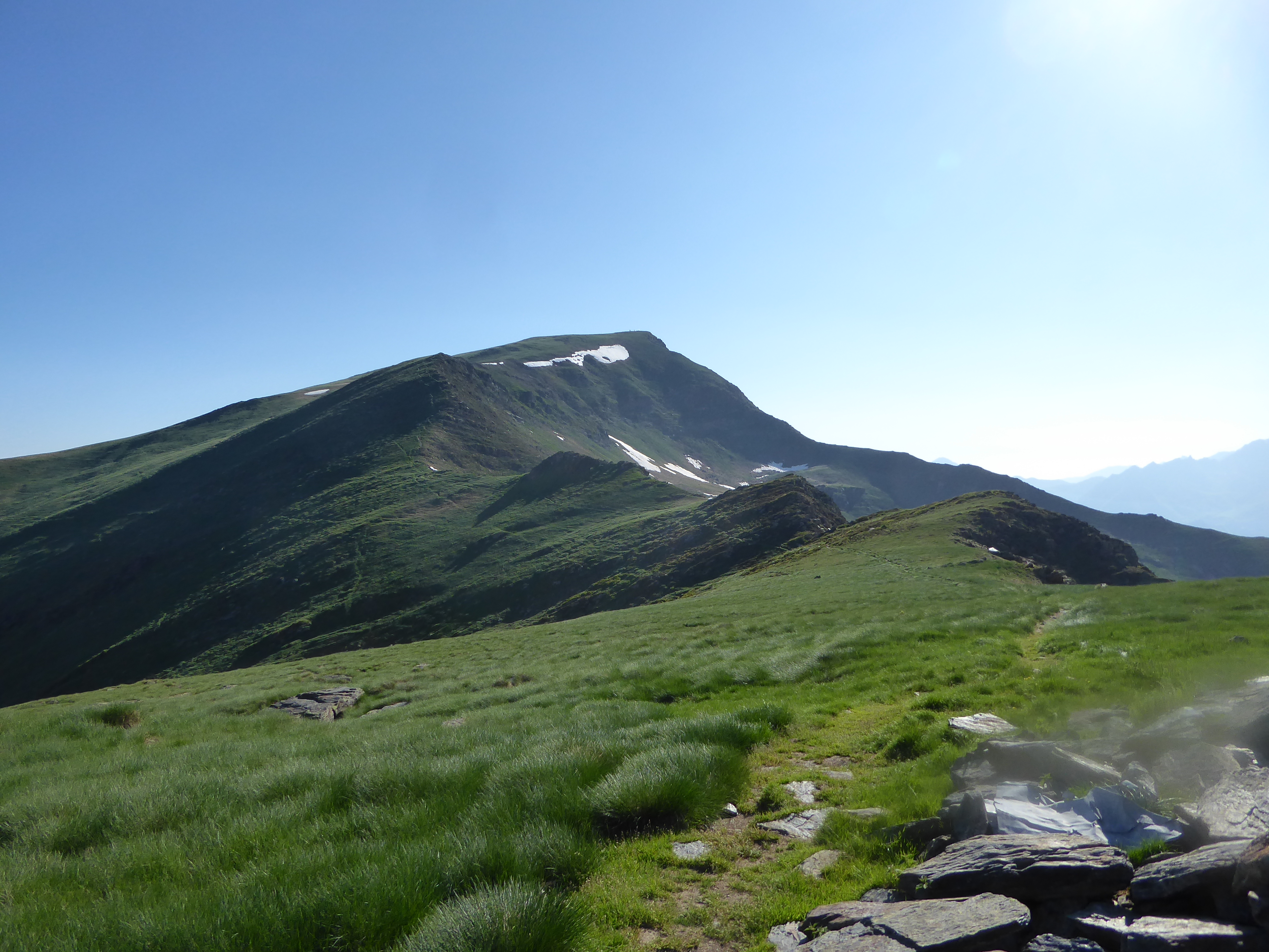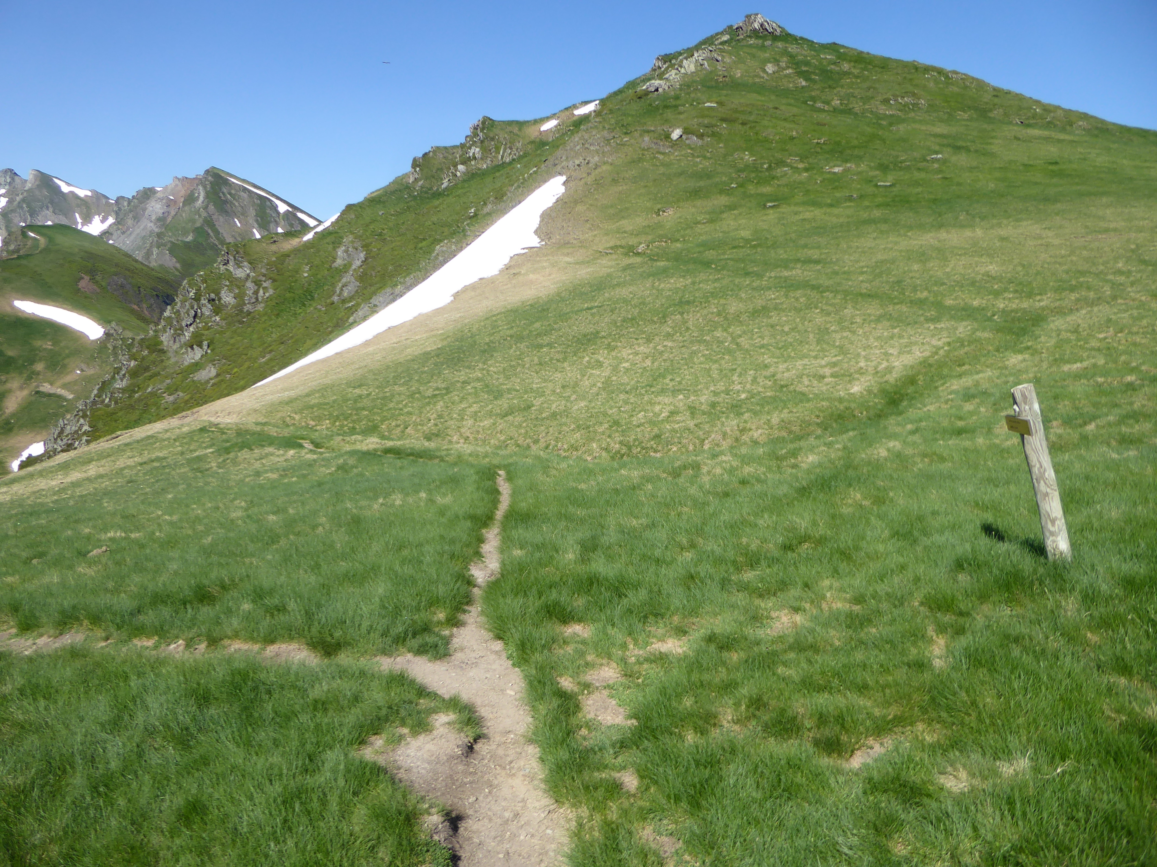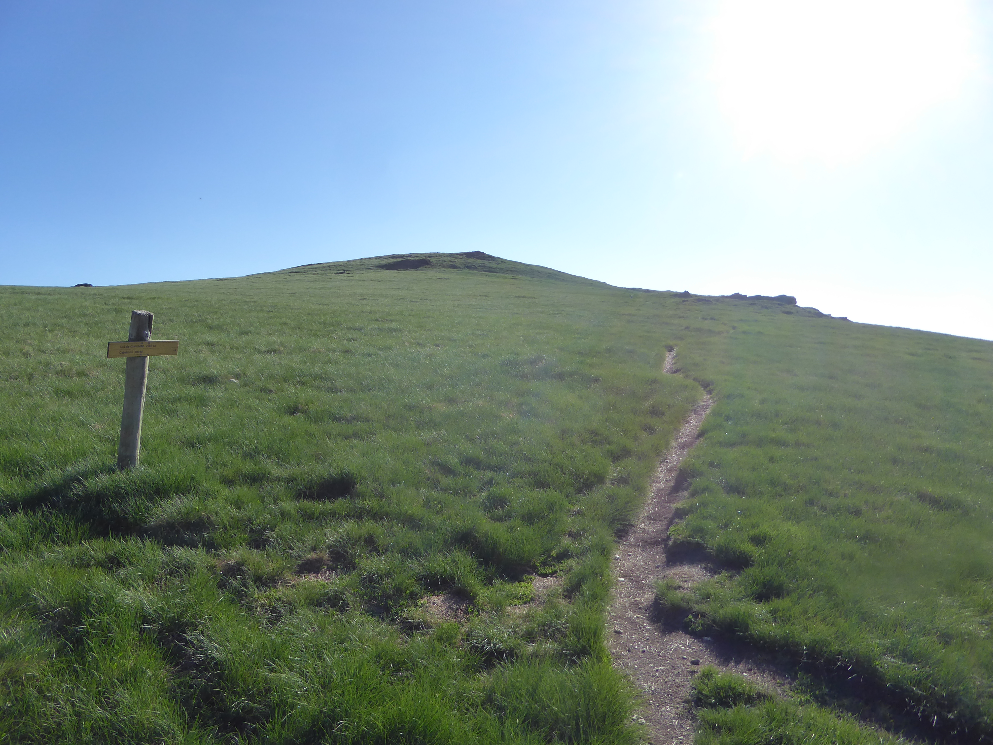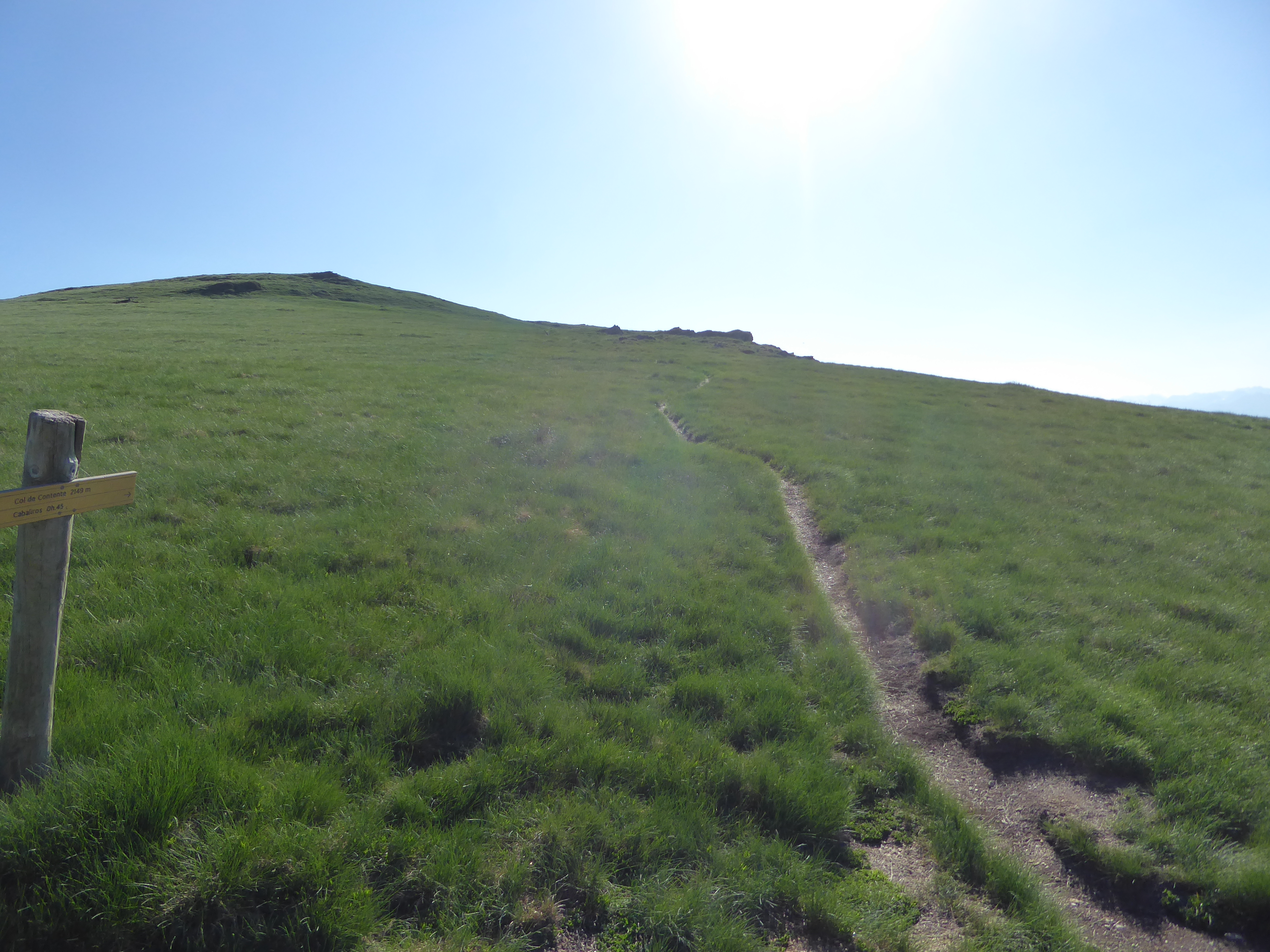 Col de Contente (2149 m) : suivre le chemin montant tout droit et suivant le fil de crête direction Pic du Cabaliros
