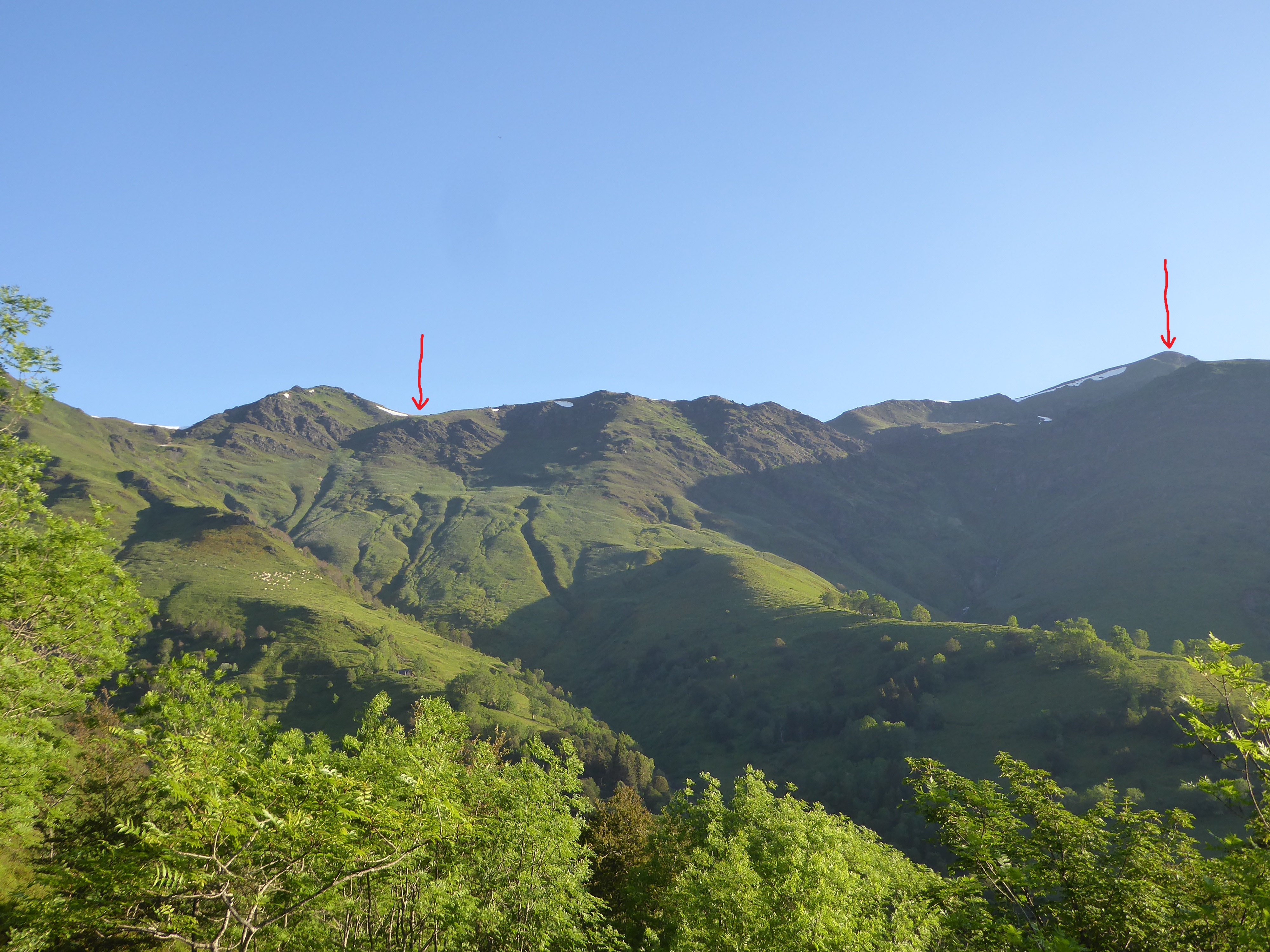 Vue sur les points à atteindre : à gauche, le Col de Contente et à droite le sommet du Cabaliros