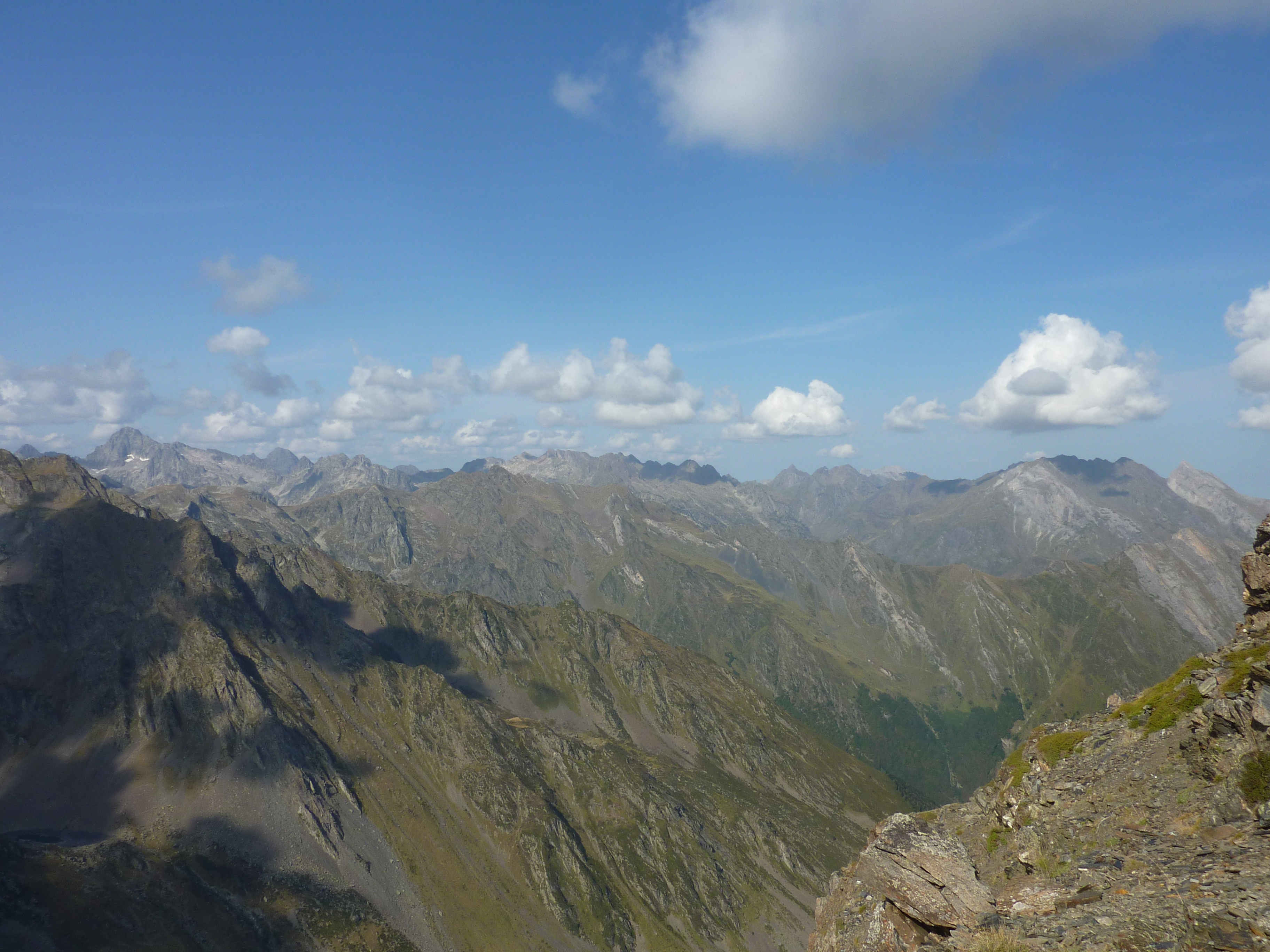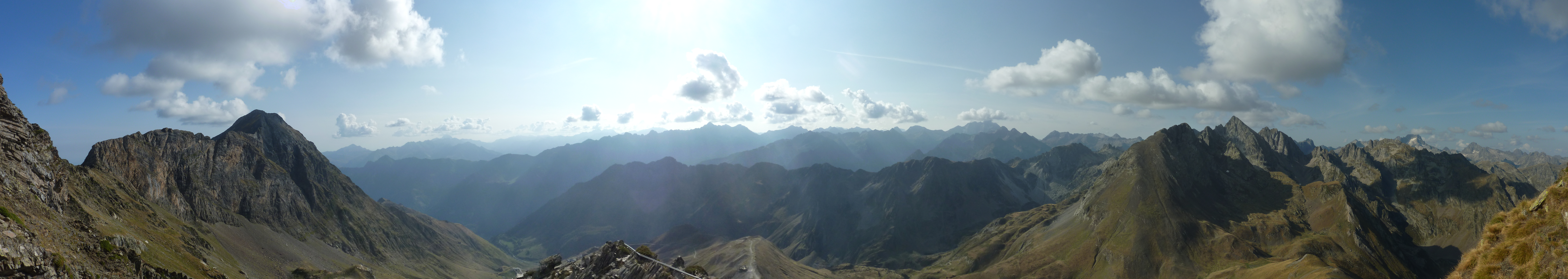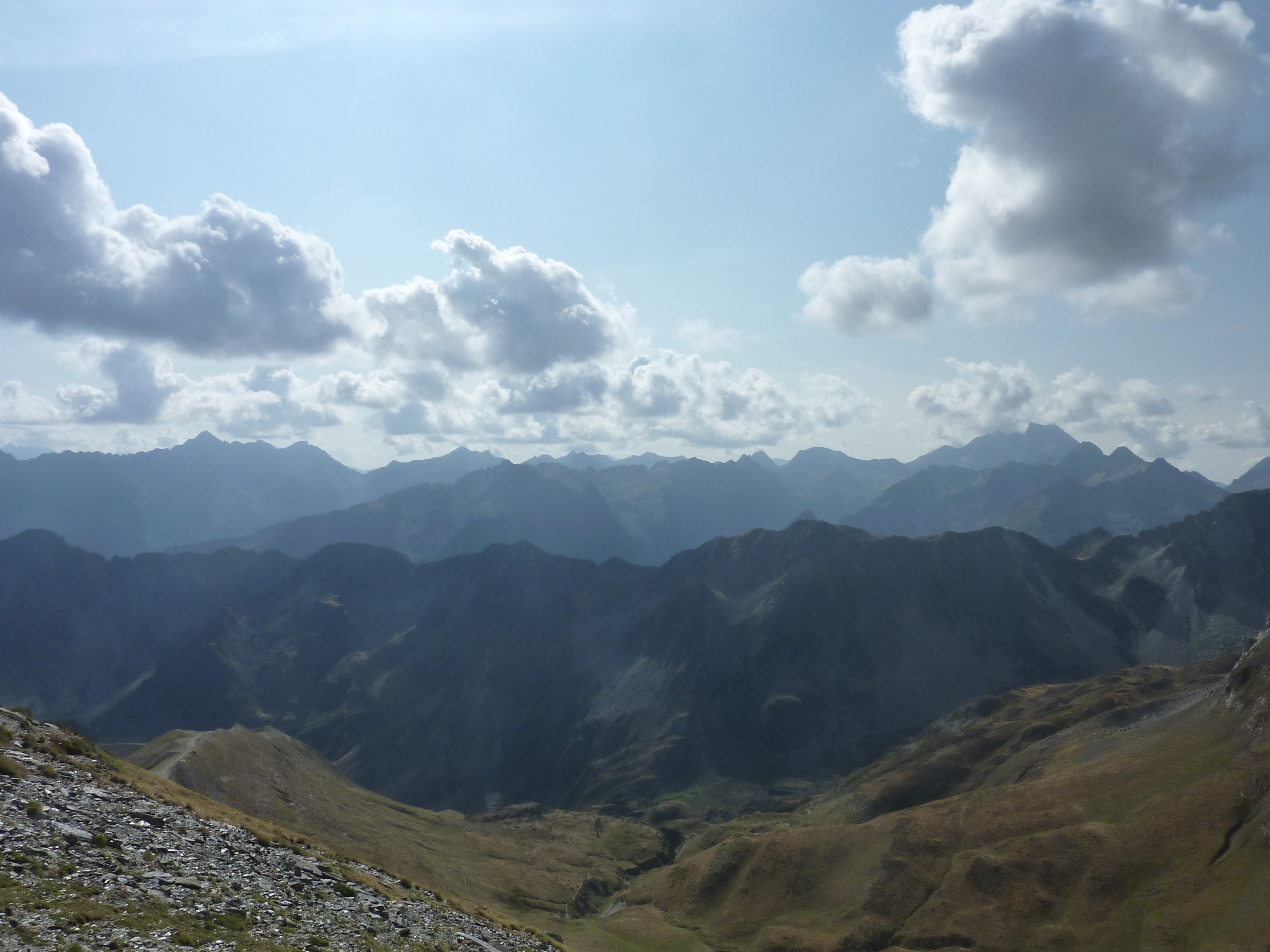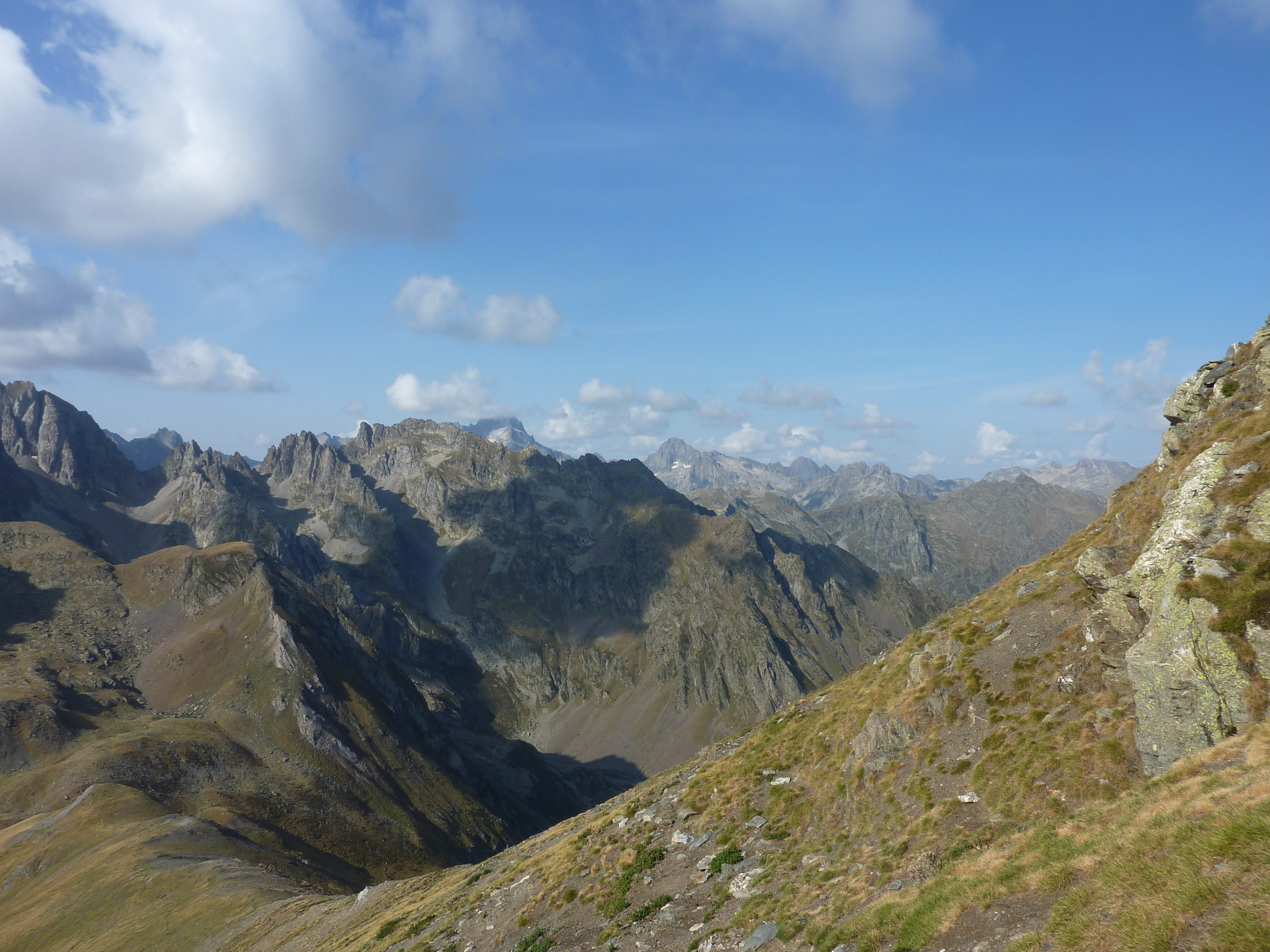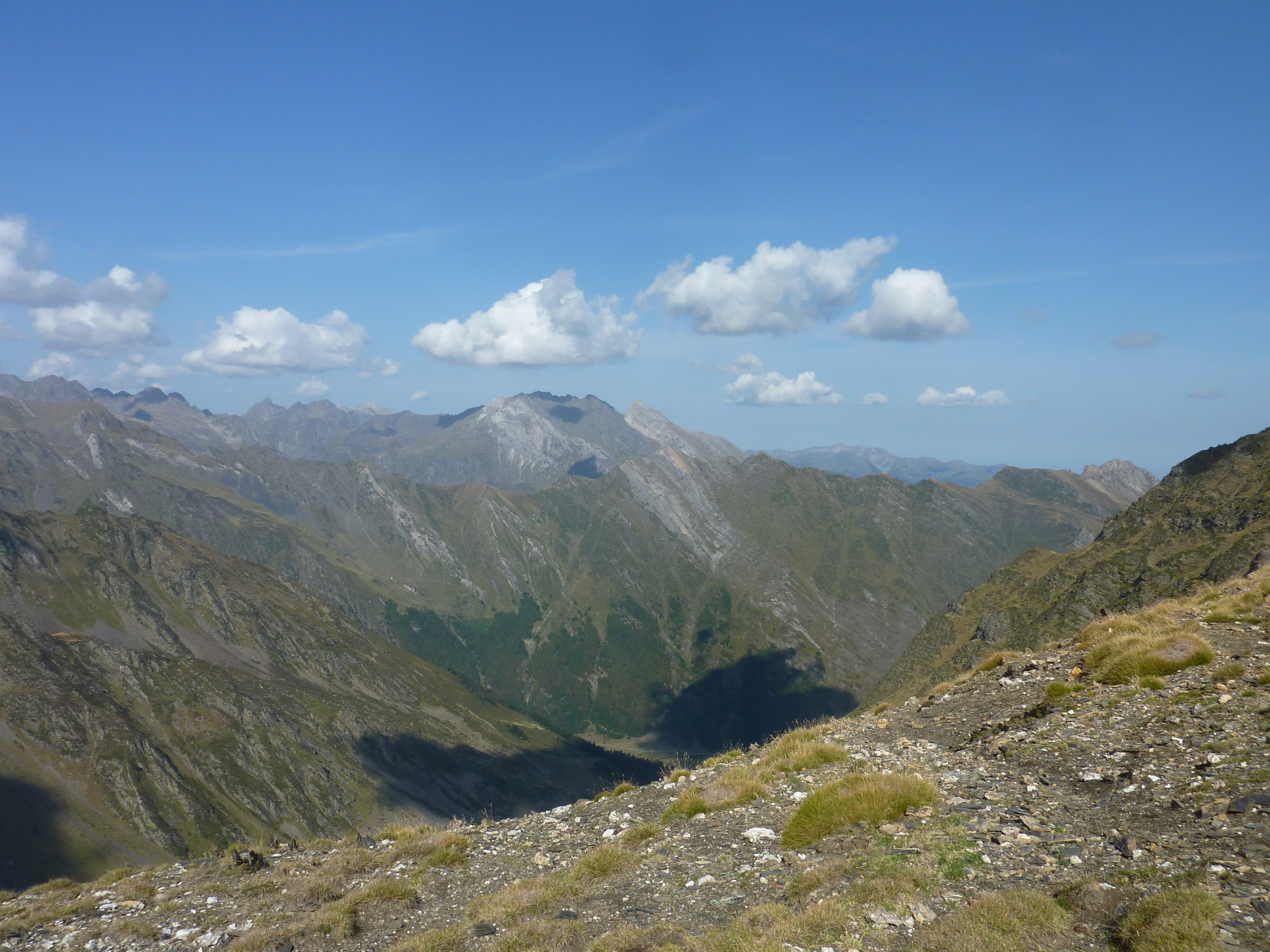 Vue sur le Ségalas, le Grand Barbat, le Balaïtous et le Palas (de gauche à droite)