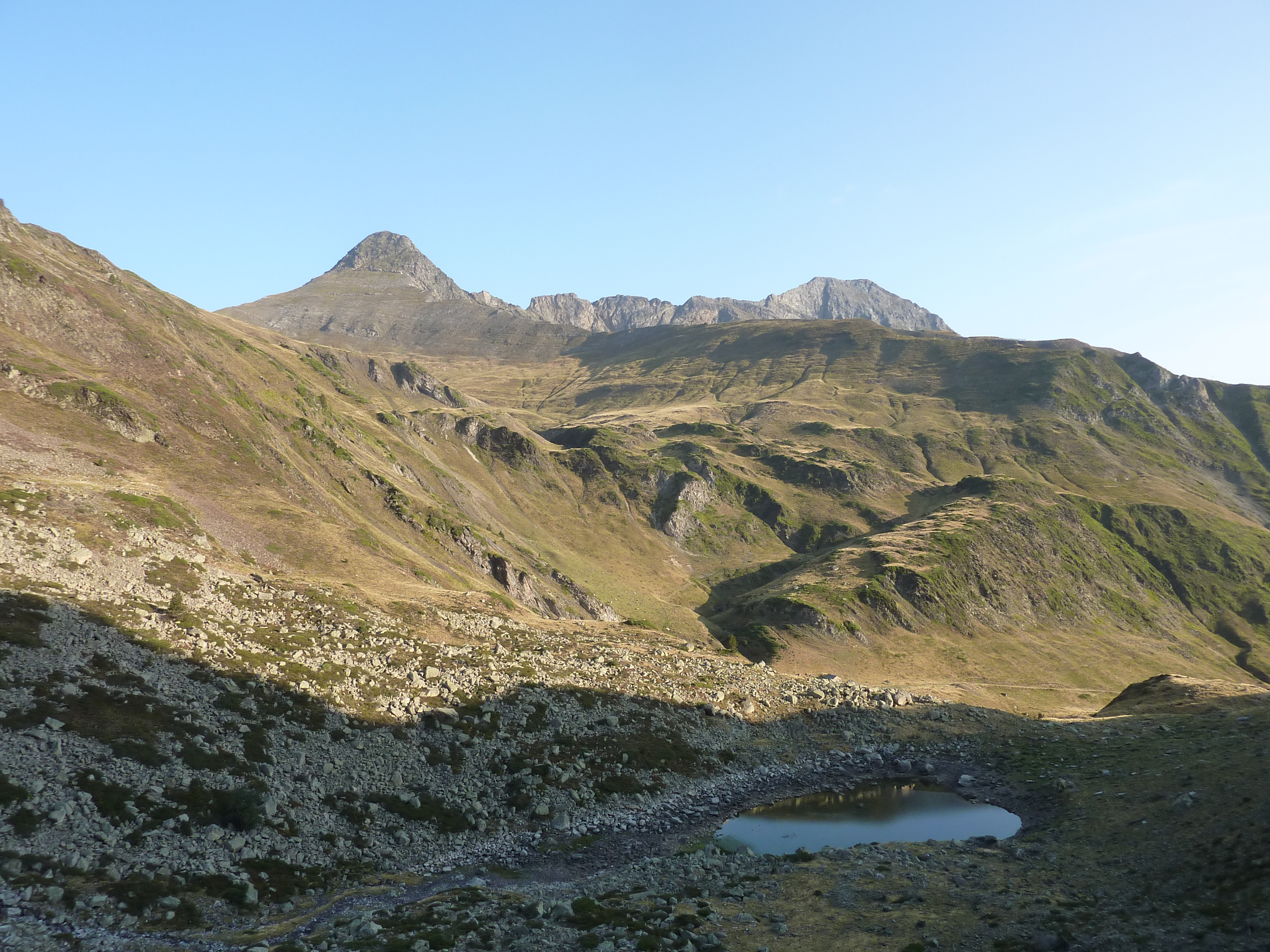 Belle vue sur le Pic de Courounalas et le Col de la Hougade depuis le Lac d'Ilhéou