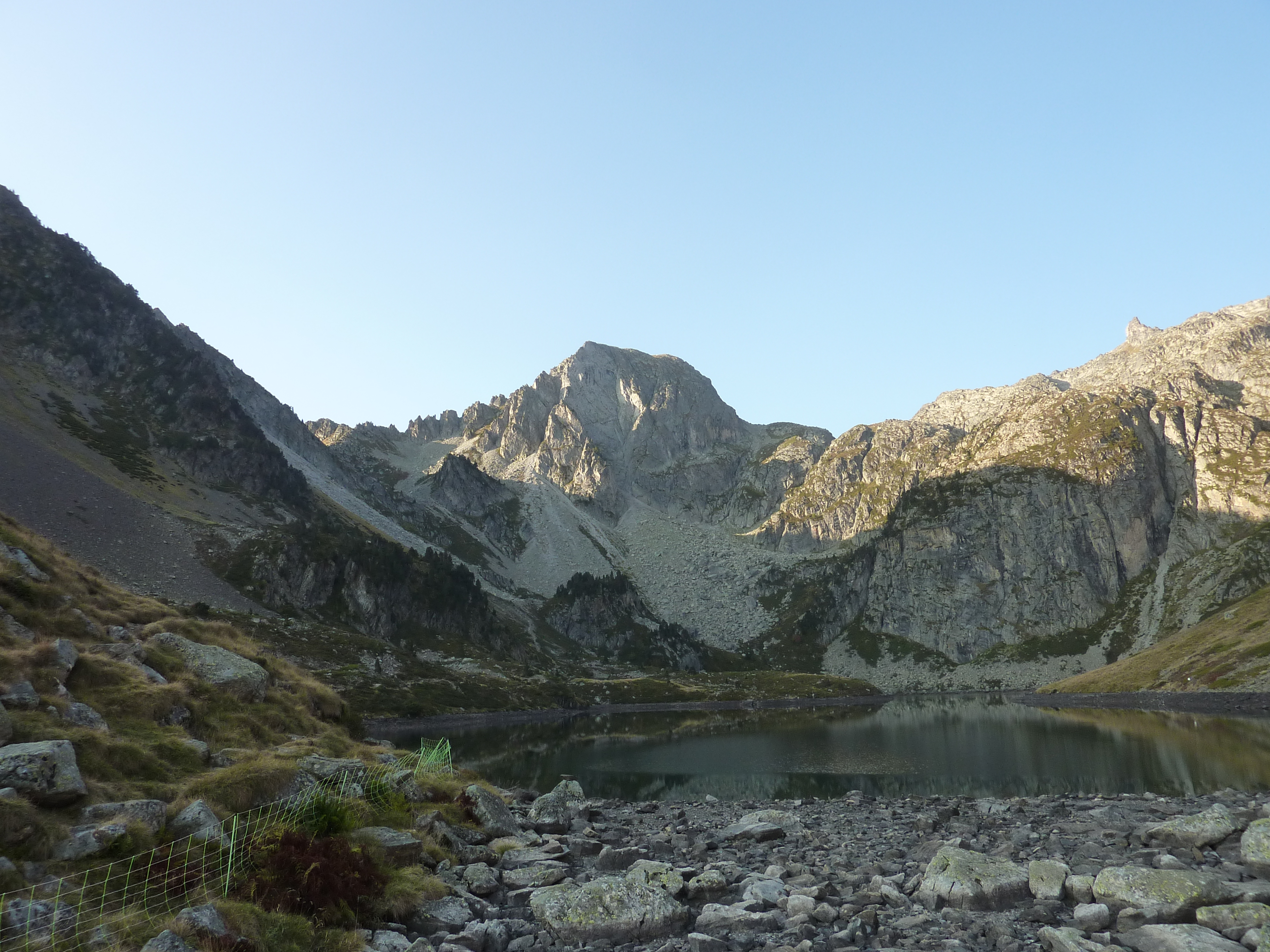 Vue sur le Pic de Nets dominant la partie orientale du Lac d'Ilhéou