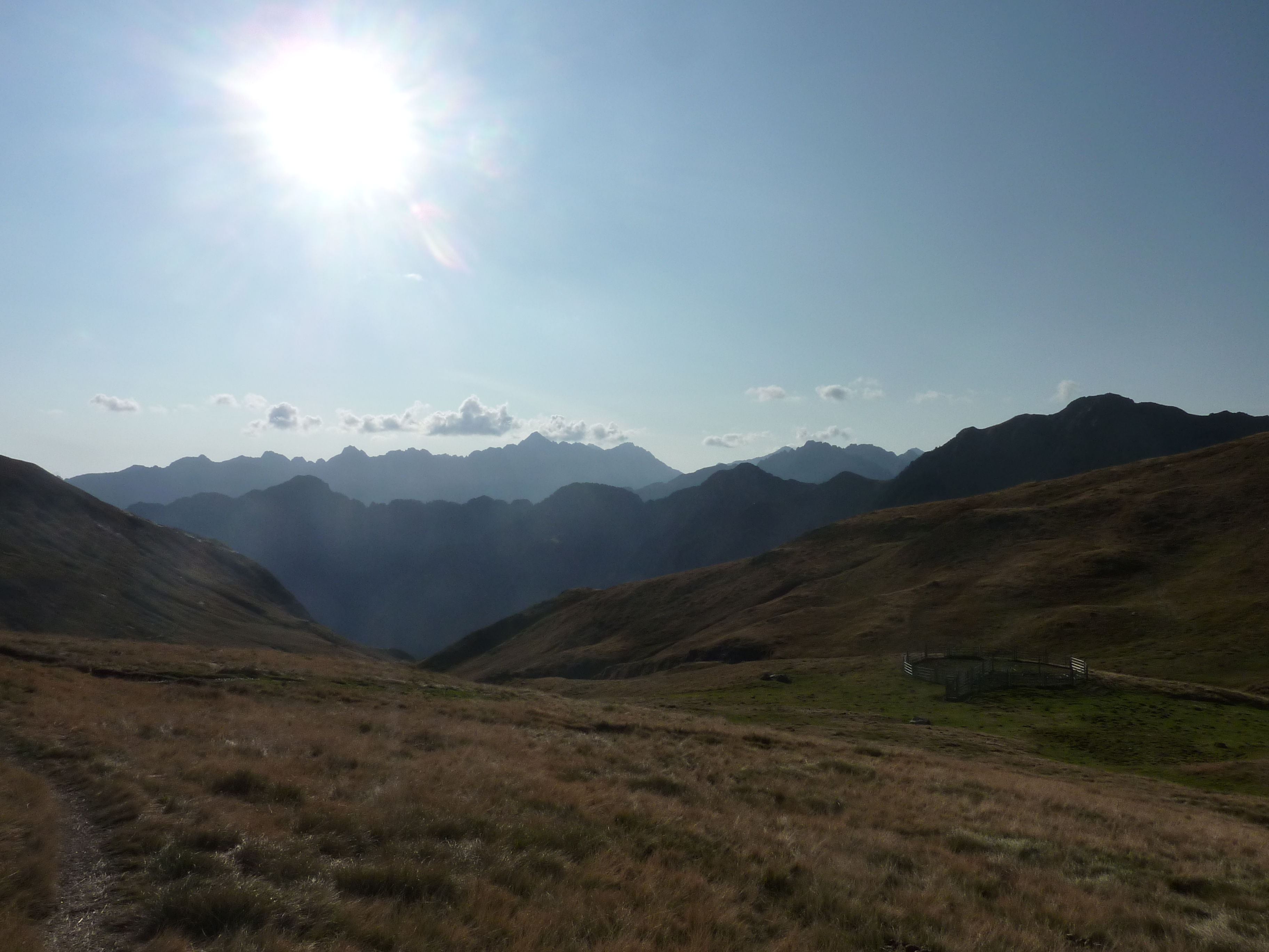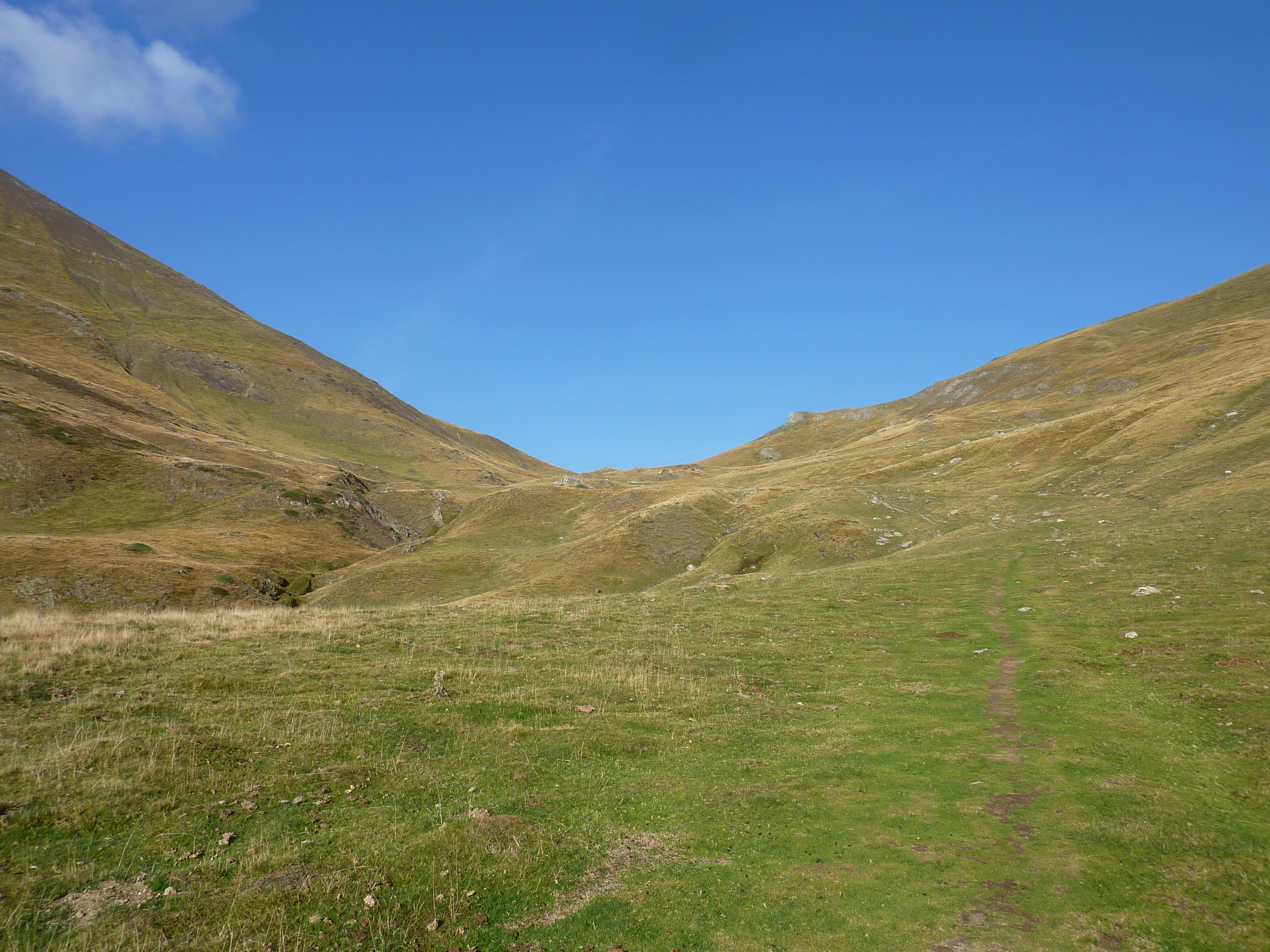 Col d'Ilhéou (2245 m) : monter à vue sur la droite et rejoindre le fil de la Crête de Mourtara direction Soum de Grum, aucun balisage dorénavant