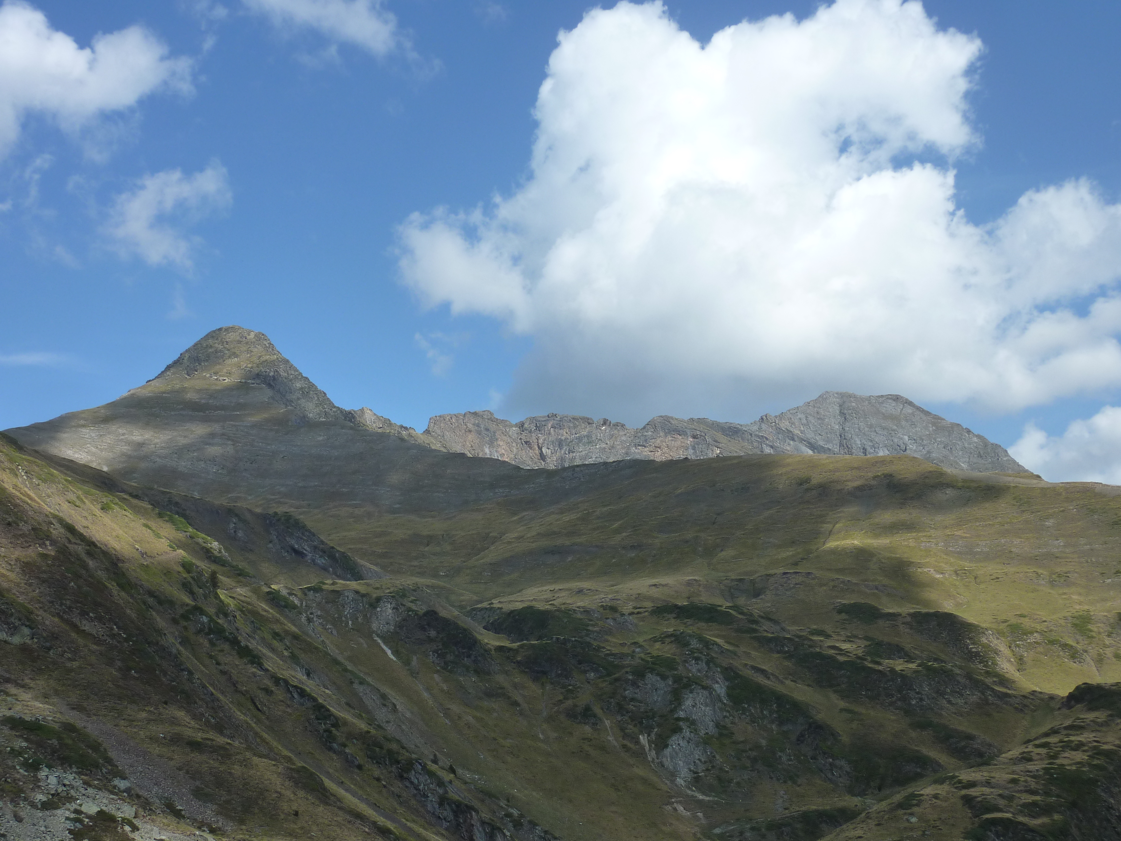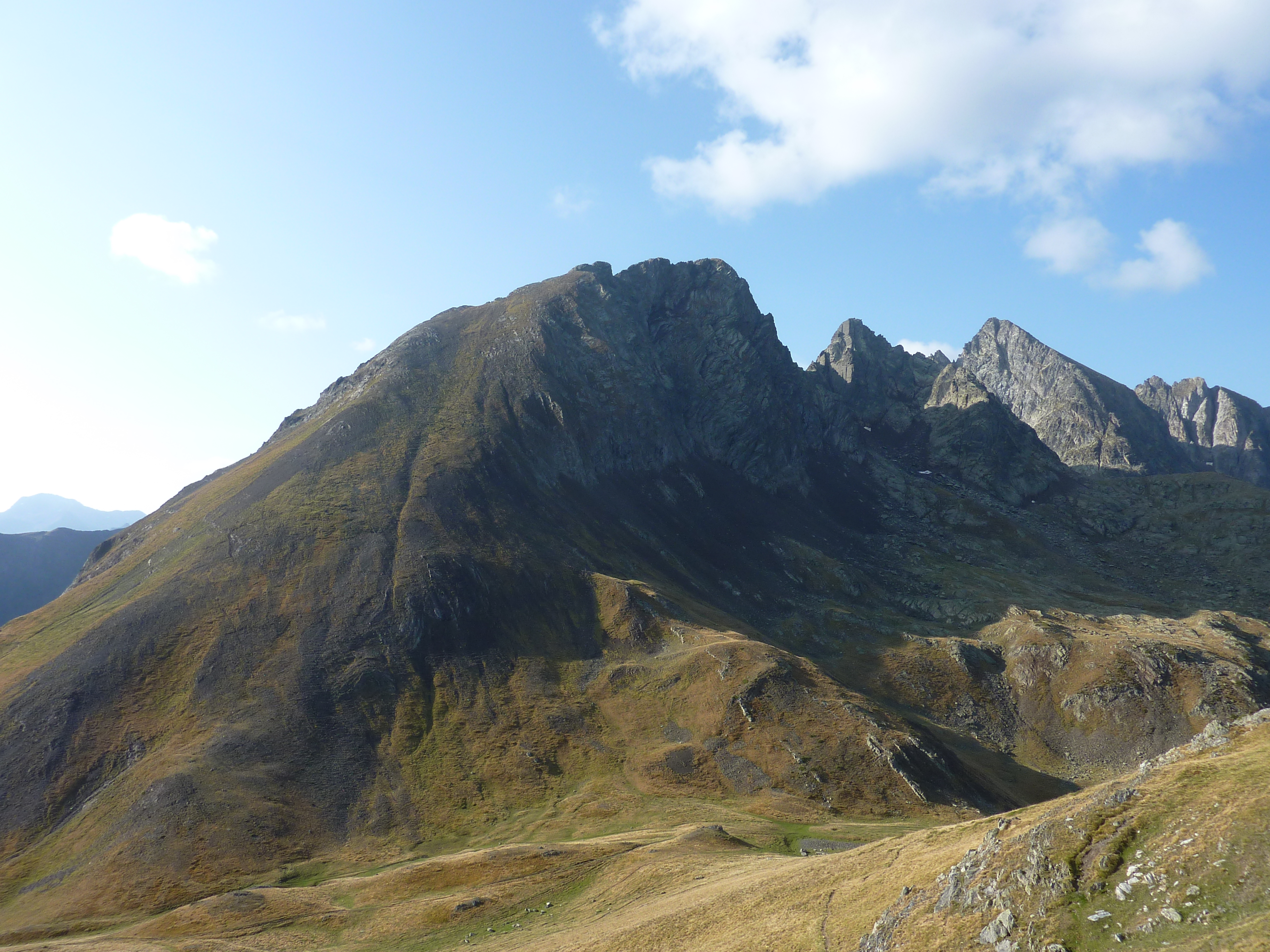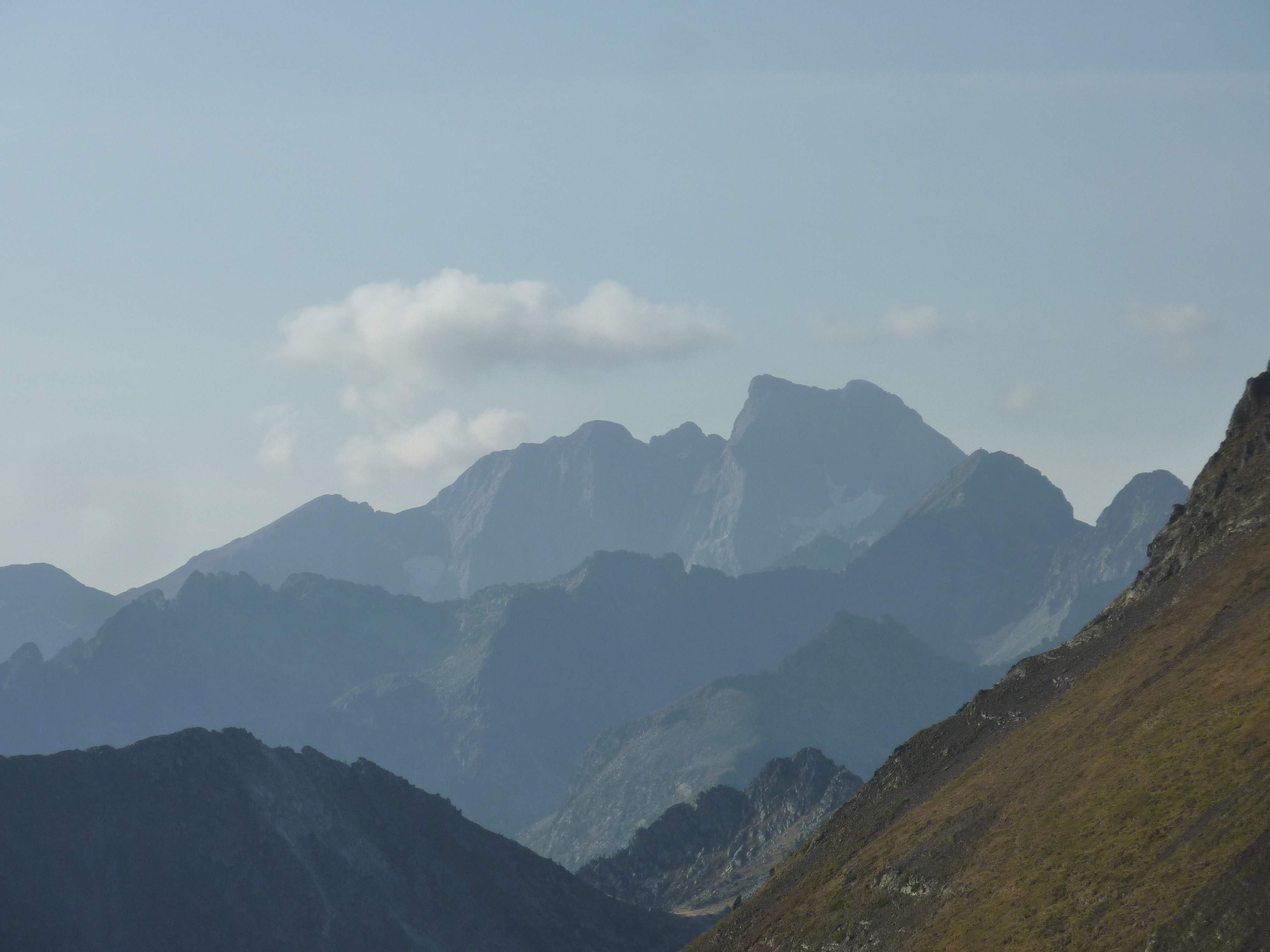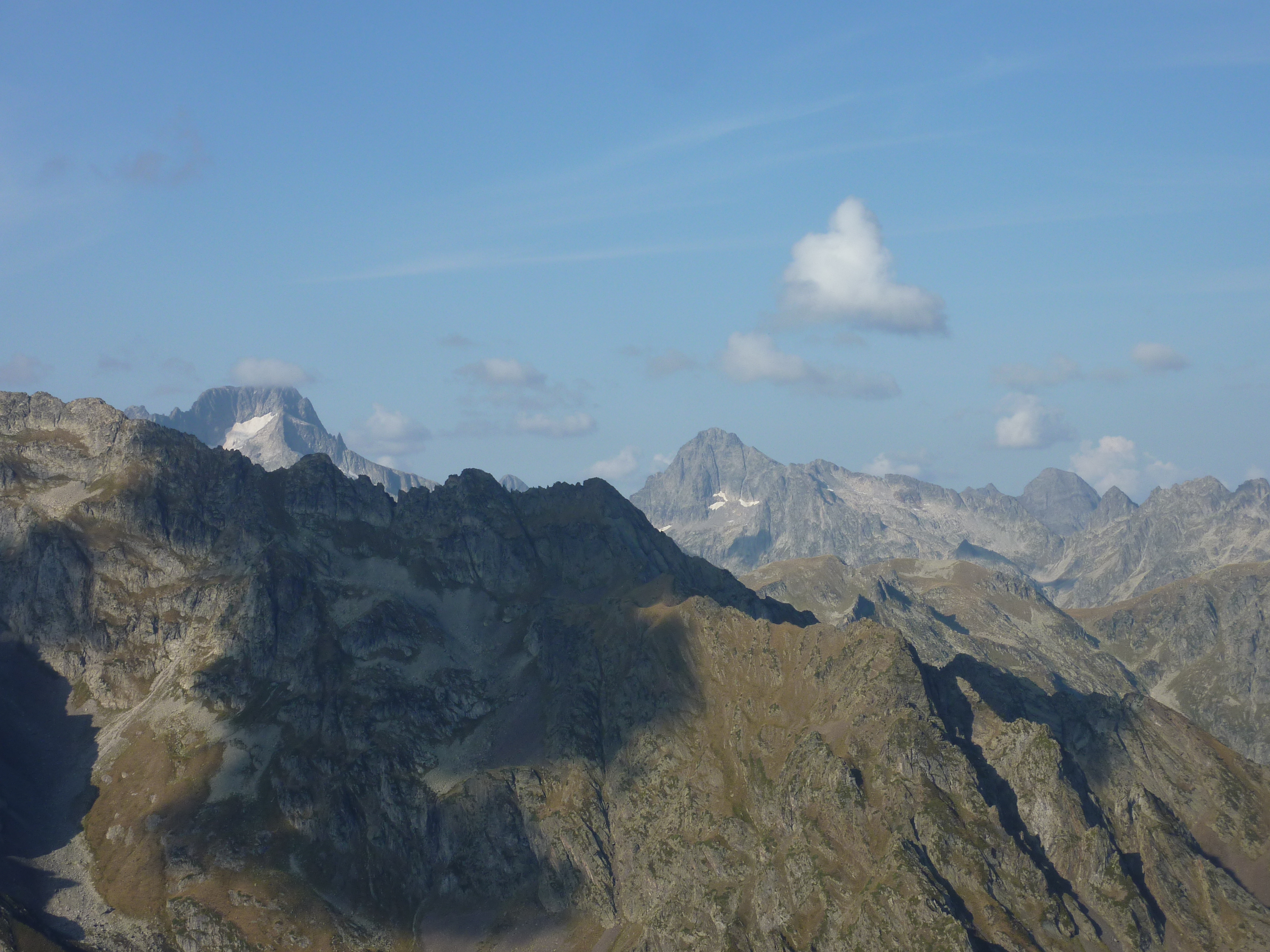 Zoom sur les géants du secteur, le Balaïtous à gauche, le Palas au centre et le Lurien à droite