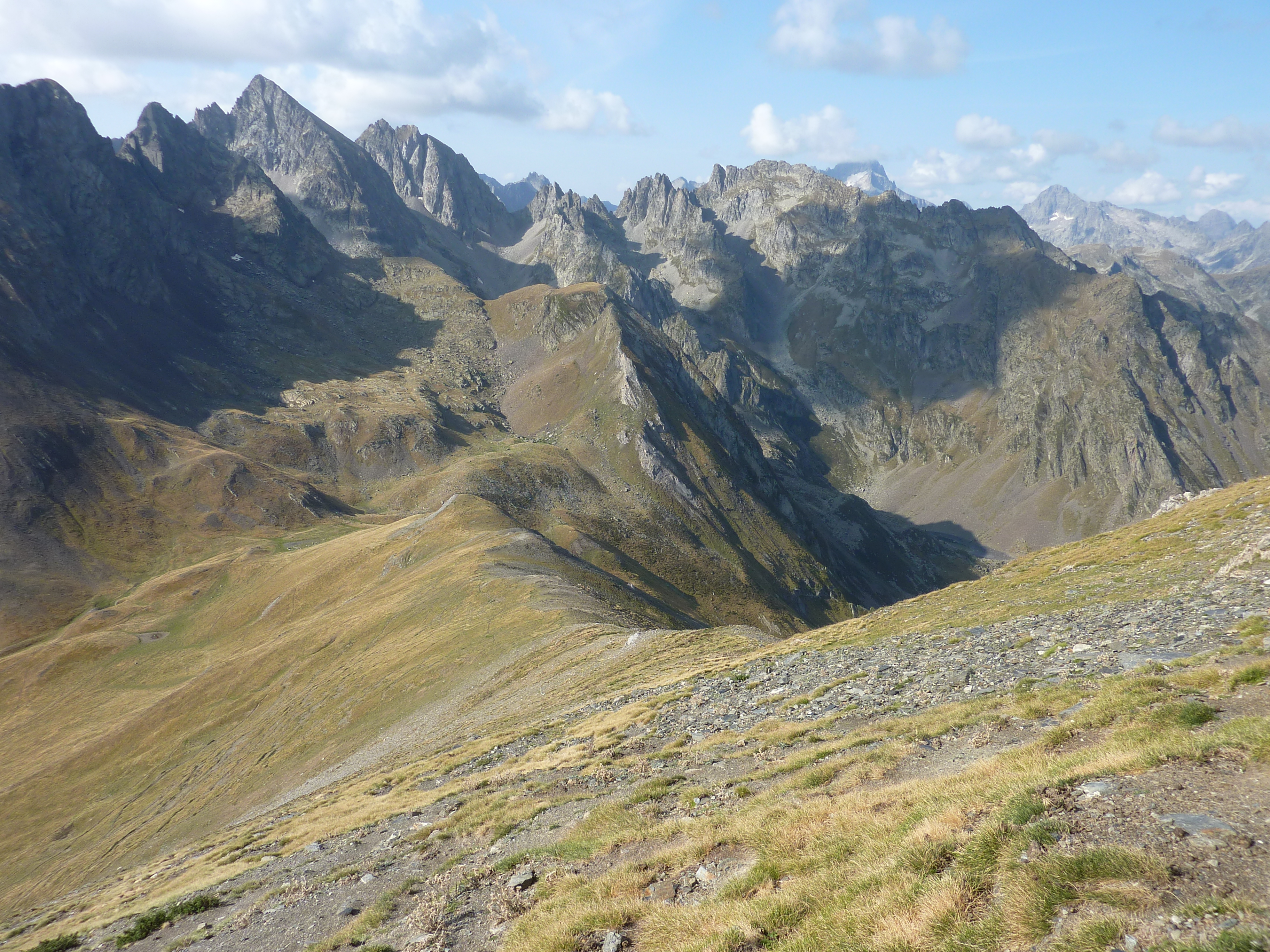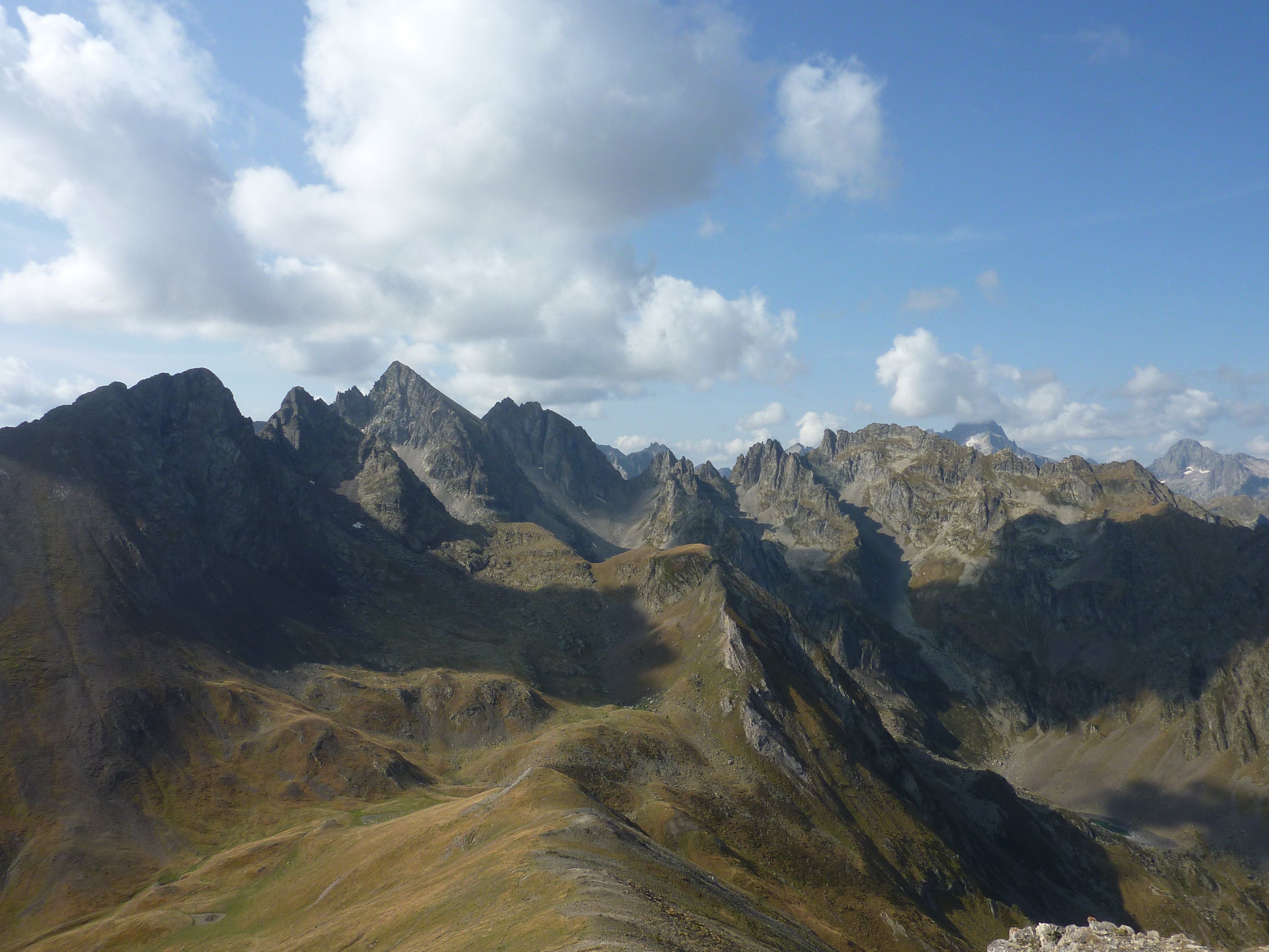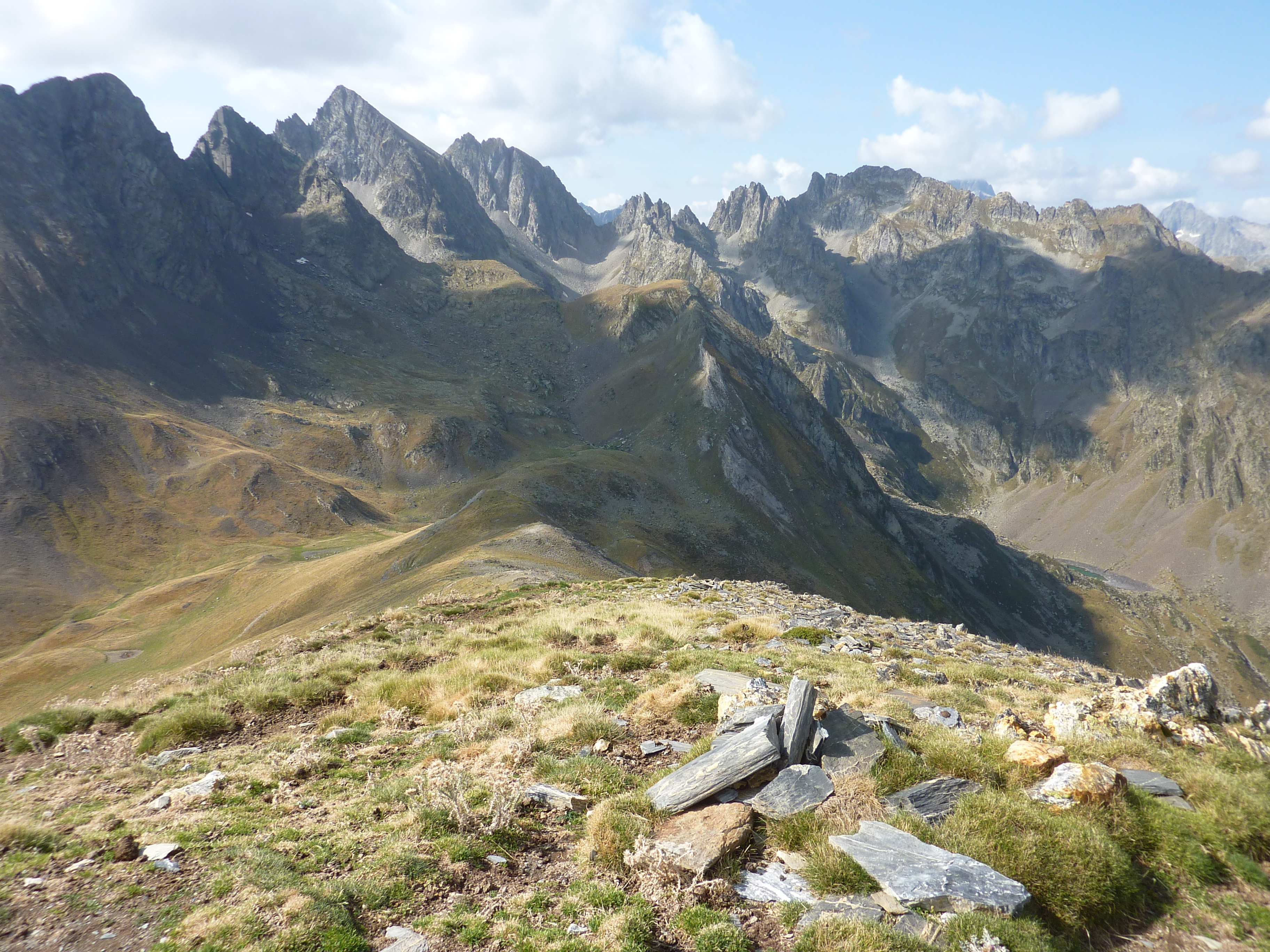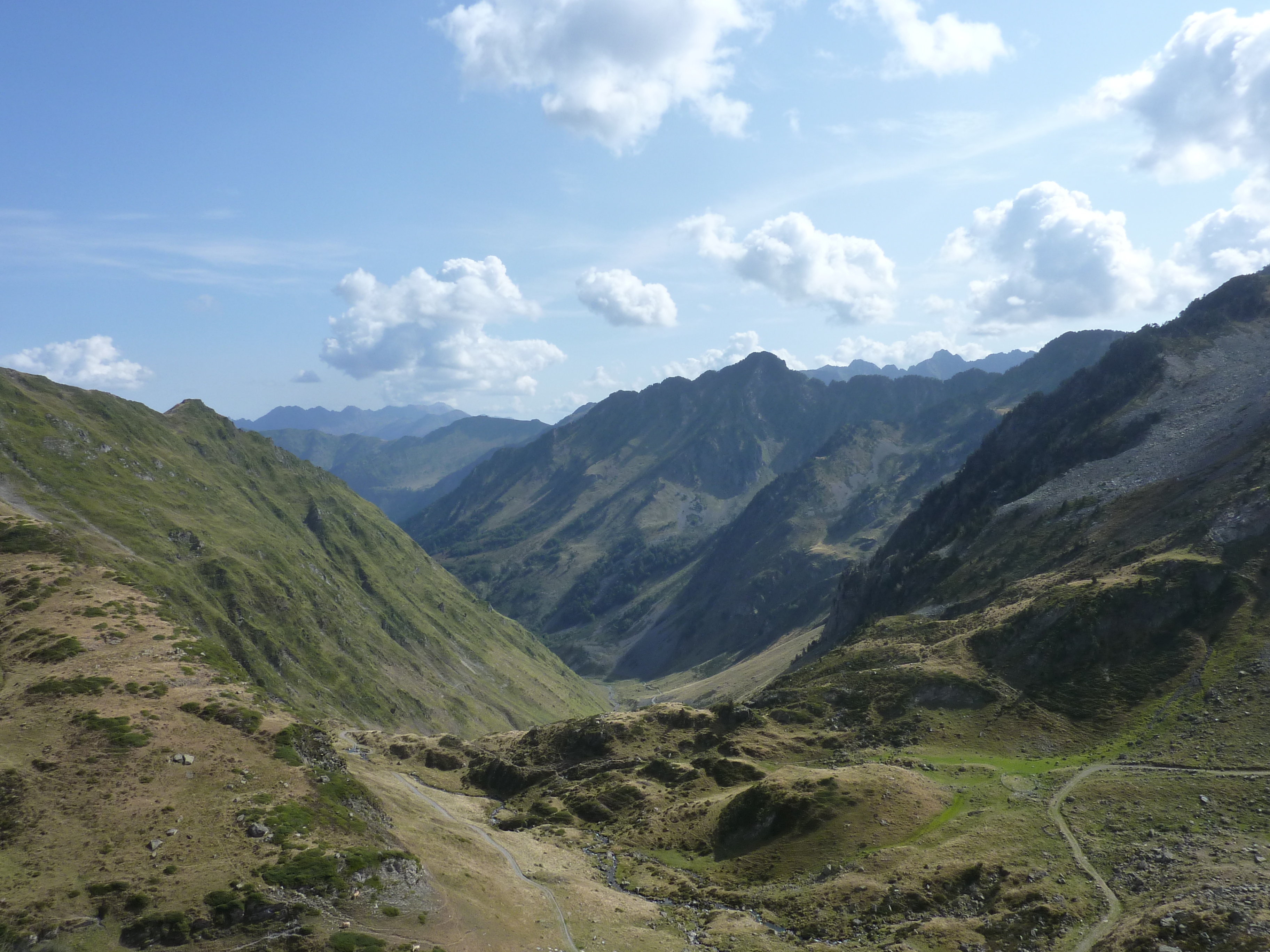Vue arrière sur les sommets de la Vallée du Lutour avec le Pic d'Ardidien au centre