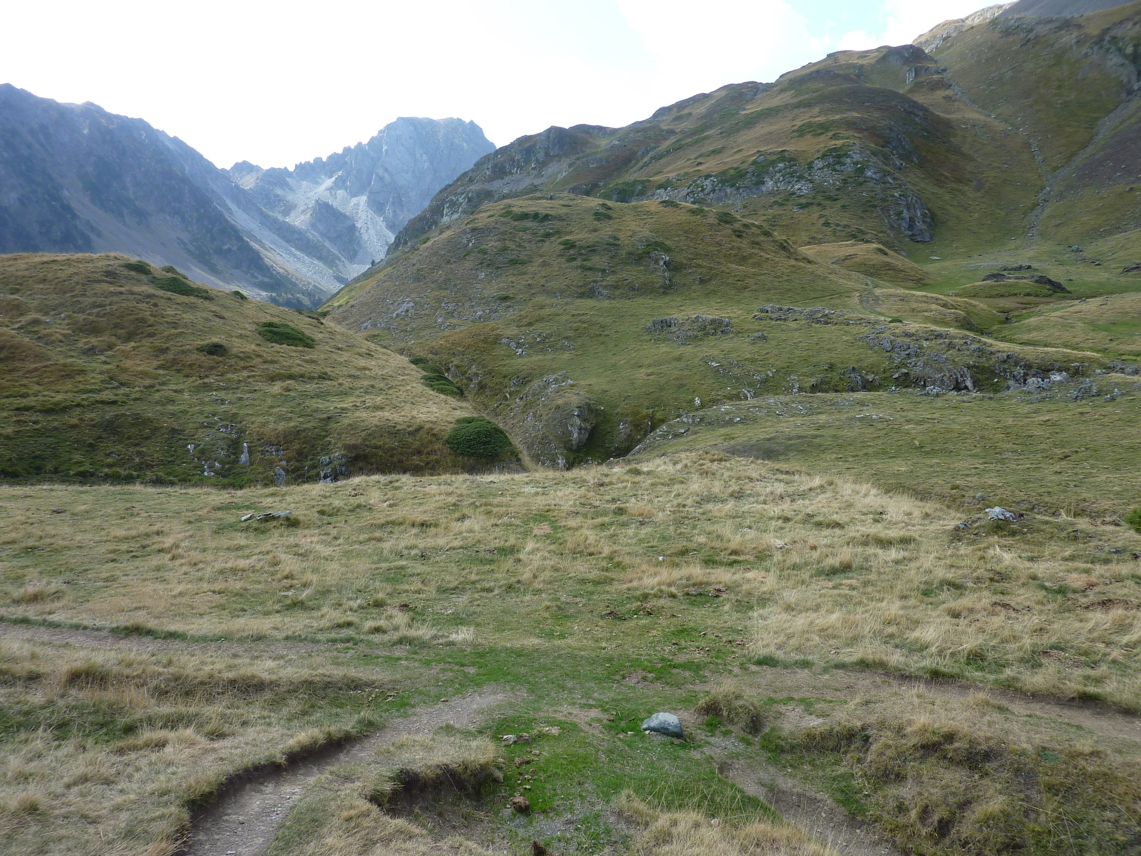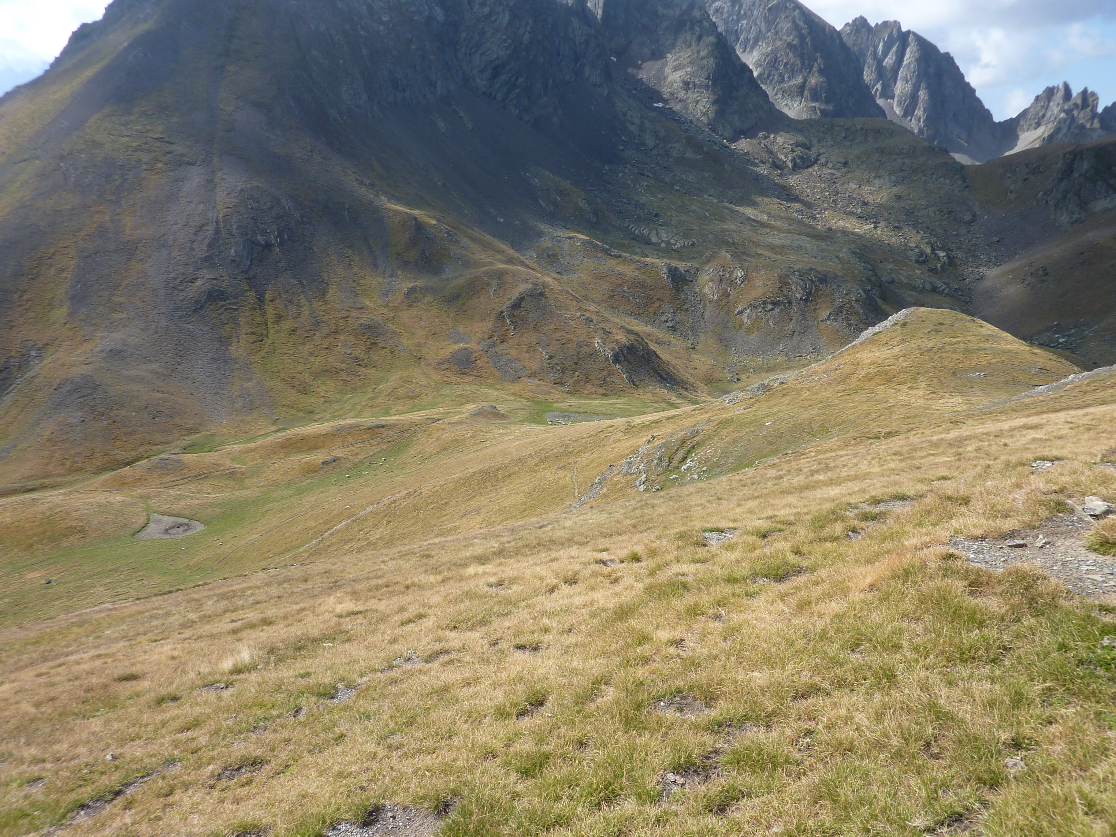 Si on poursuit un peu plus sur ce chemin, il a l'air d'être assez bien tracé et passerait à priori sous les barres rocheuses mais atteint-il la crête Ouest du Soum de Grum ? Pour information, c'est ce chemin que je devais prendre pour monter au sommet que je n'ai aperçu qu'au retour ... A tenter lors d'un prochaine randonnée dans le coin !