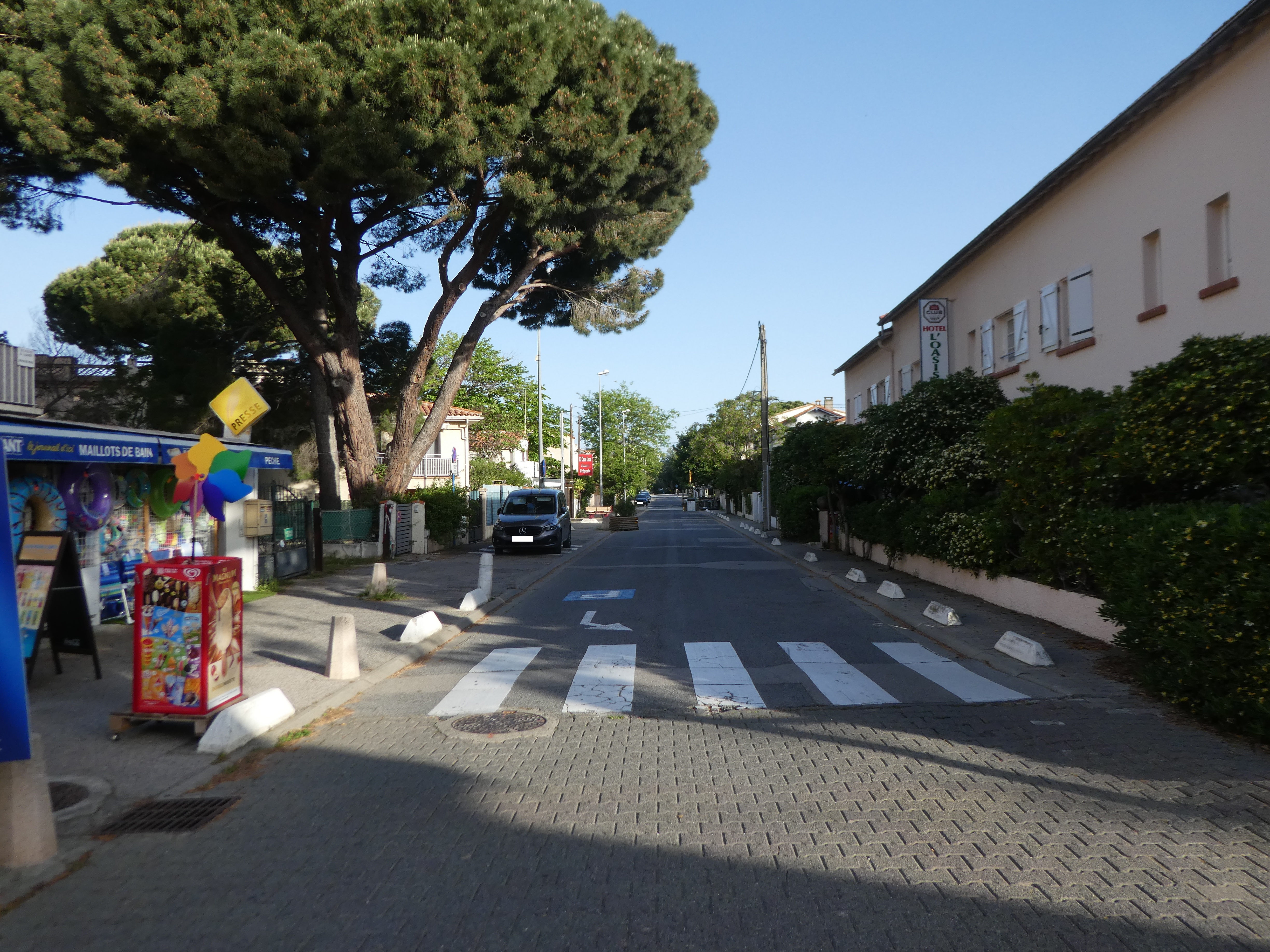 A ce croisement situé au bout de la Rue du Mirador (100 mètres après le précédent), suivre la rue partant légèrement sur la gauche (Avenue du Mirador) direction le Racou