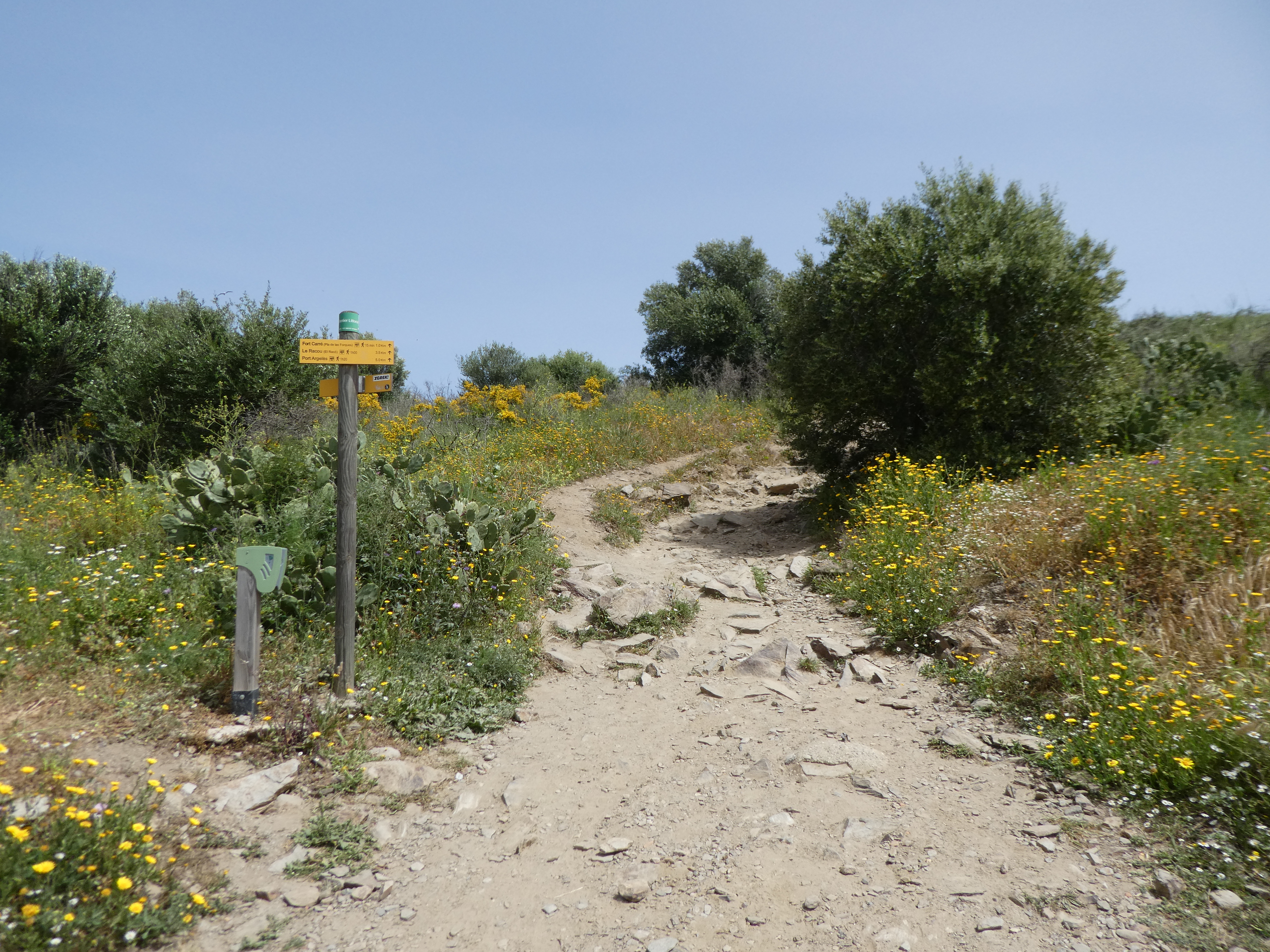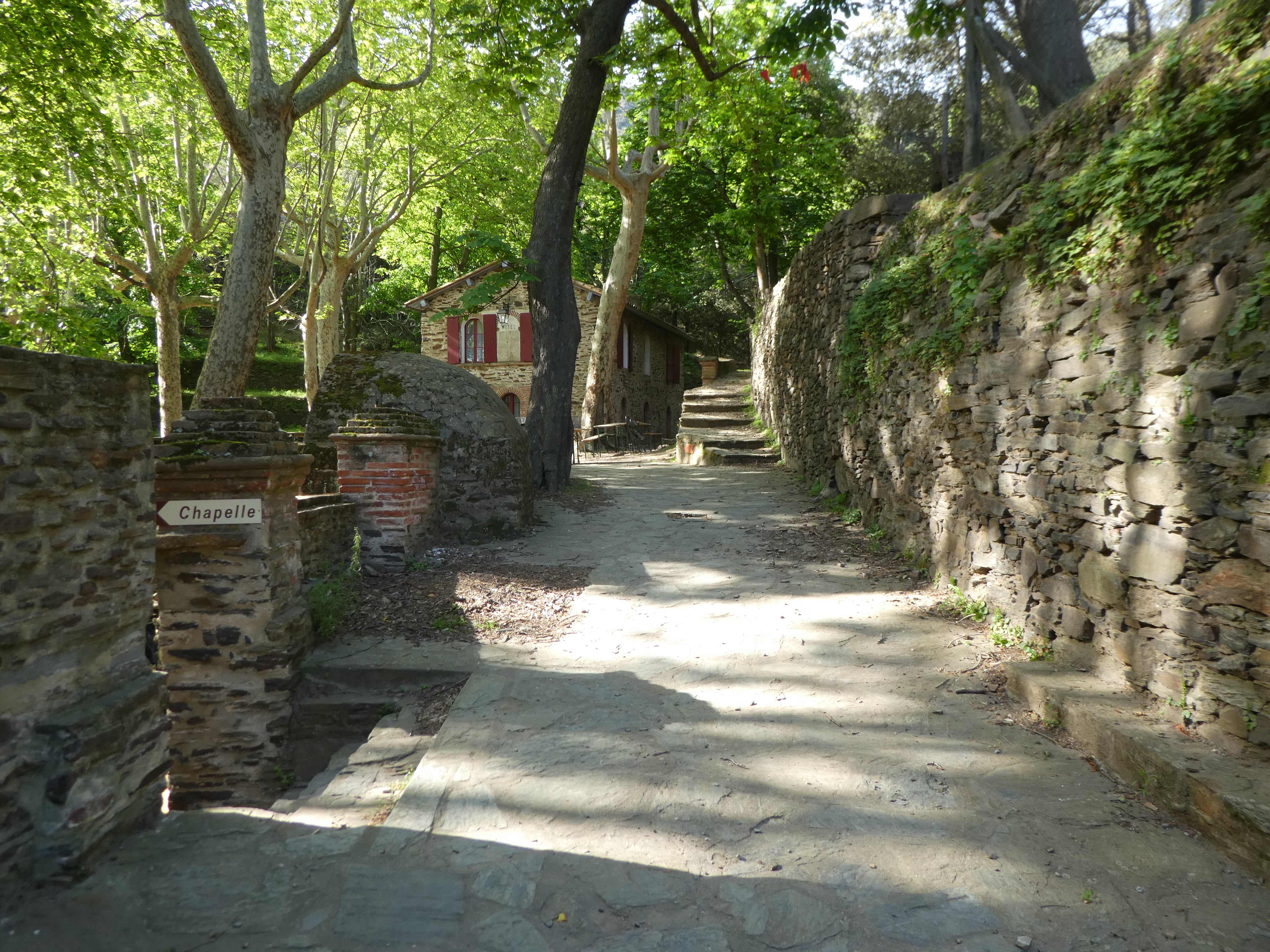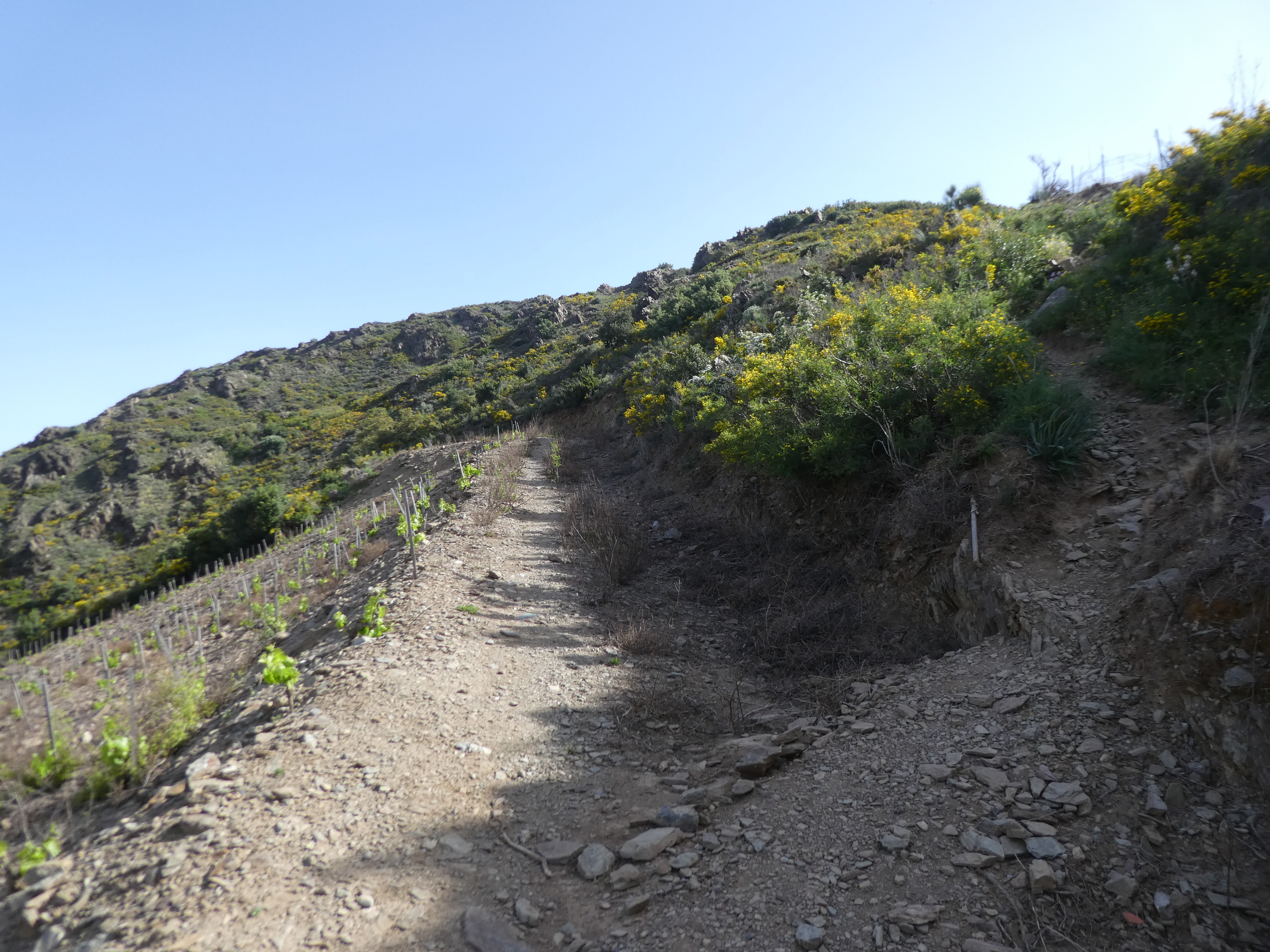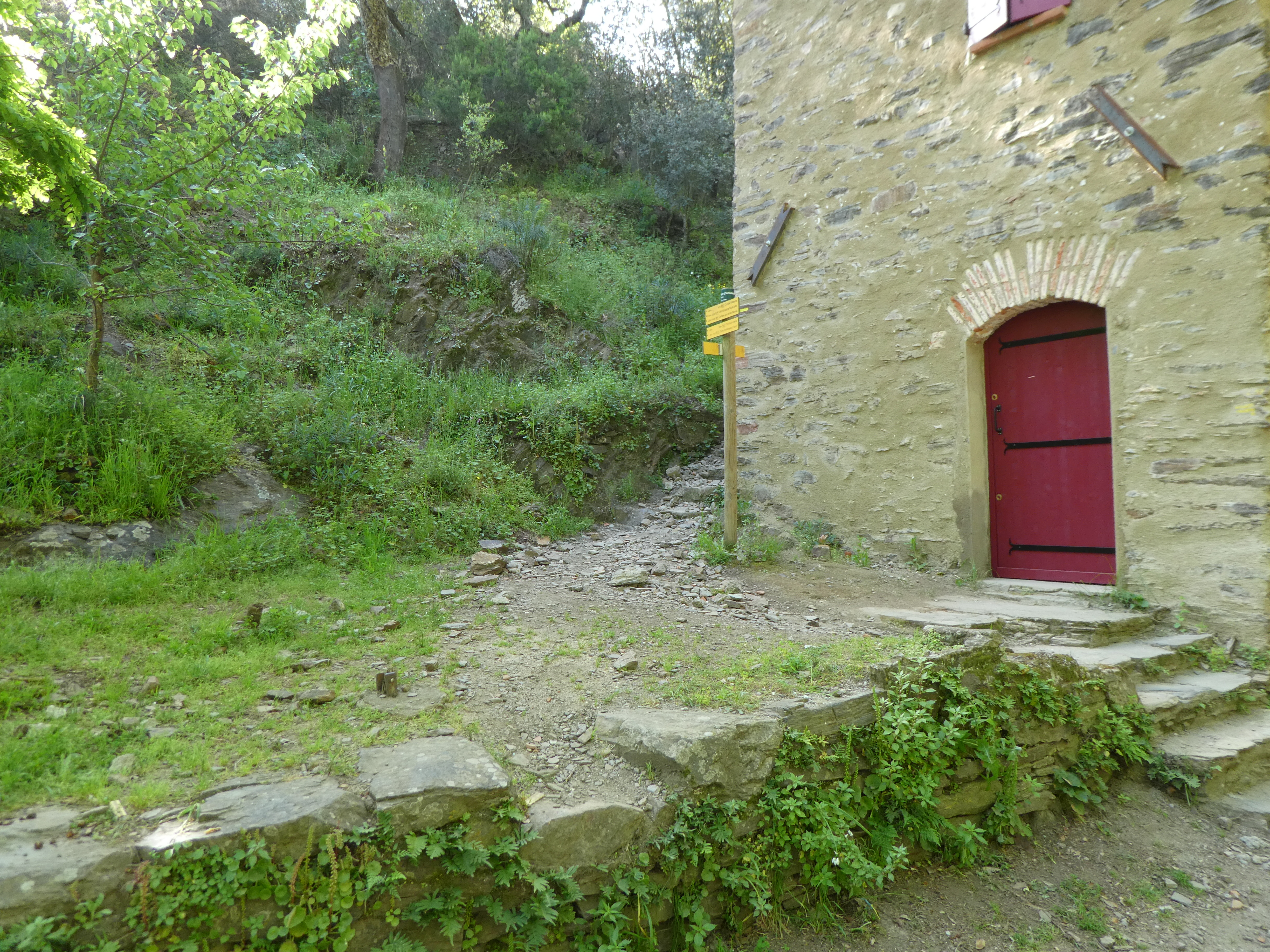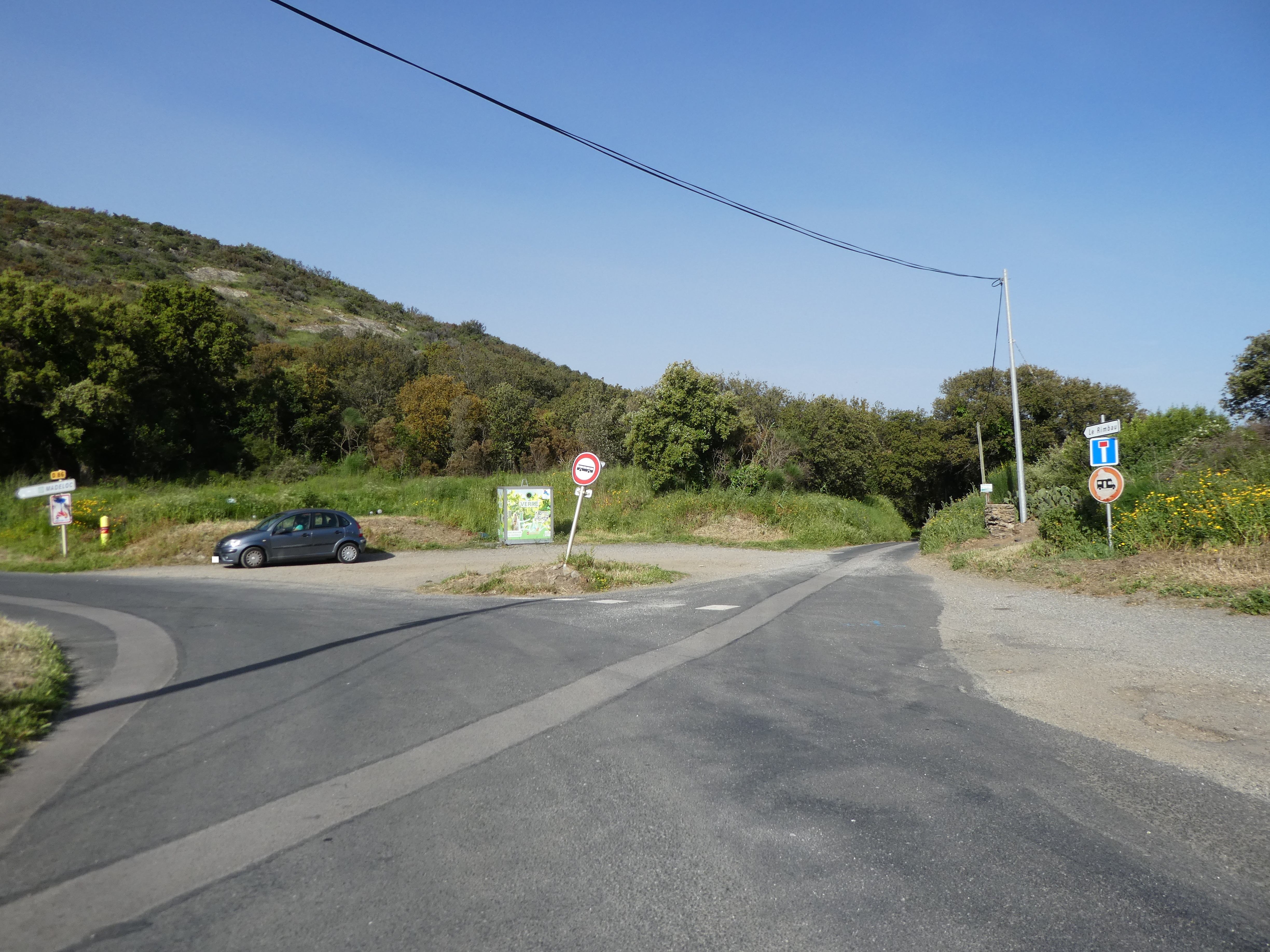 La Moresca (27 m) : suivre la route partant tout droit direction Collioure, balisé en jaune (direction non mentionnée sur le panneau directionnel)