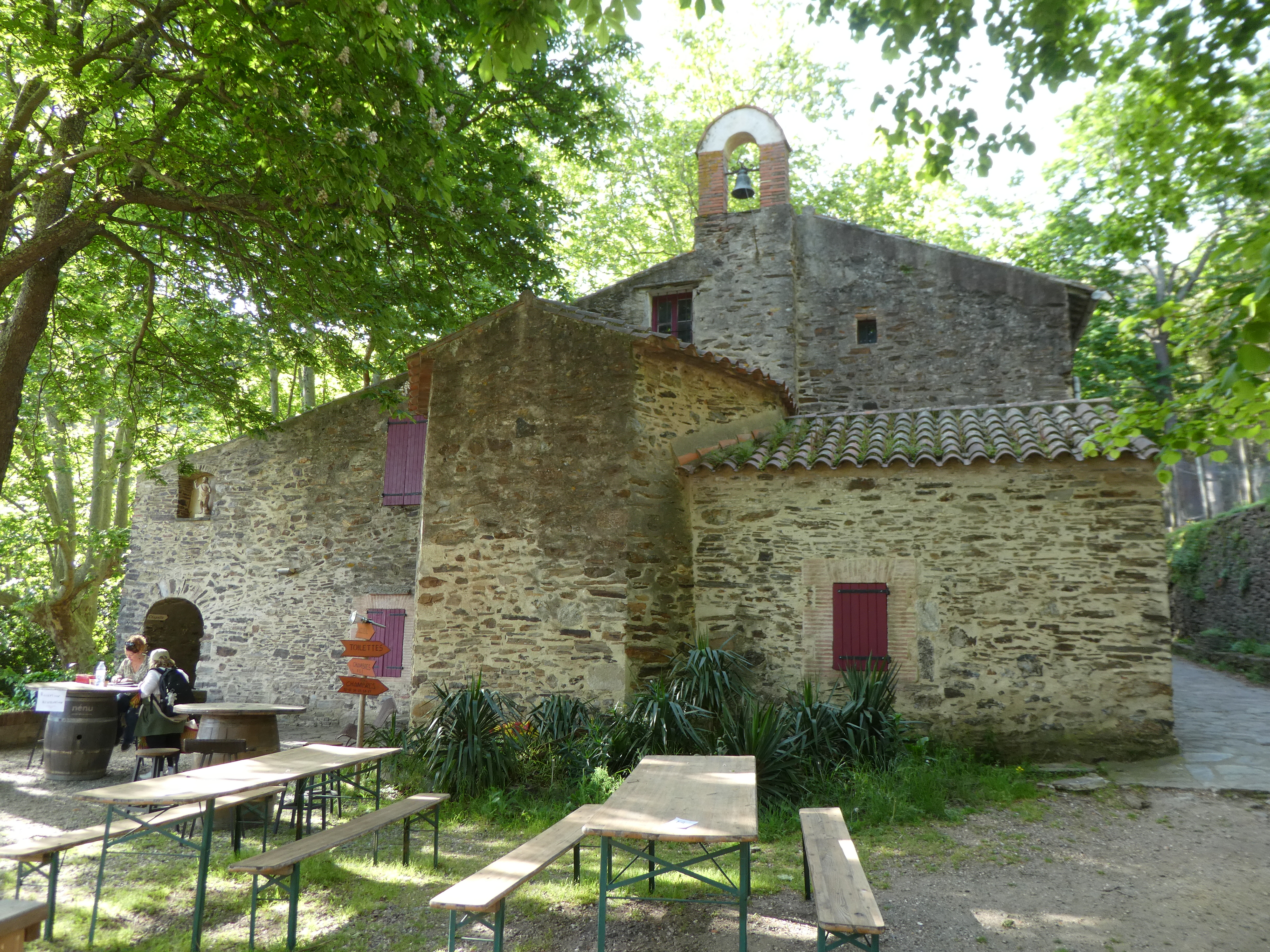 A ce croisement situé à l'entrée de l'Ermitage Notre-Dame-de-Consolation (700 mètres après le Coll d'en Calvó), suivre le chemin partant tout droit dans l'enceinte de l'ermitage direction Notre-Dame-de-Consolation