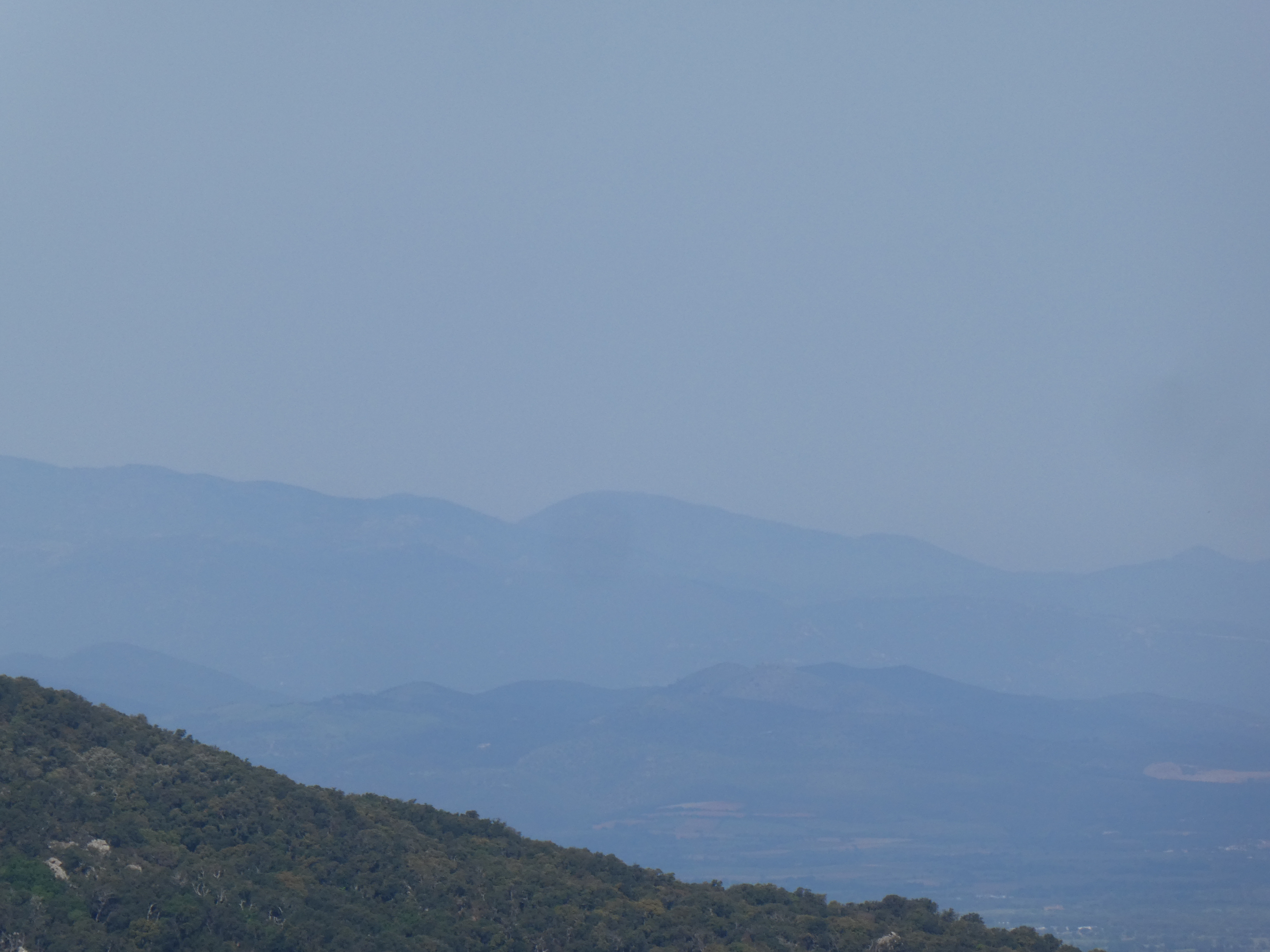 Vue brumeuse en direction des sommets des Pyrénées Audoises et des Corbières