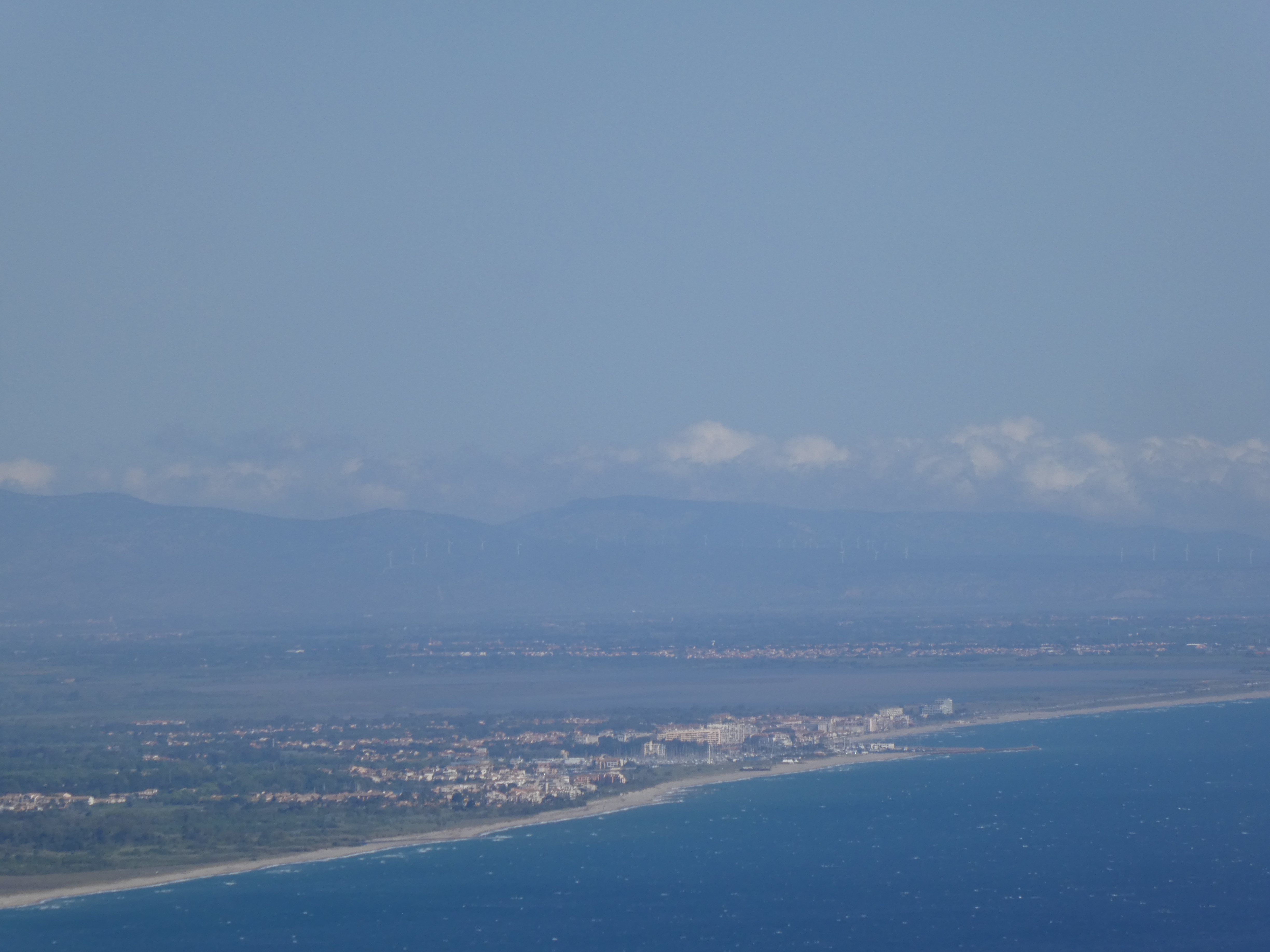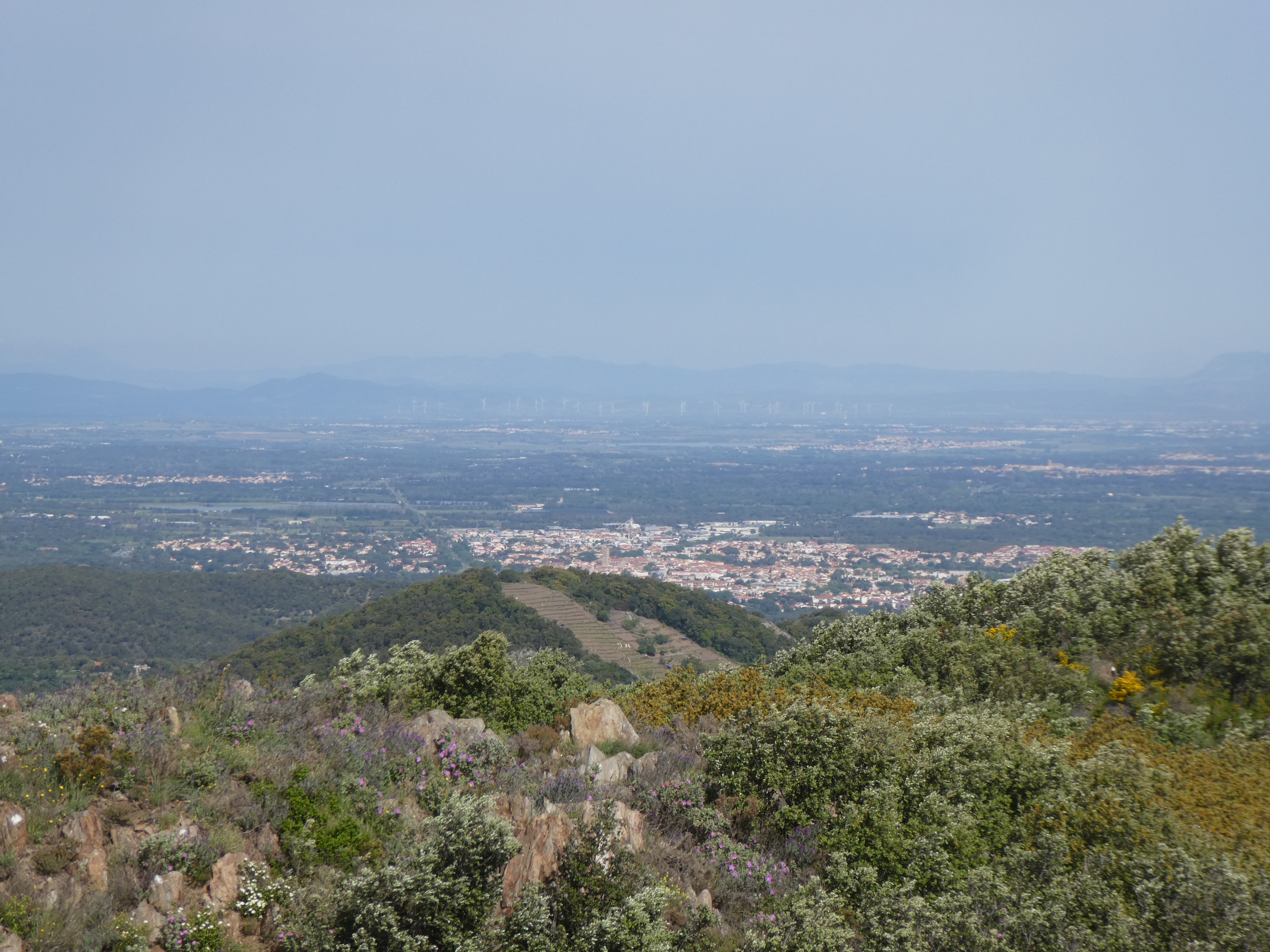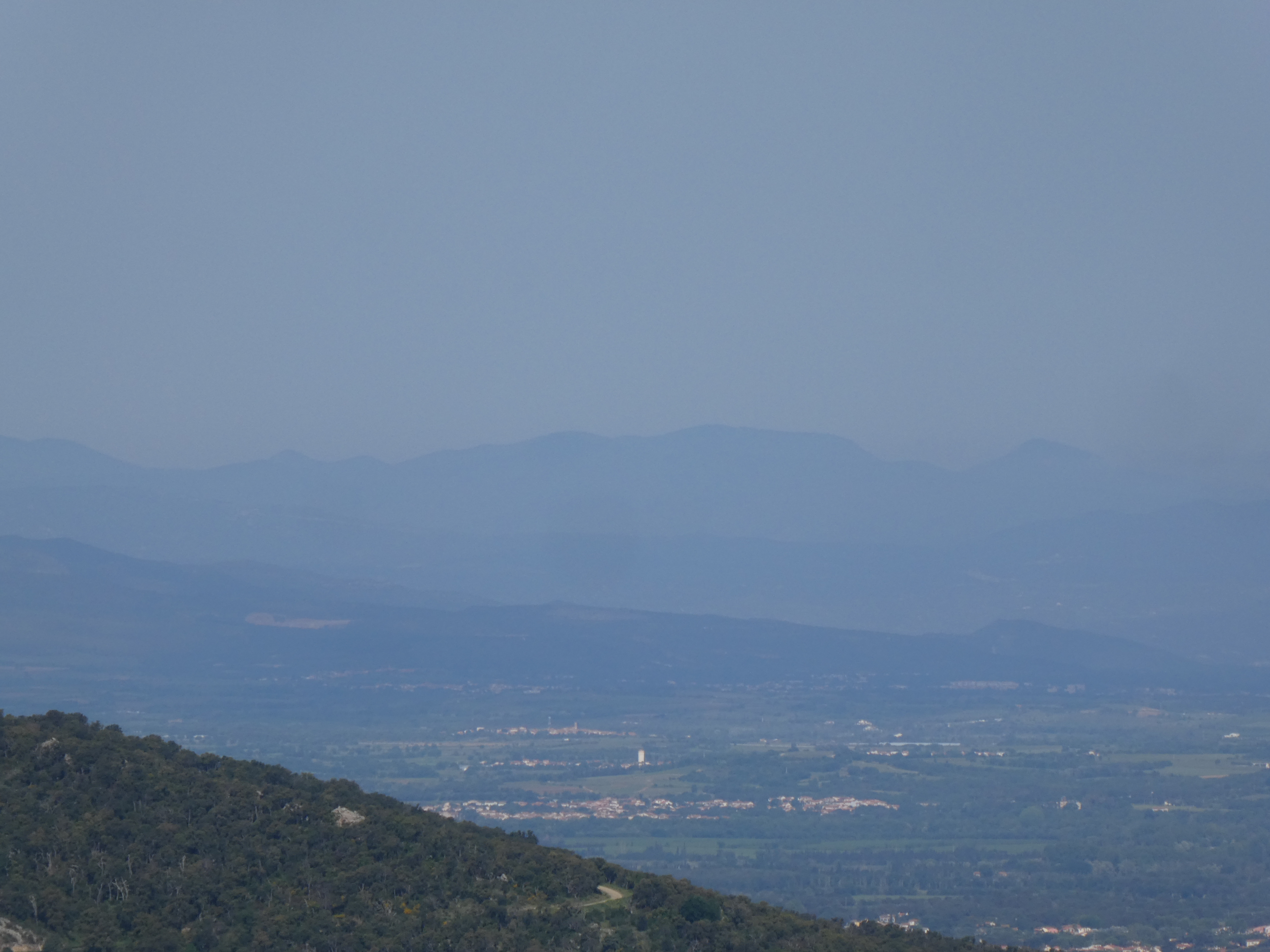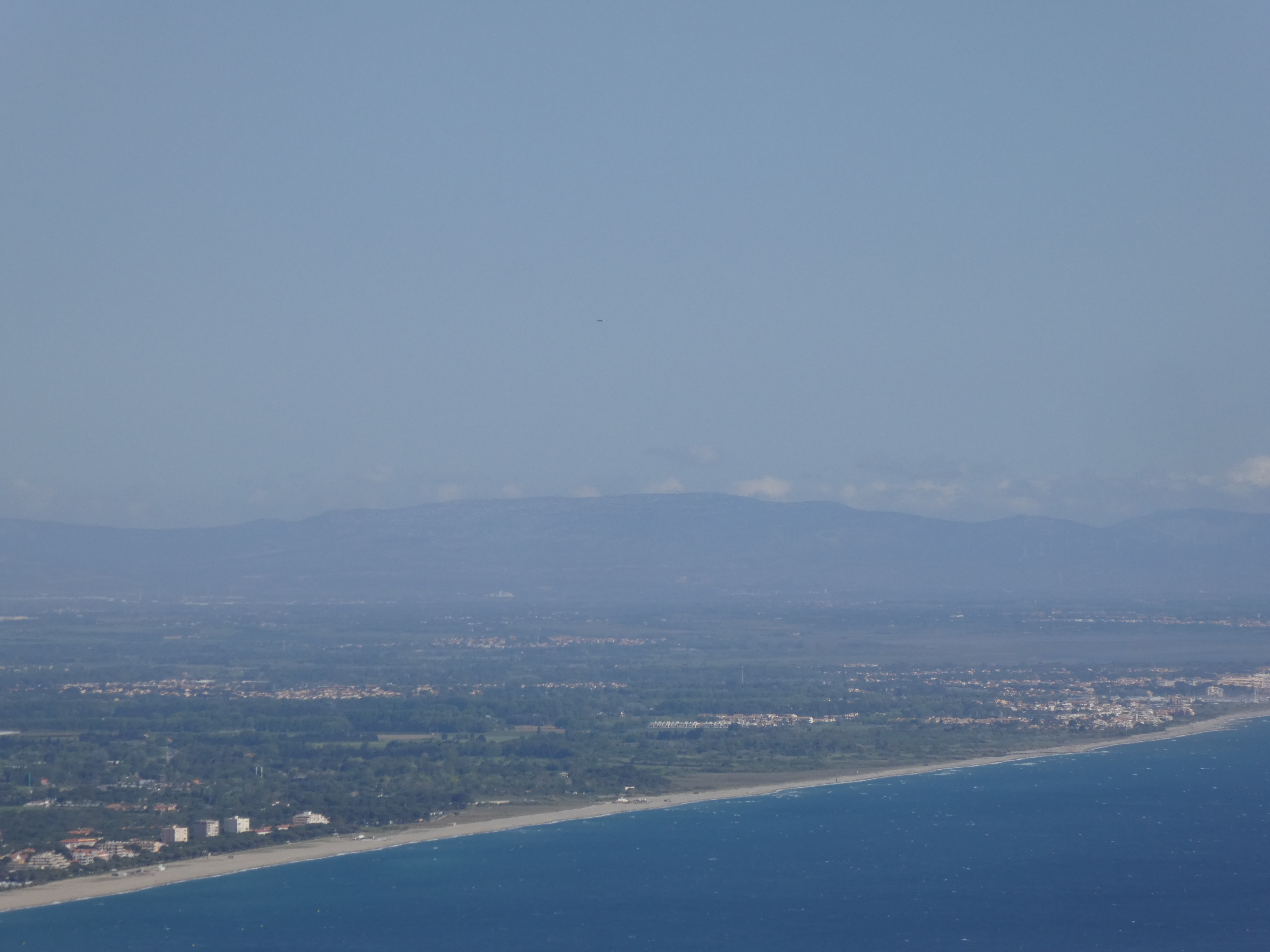 Zoom sur le Pé del Poul (596 m) ... en bas, on aperçoit Canet-en-Roussillon situé à 22 kilomètres