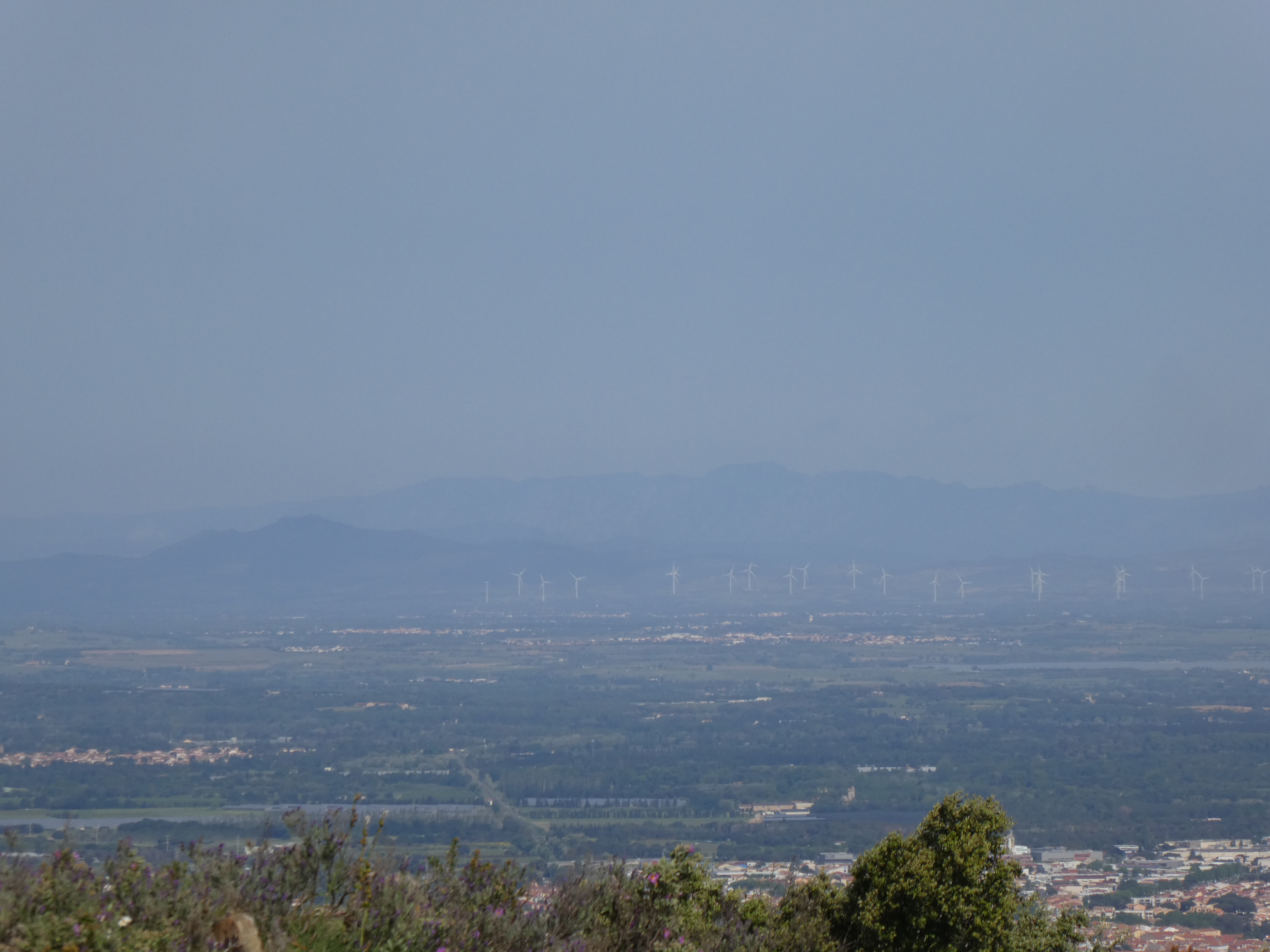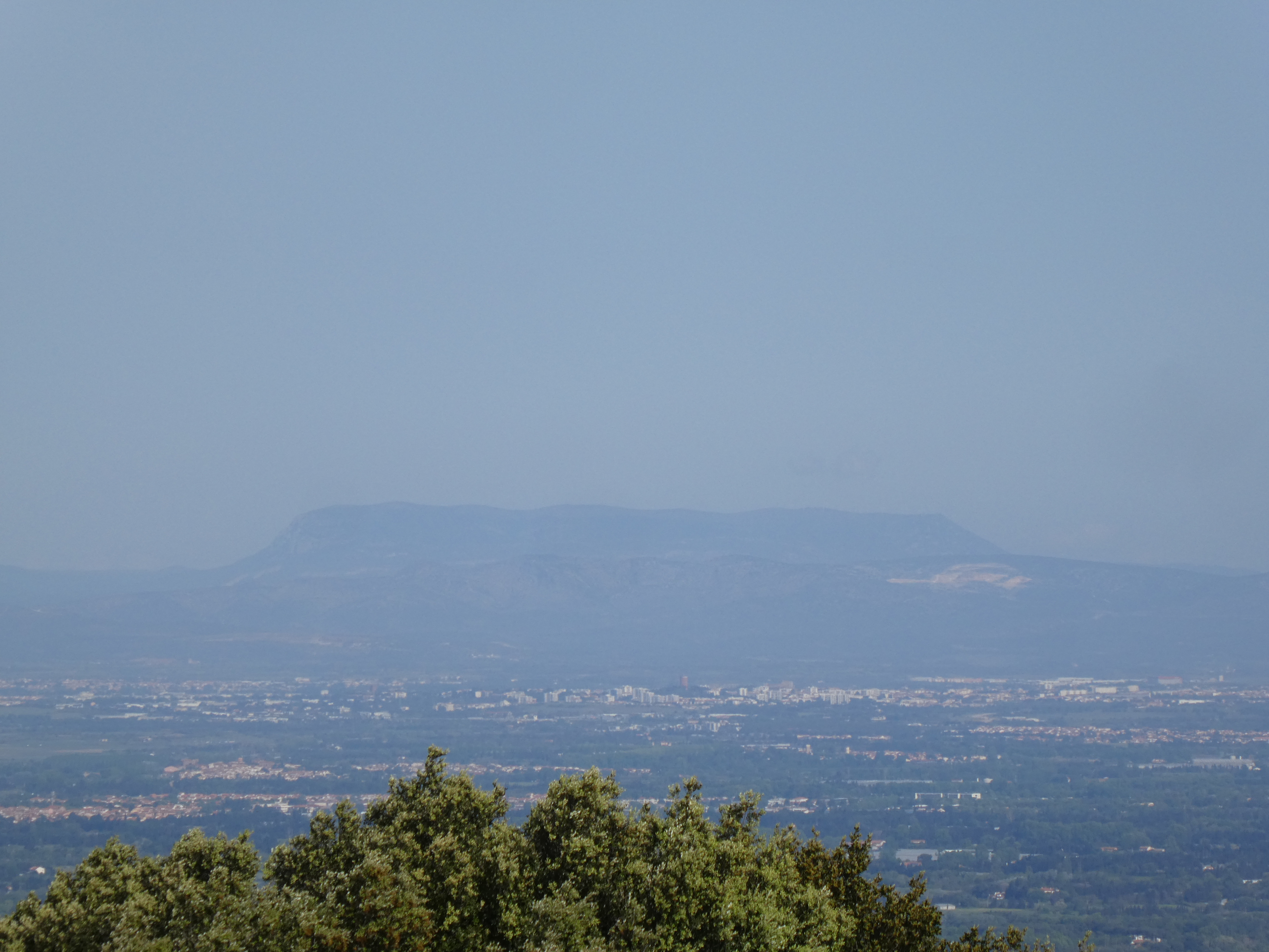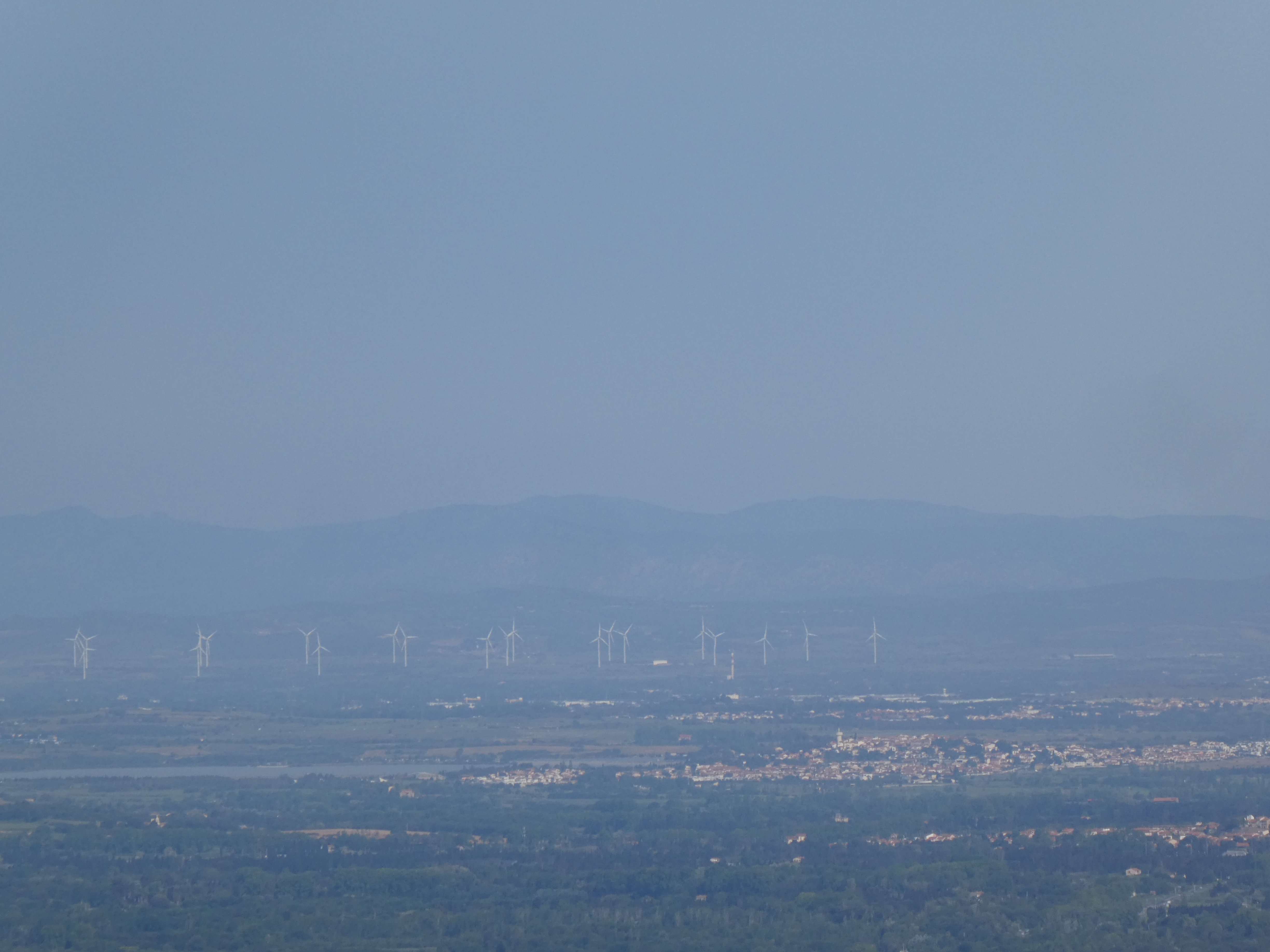 Zoom sur le Pé del Poul (596 m) ... en bas, on aperçoit Canet-en-Roussillon situé à 22 kilomètres
