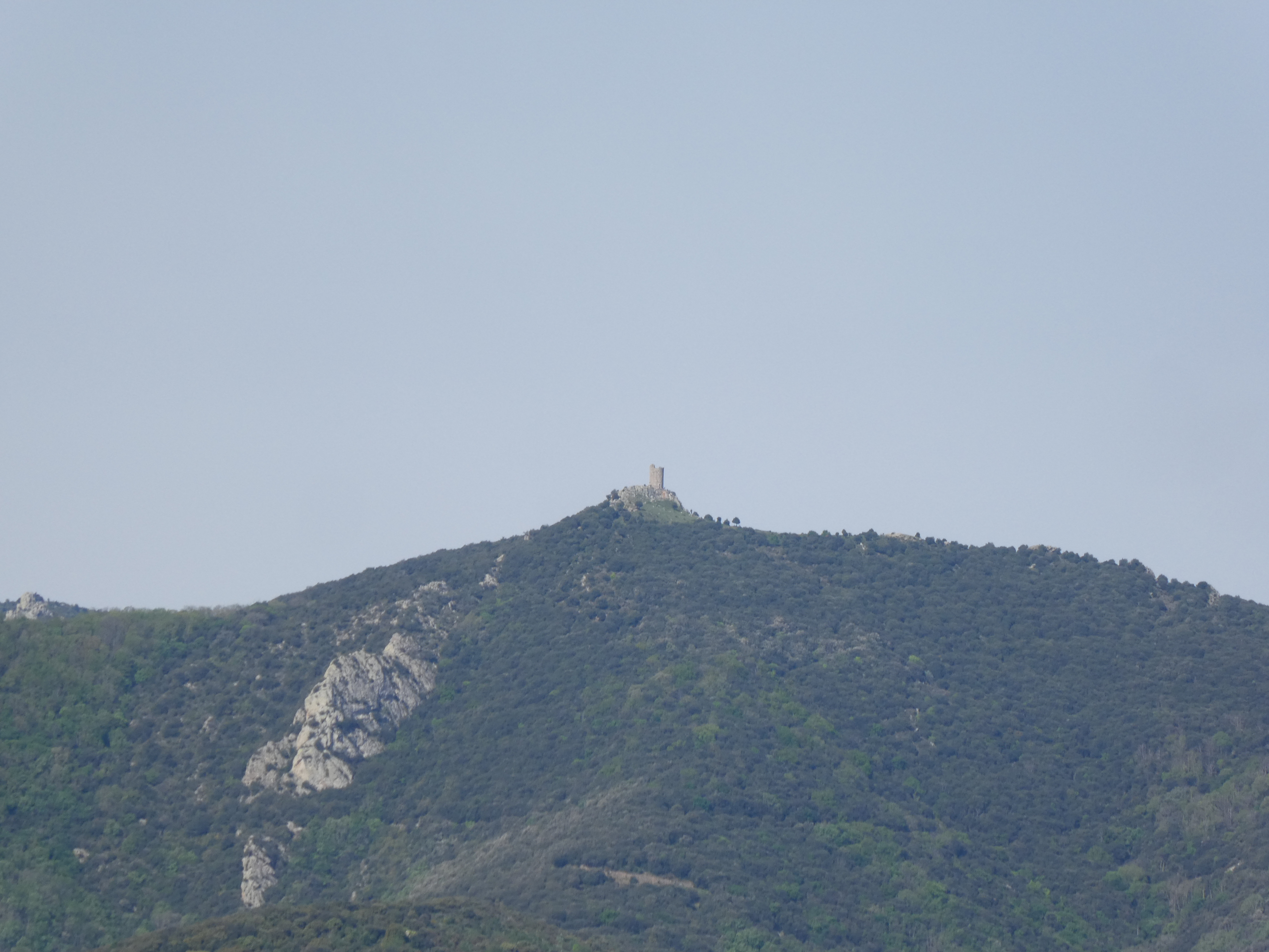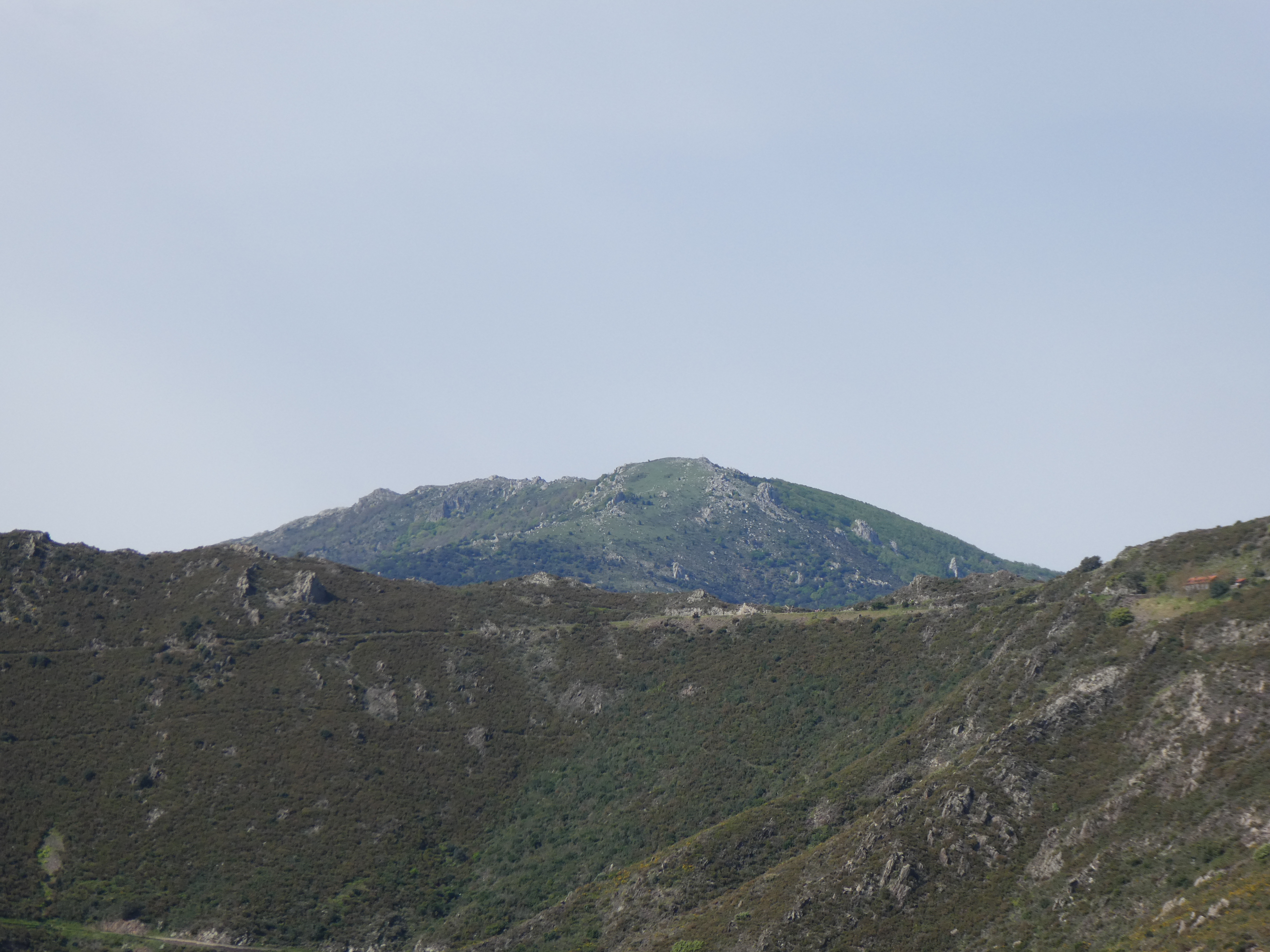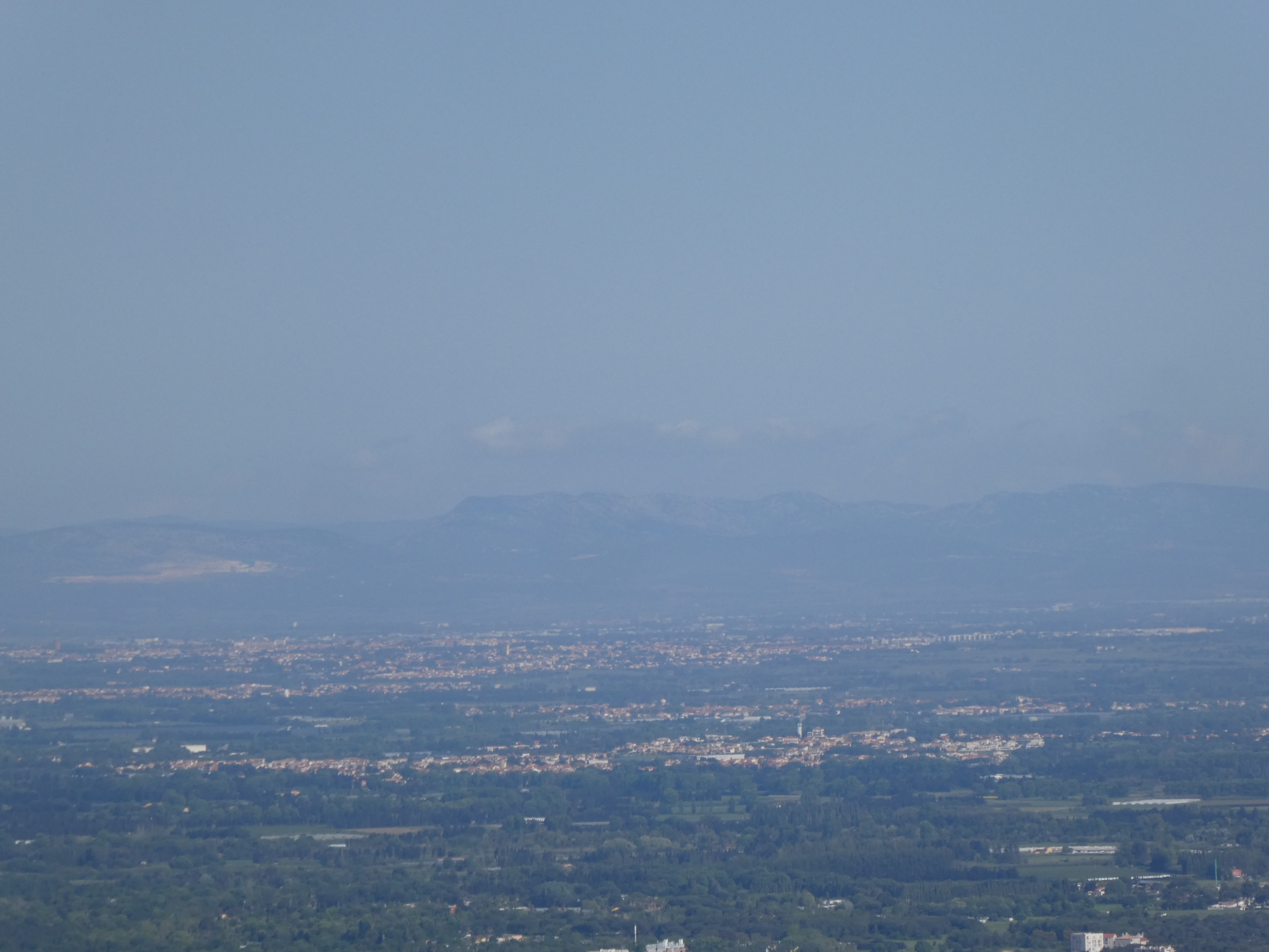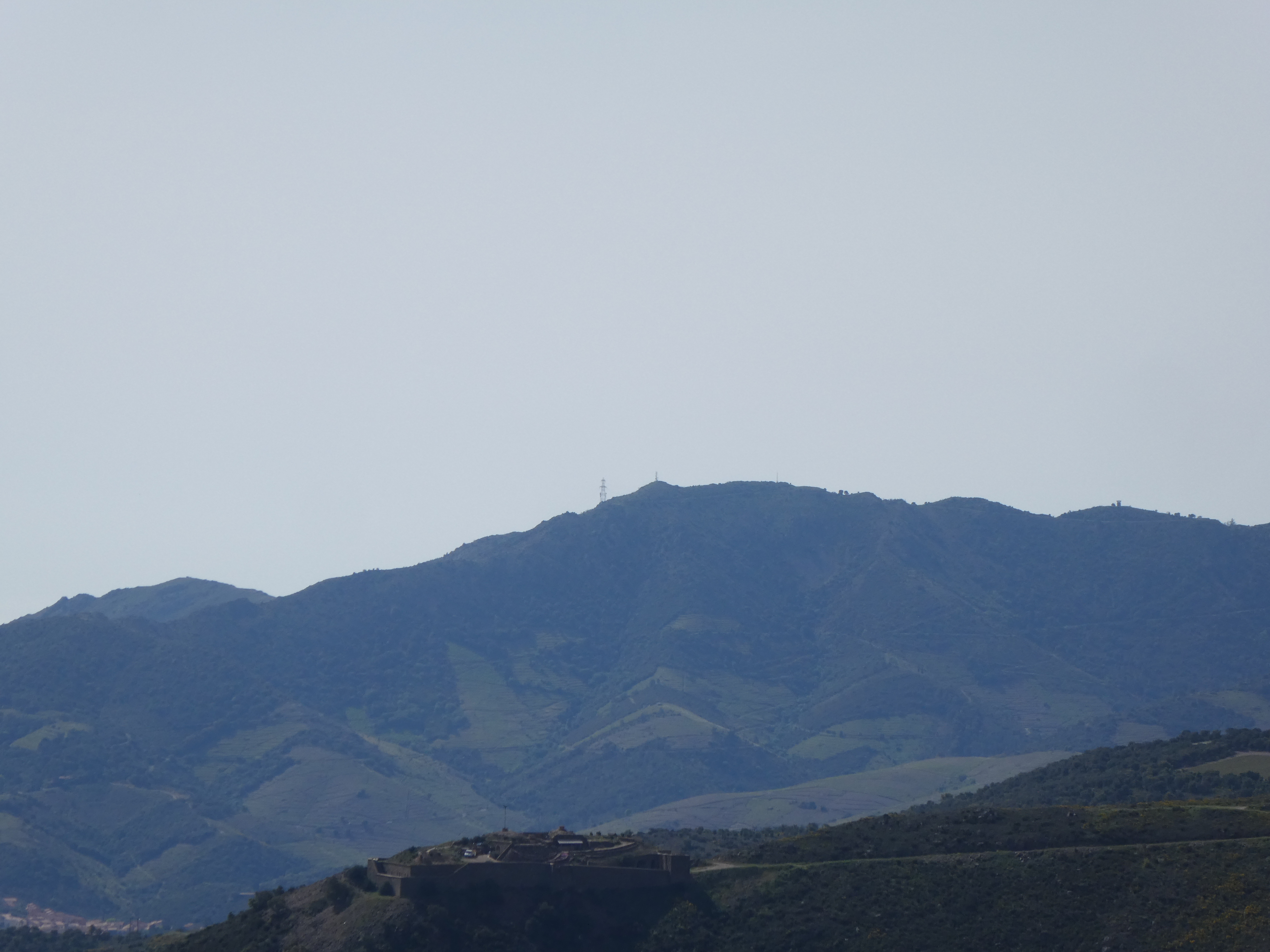Zoom sur le Pé del Poul (596 m) ... en bas, on aperçoit Canet-en-Roussillon situé à 22 kilomètres