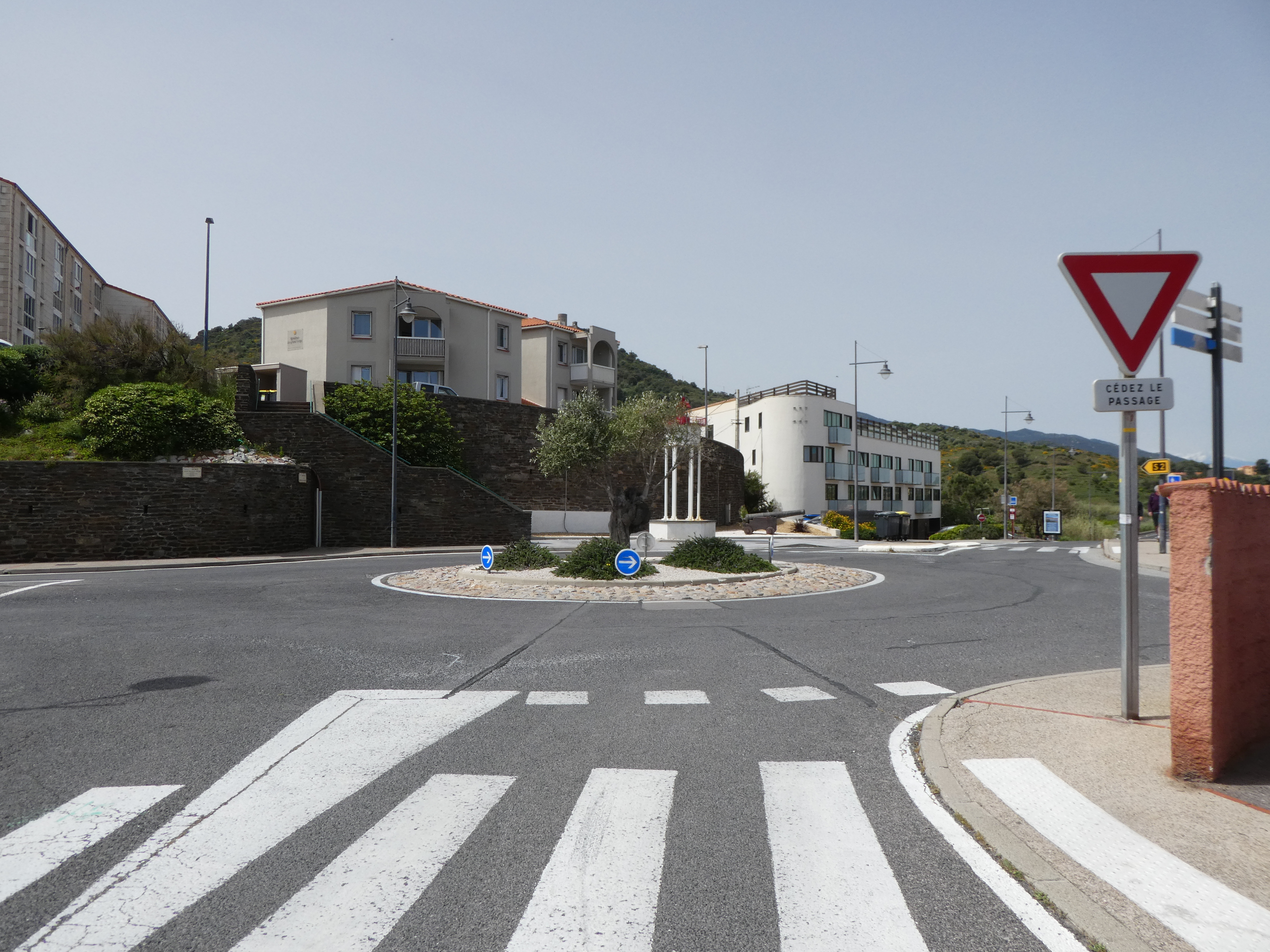 Creu Blanca (82 m) : suivre la rue descendant sur la droite direction Port-Vendres, aucun balisage dorénavant (direction non mentionnée sur le panneau directionnel)