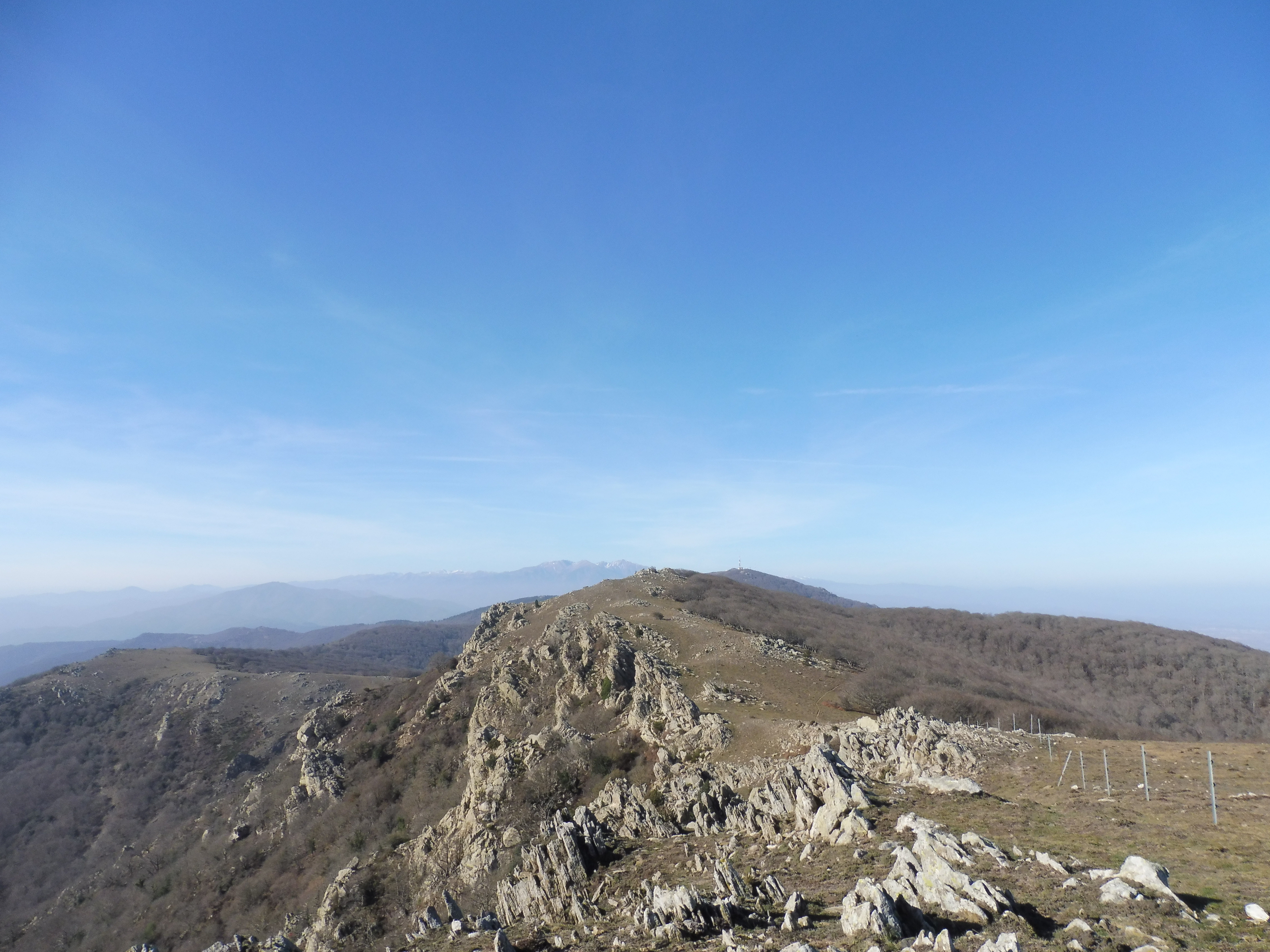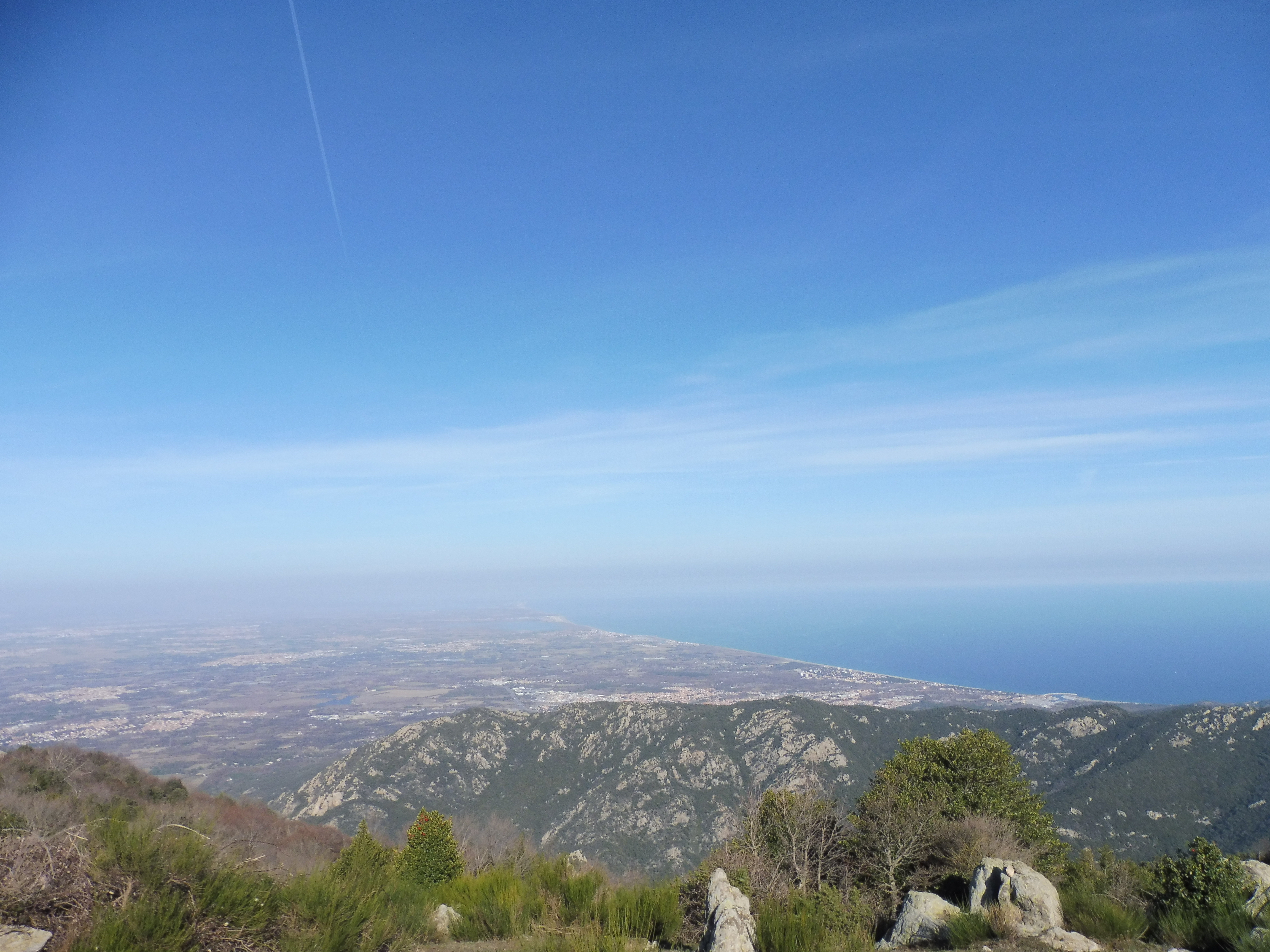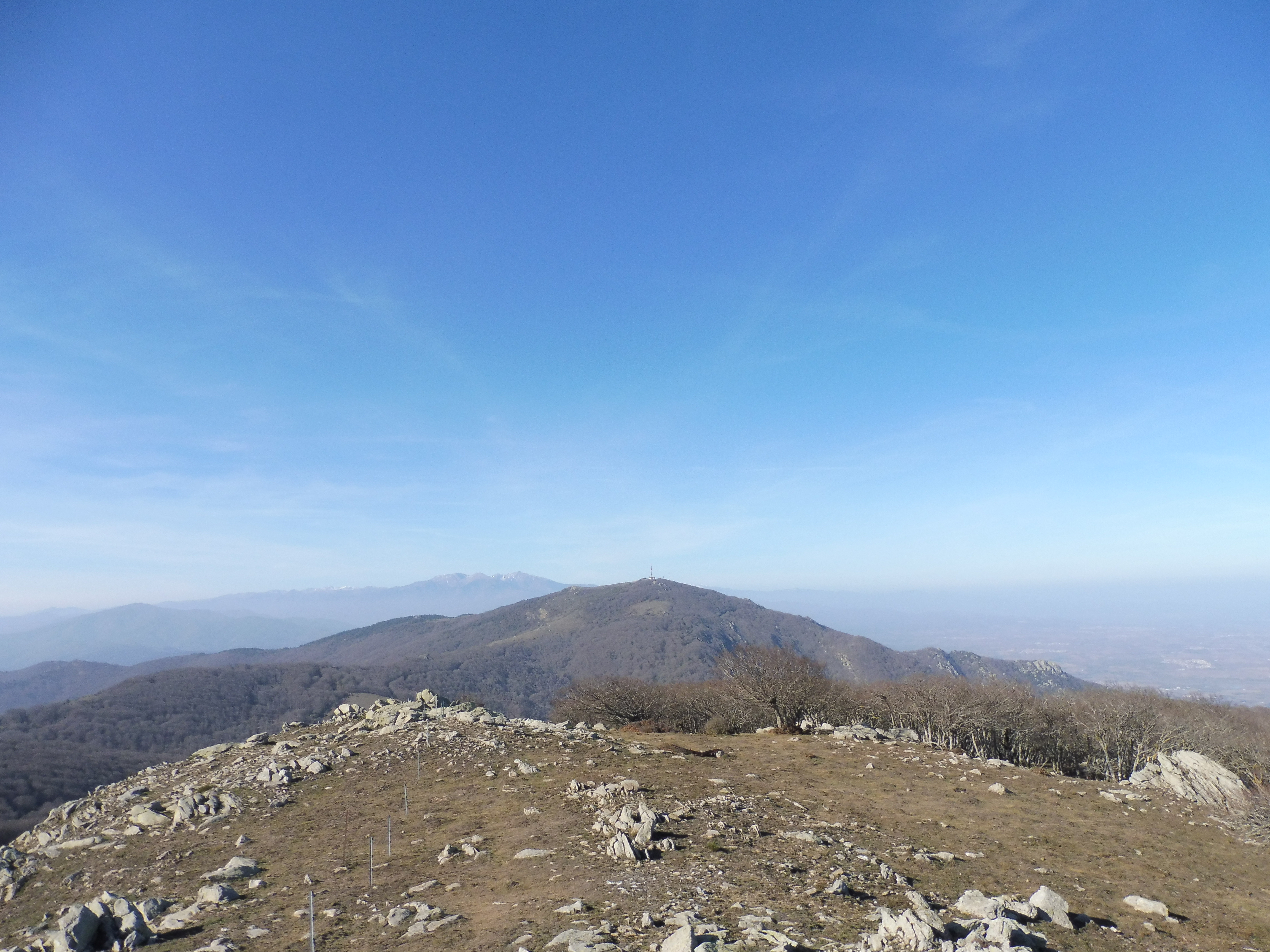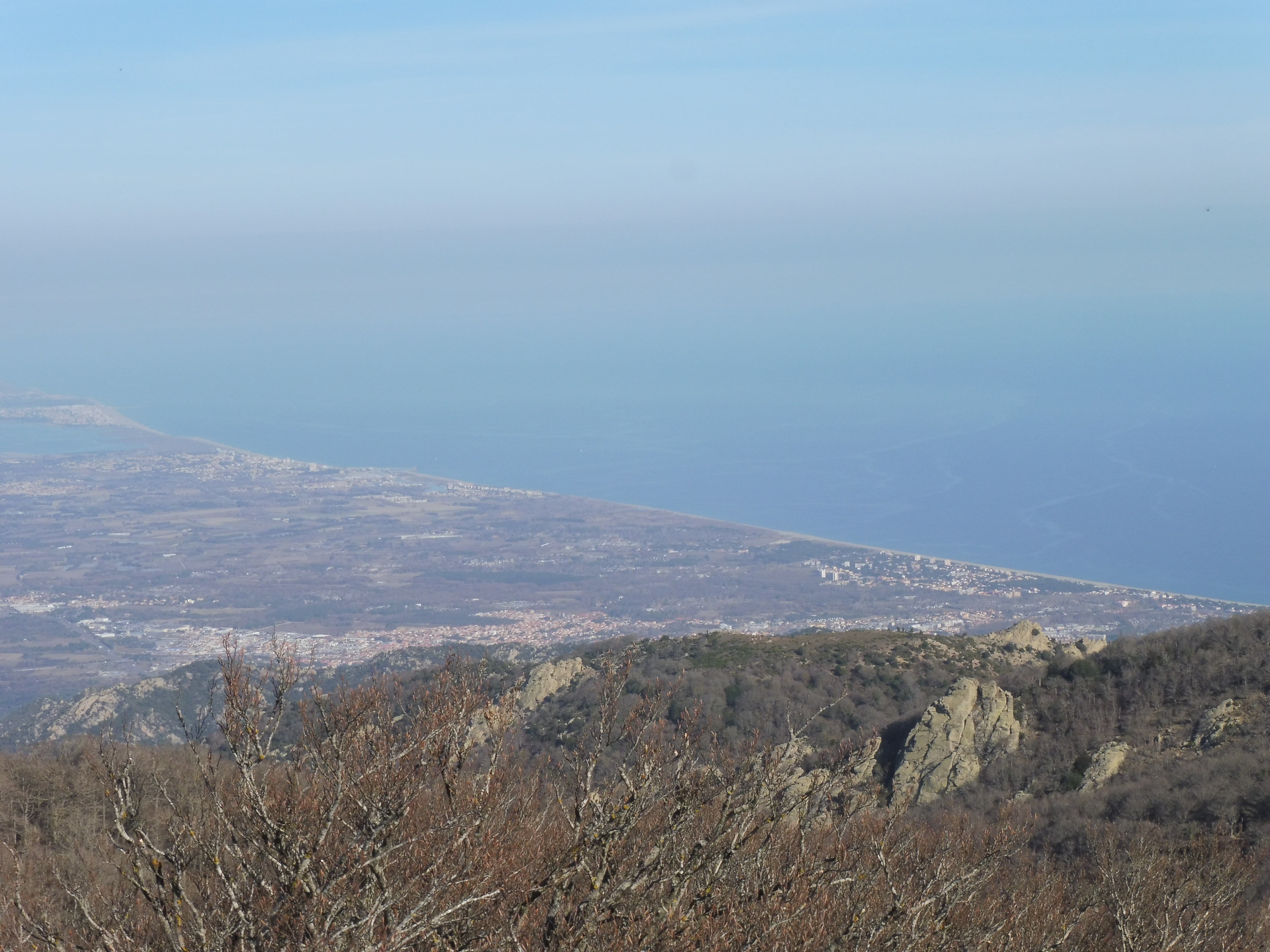 Arrivée au sommet du Puig dels Pradets (1176 m) : panorama semblable à celui du Puig de les Basses avec vue plus étendue sur la plaine du Roussillon et la Côte Vermeille