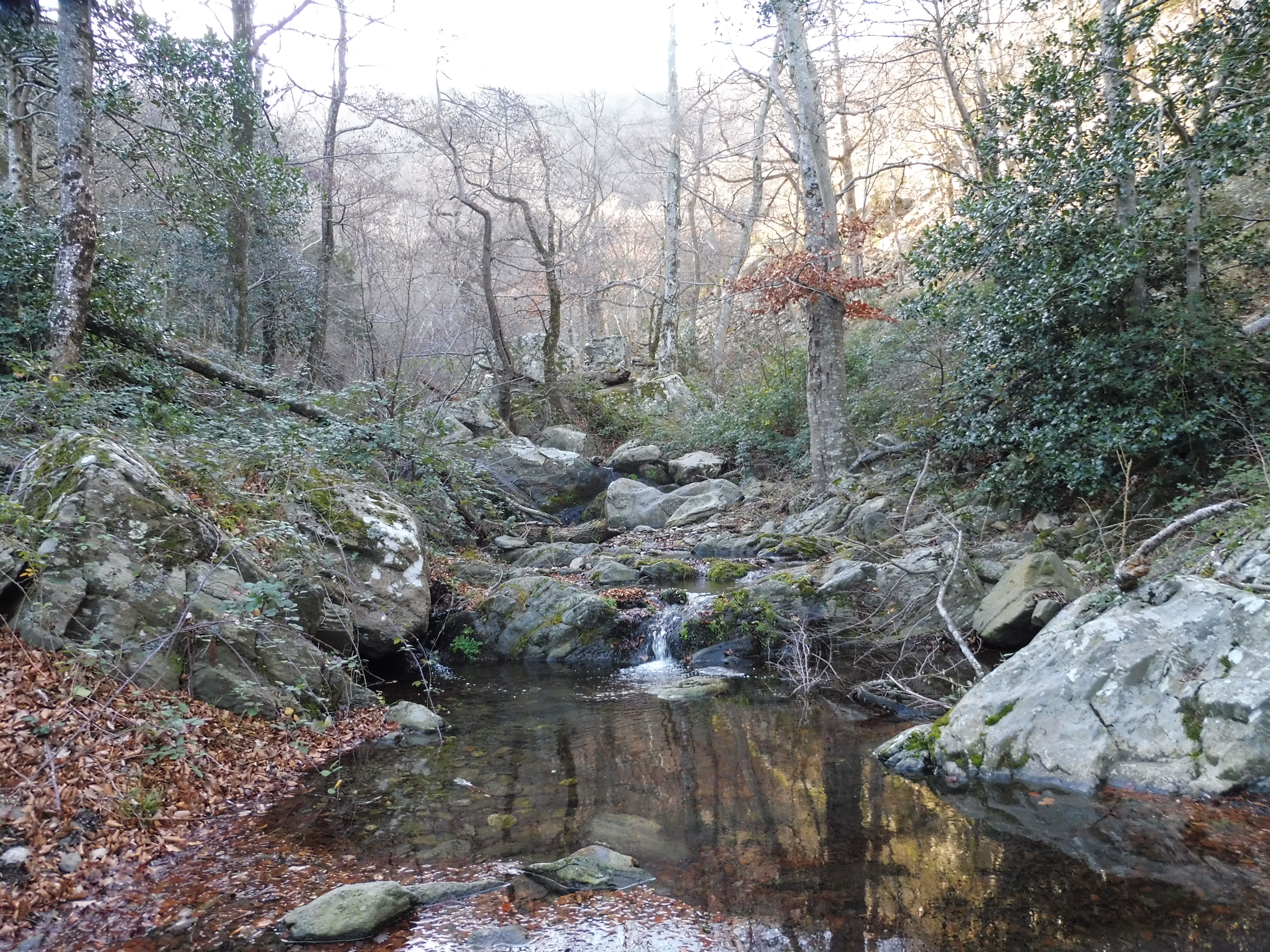 Font dels Miracles (620 m) : suivre le chemin descendant sur la droite direction la Farga (la Vallée Heureuse), balisé en jaune