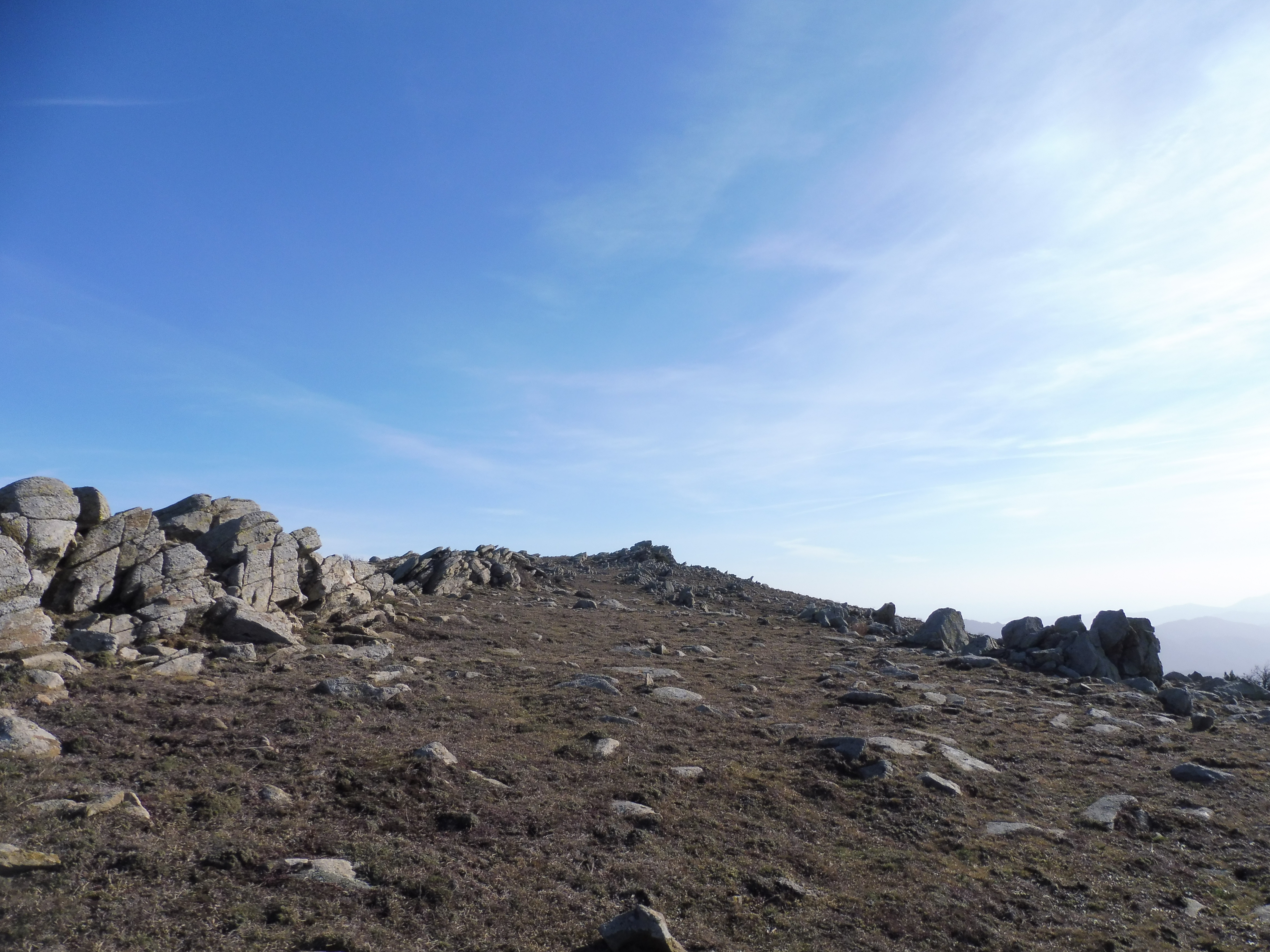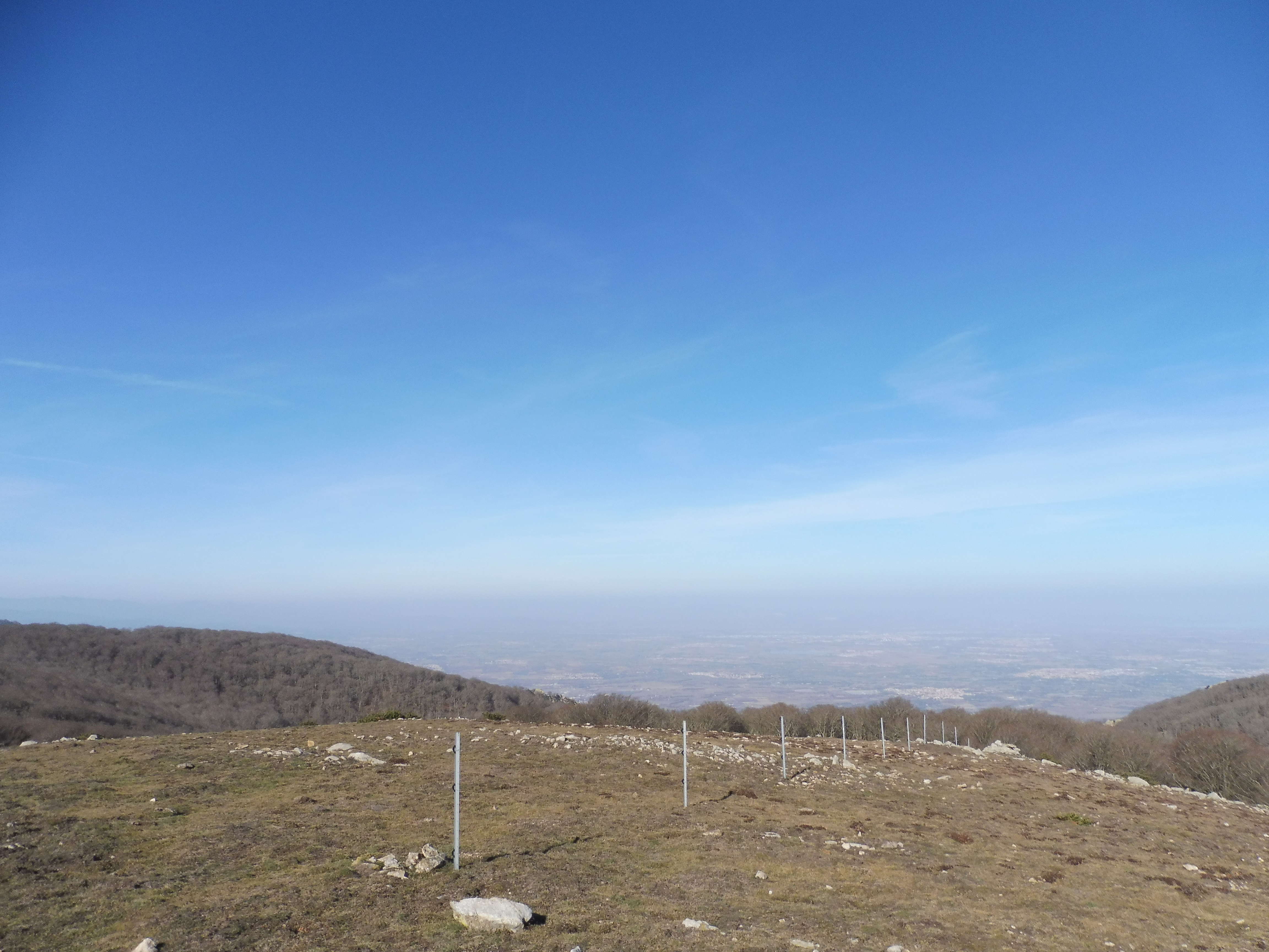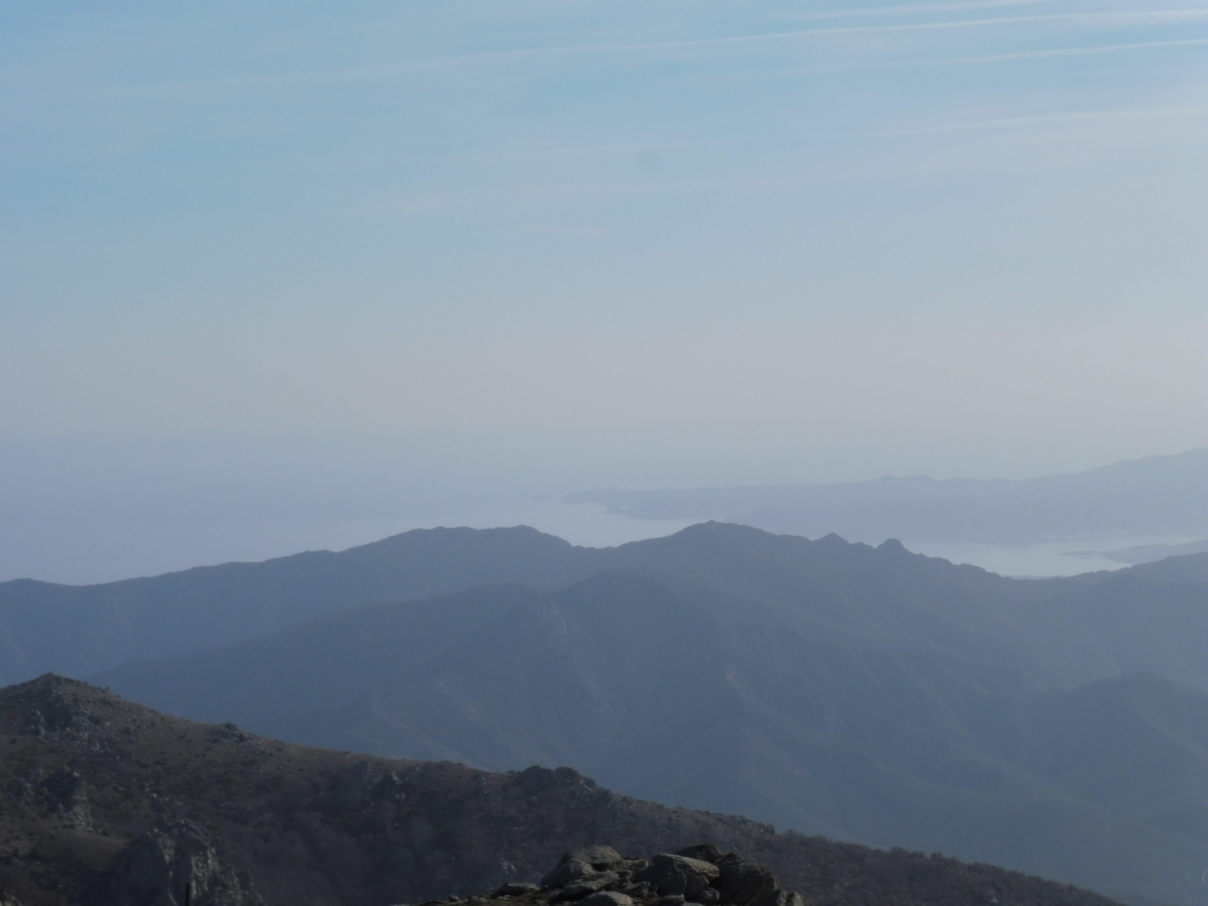 Arrivée au sommet du Puig de les Basses (1073 m) : beau panorama malgré la présence de brume sur les sommets de l'Empordà, de la Garrotxa, du Vallespir, des Albères, du Parc Natural de Cap de Creus ainsi que sur la plaine du Roussillon et de l'Empordà