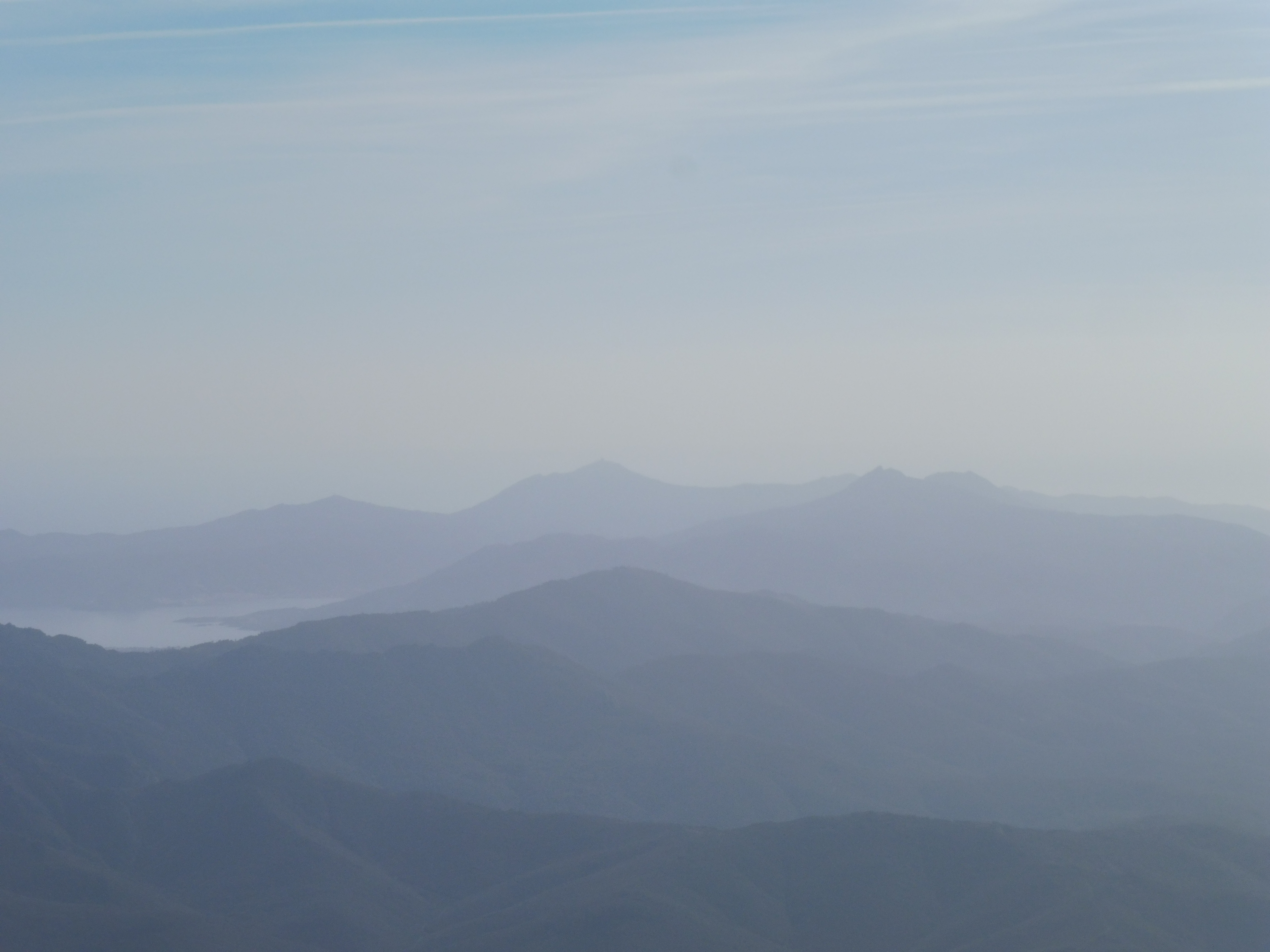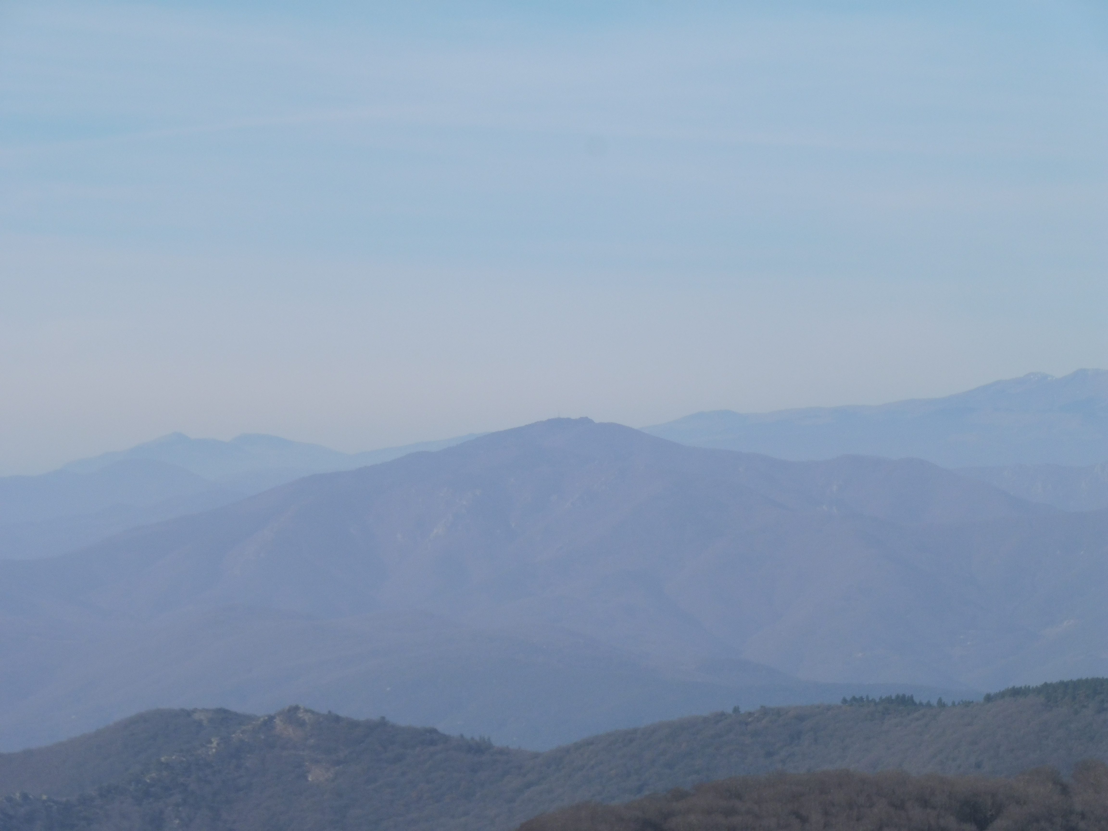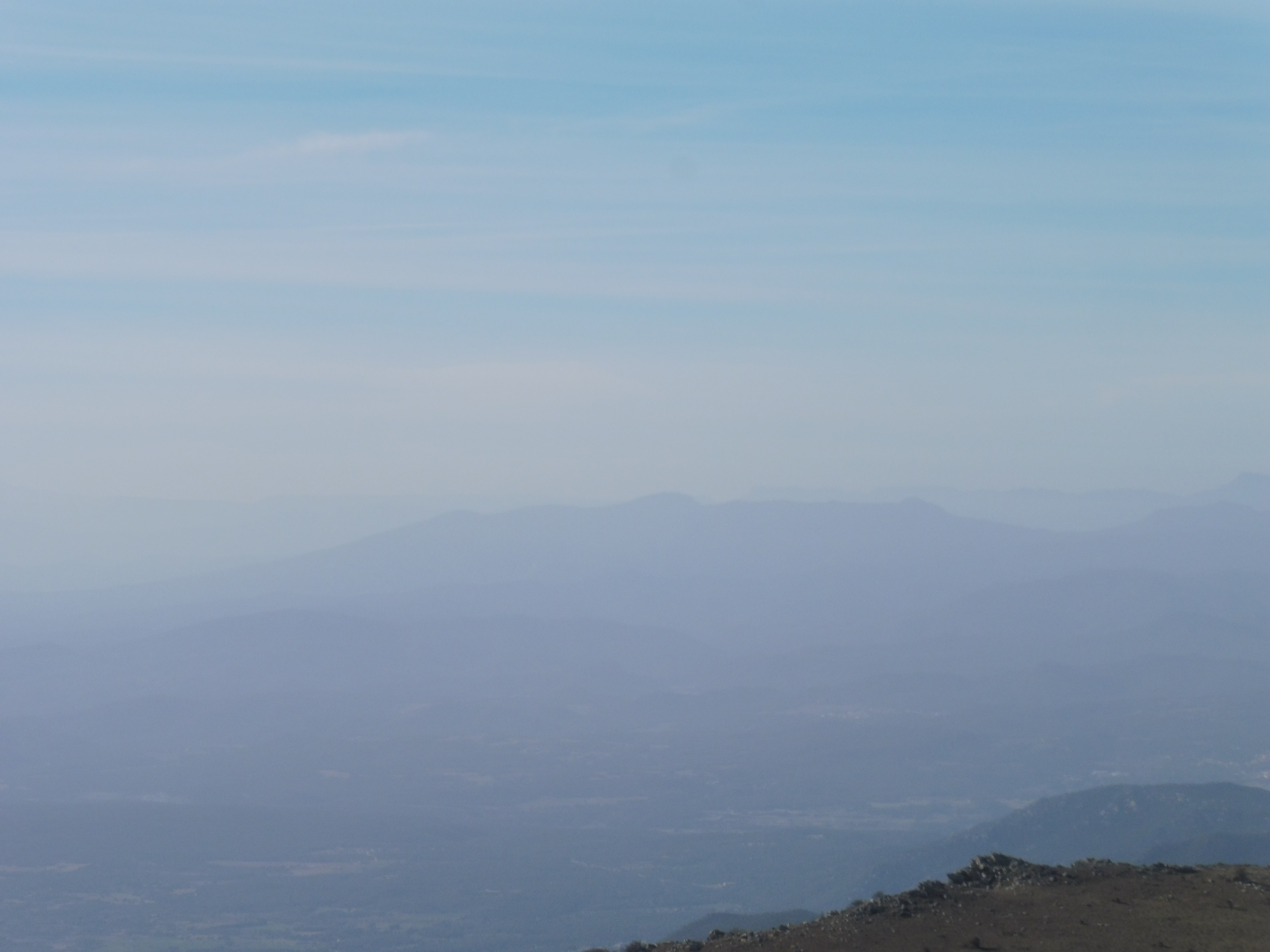 Vue brumeuse en direction des sommets de la Garrotxa et du Vallespir