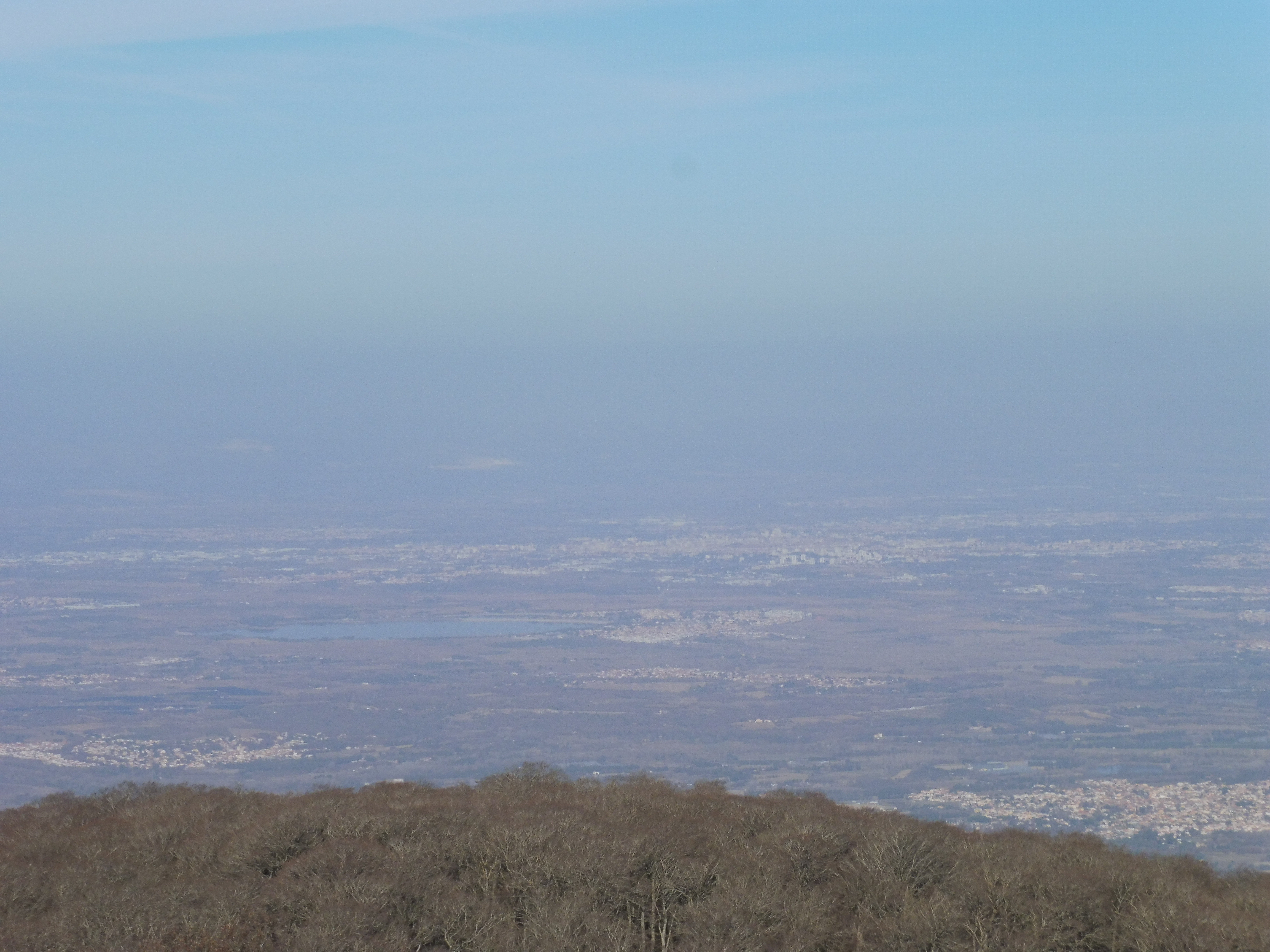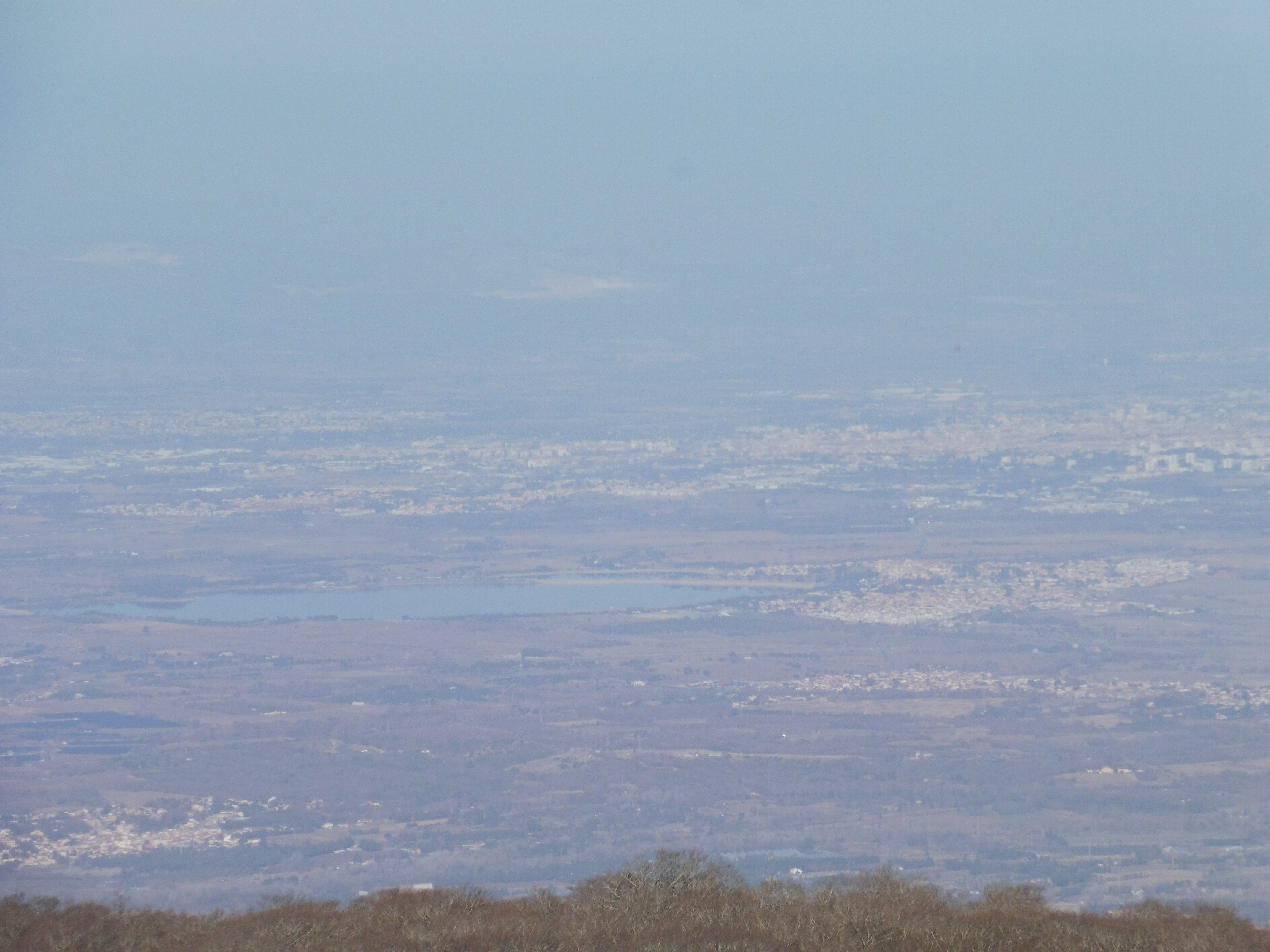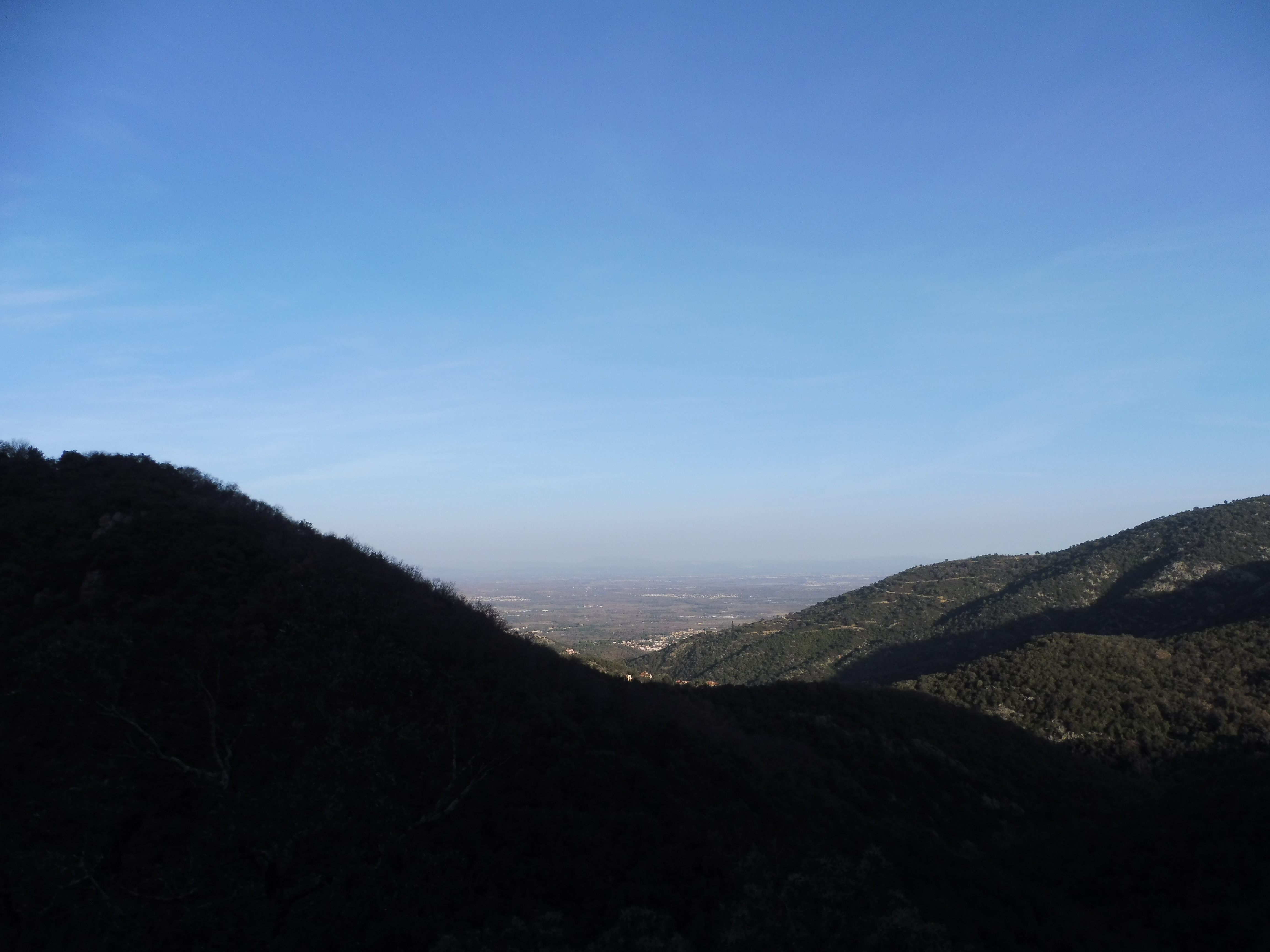 Vue brumeuse en direction des sommets du Fenouillèdes et des Corbières qui ne sont pas visibles !