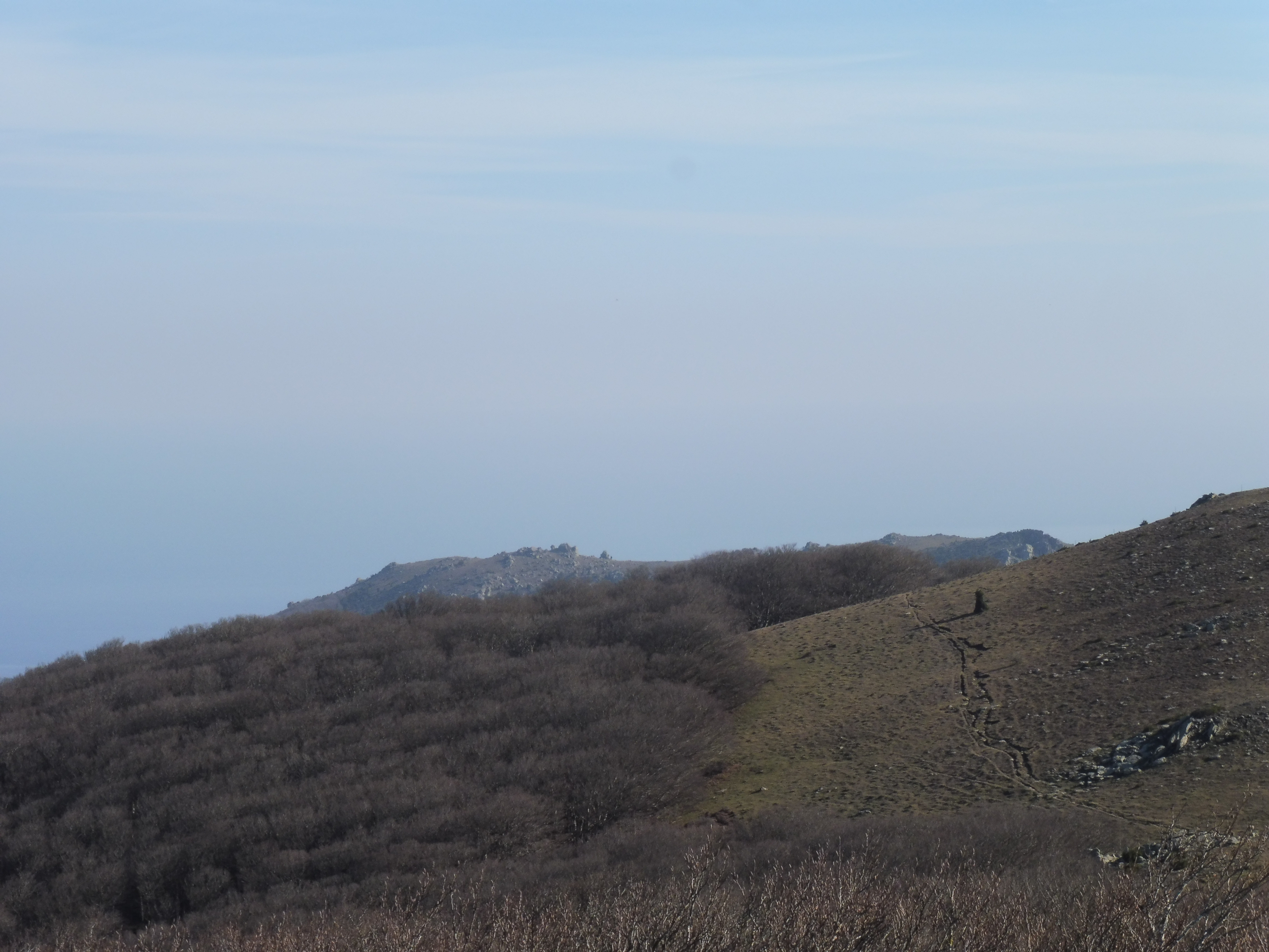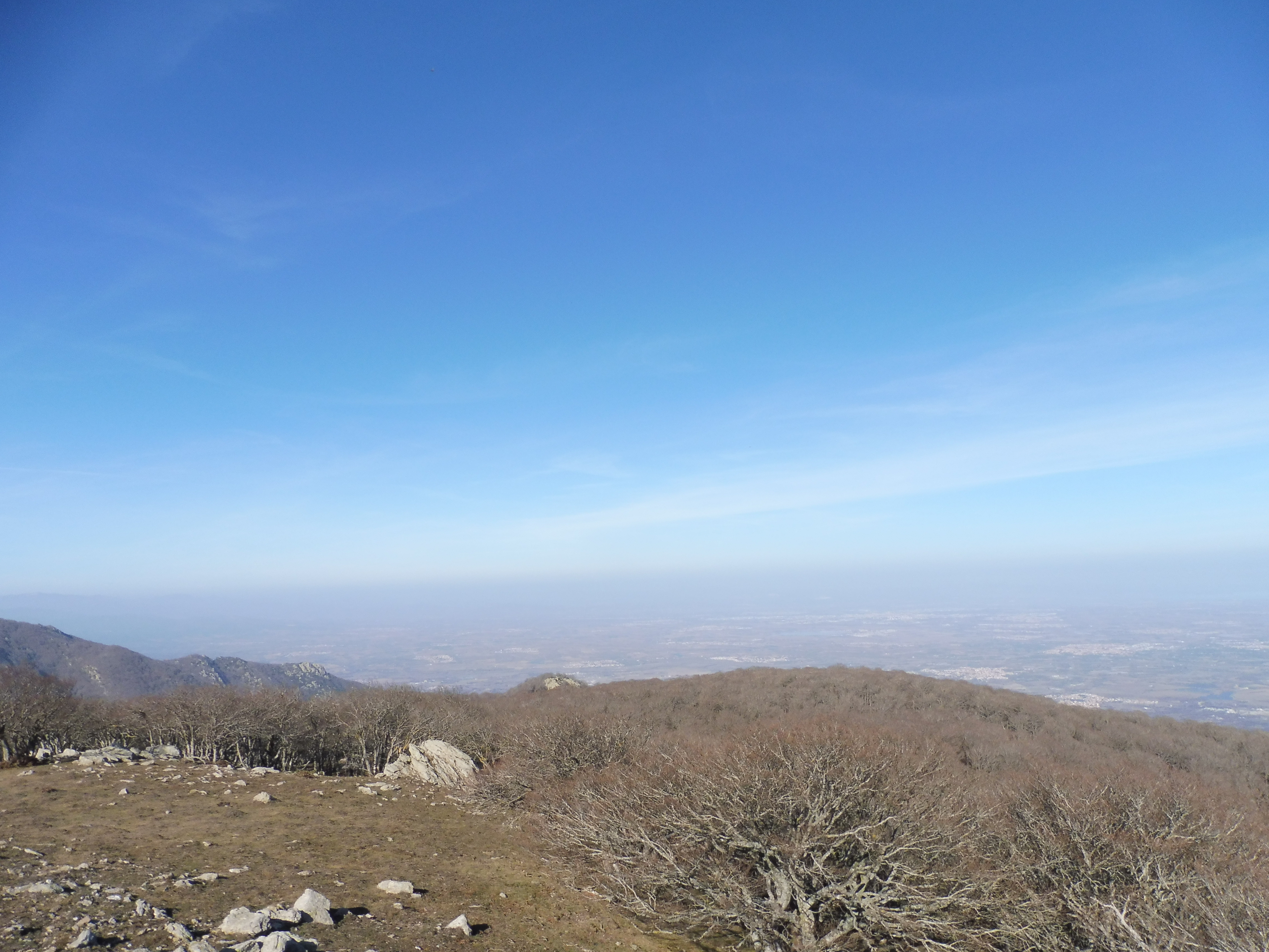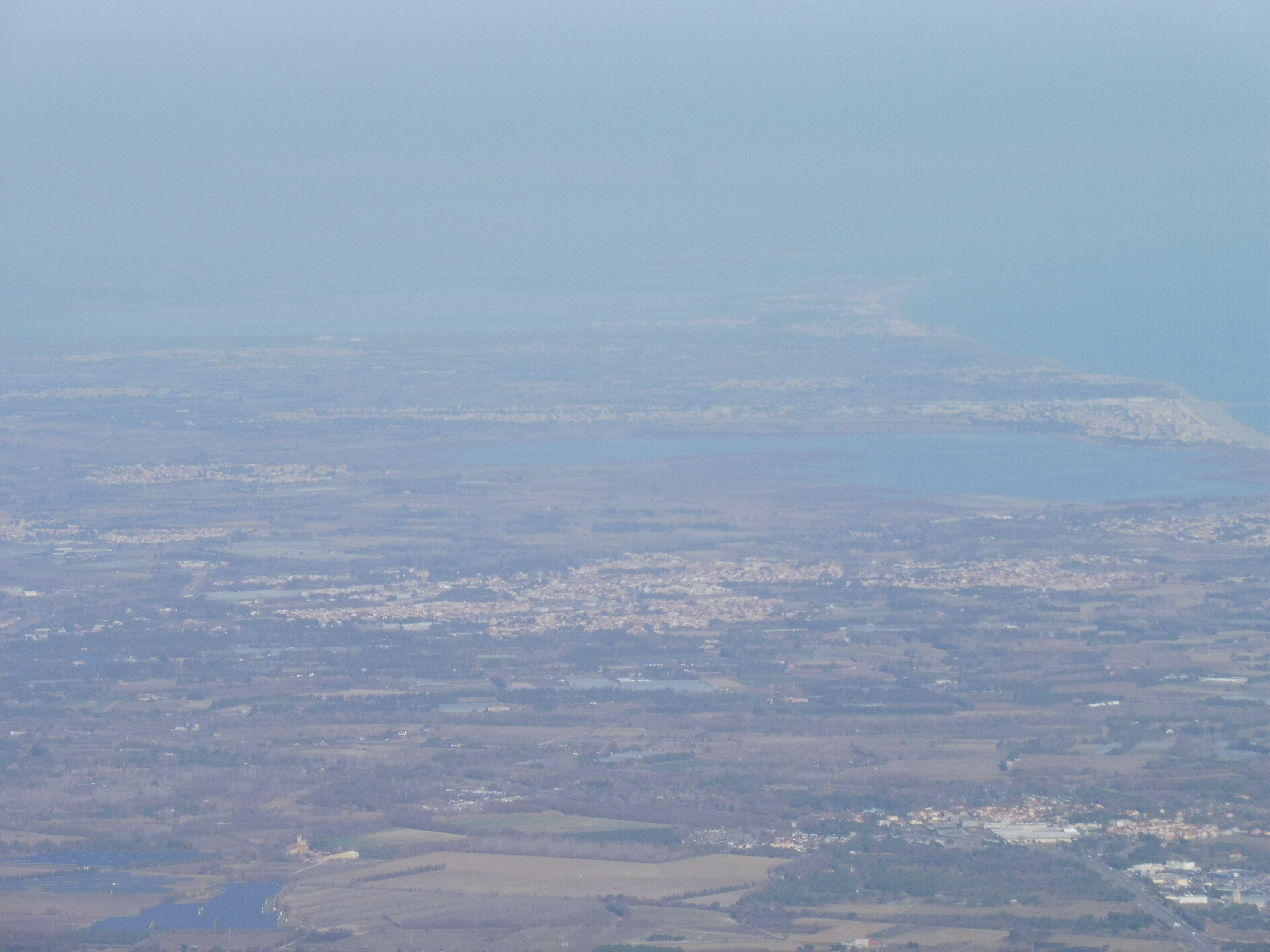 Vue brumeuse en direction des sommets du Fenouillèdes et des Corbières qui ne sont pas visibles !