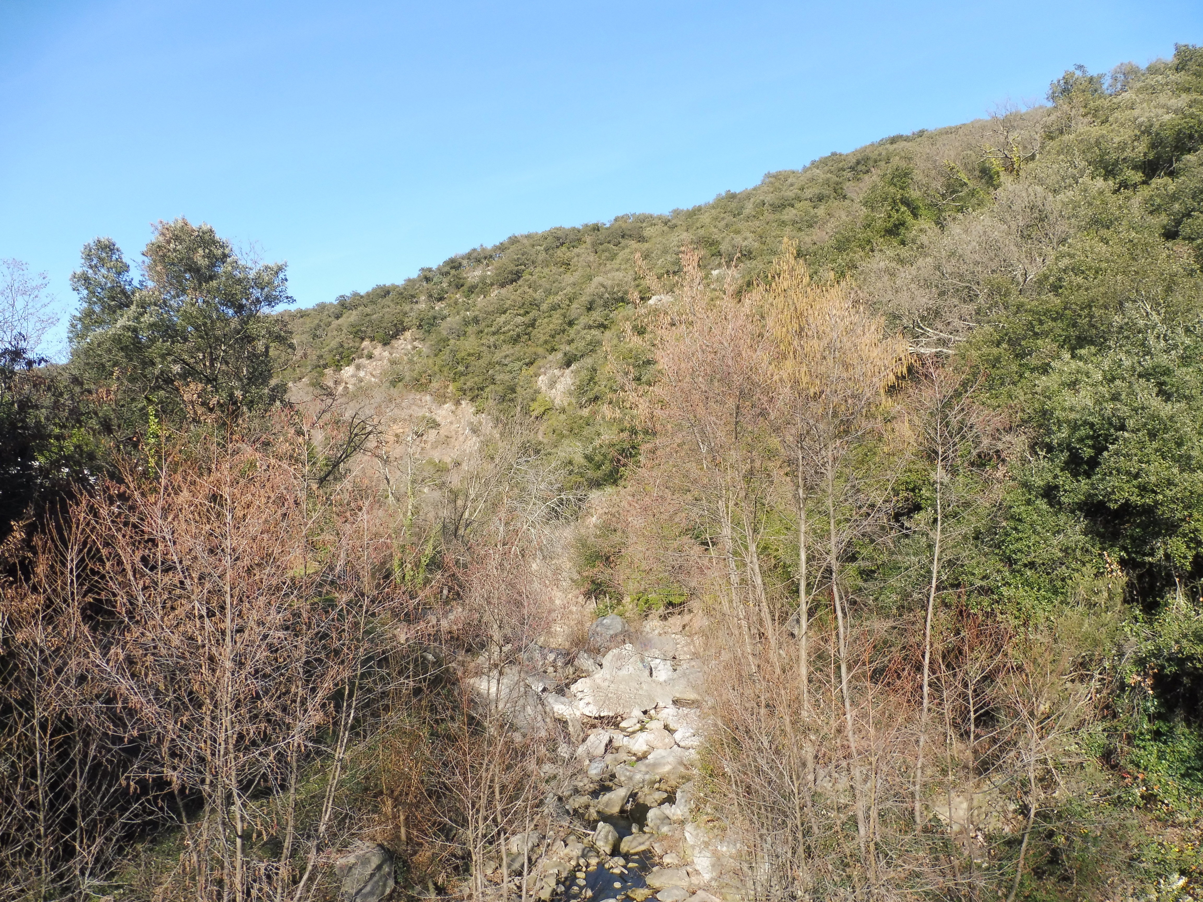 Départ la Farga (190 m) : suivre le chemin partant tout droit et traversant la Ribera de Sureda direction Collada de l'Orri, balisé en jaune