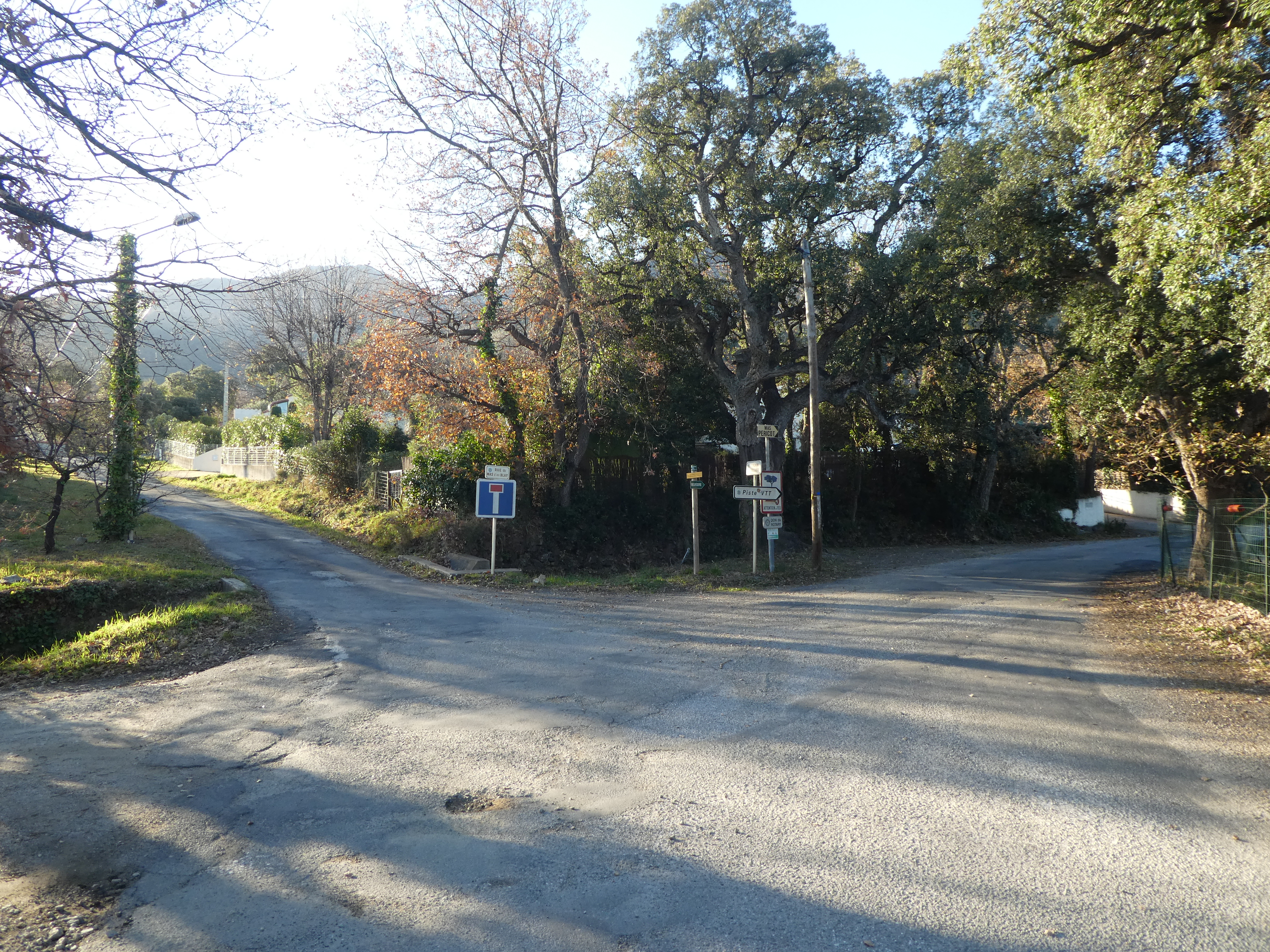 A cette intersection située à l'entrée de Montesquieu-des-Albères (200 mètres après le lieu-dit "Montesquieu-des-Albères"), suivre la rue partant légèrement sur la droite direction Montesquieu-des-Albères, balisé en jaune désuet dorénavant