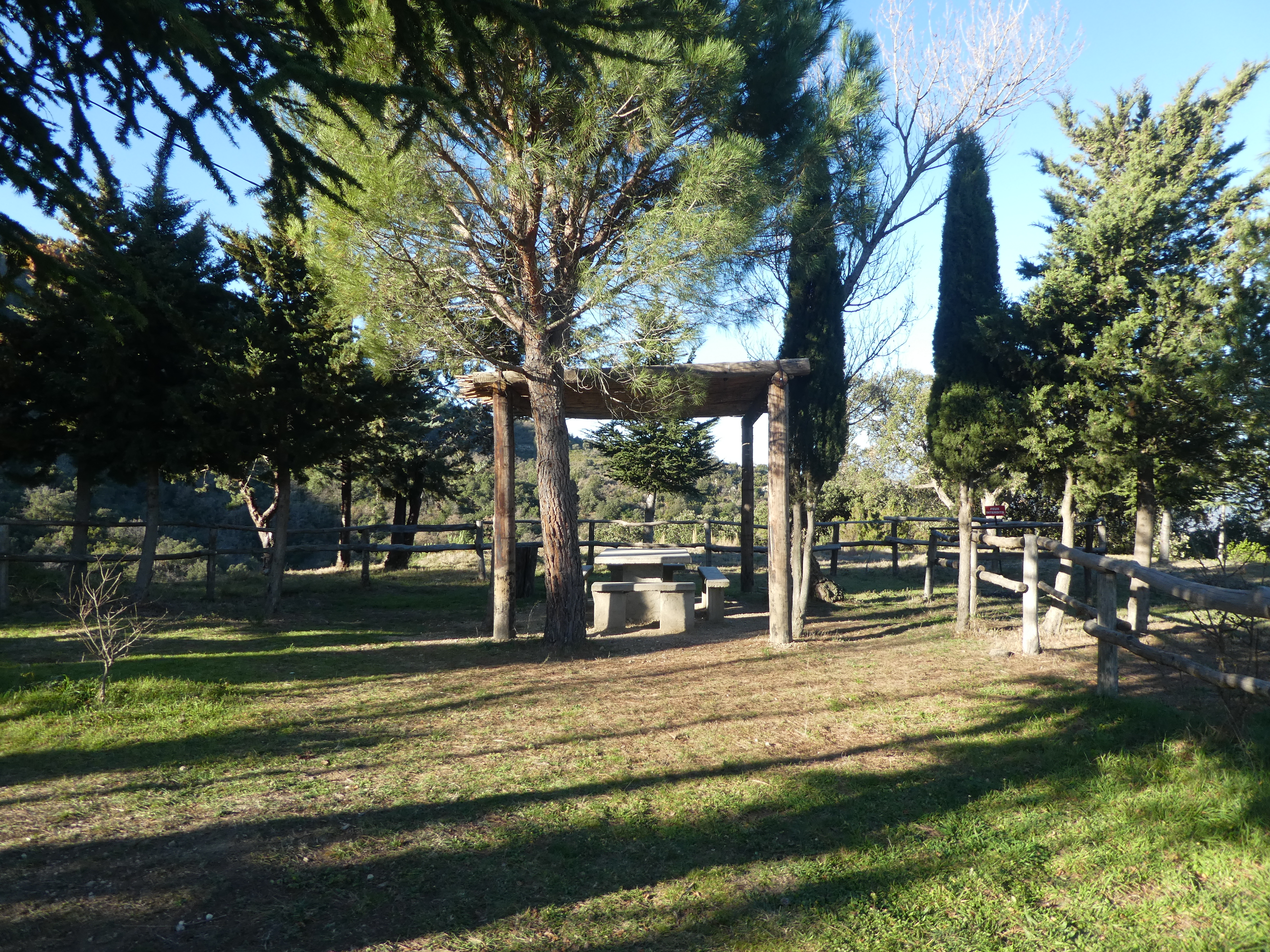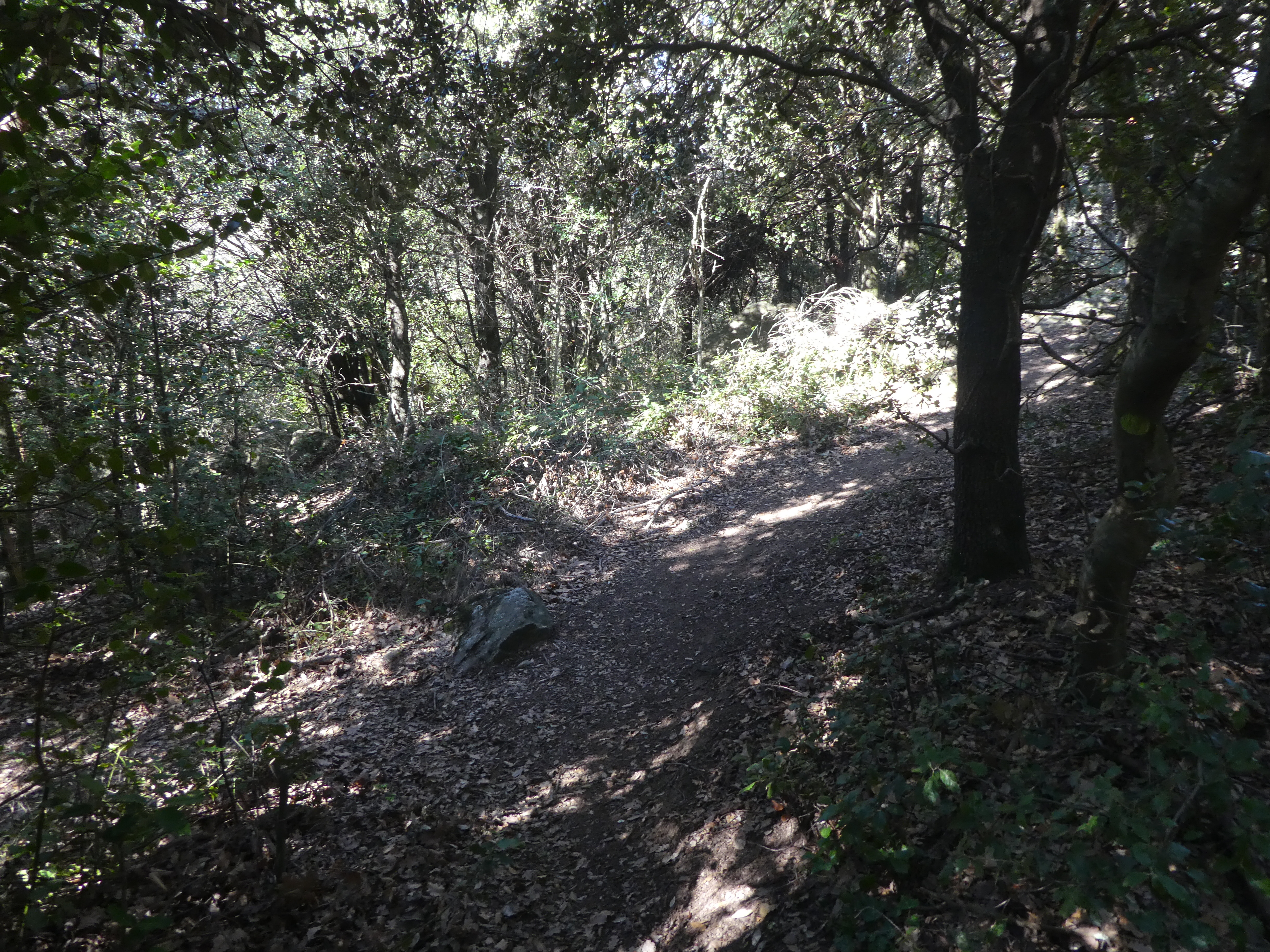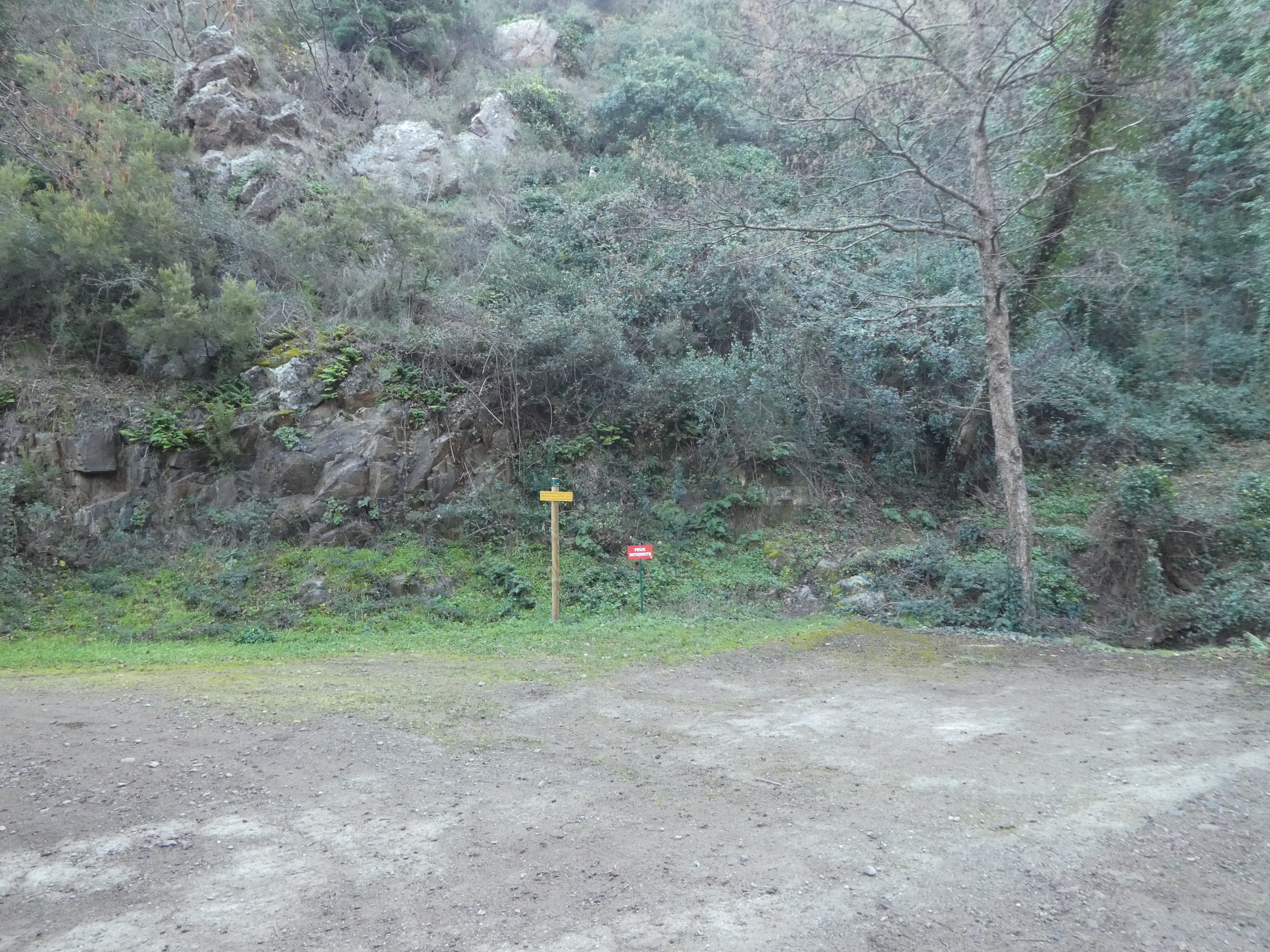Aire de pique-nique (328 m) : suivre la piste partant sur la gauche vers le Còrrec de Sant Cristau direction Coll de Llinàs, aucun balisage dorénavant